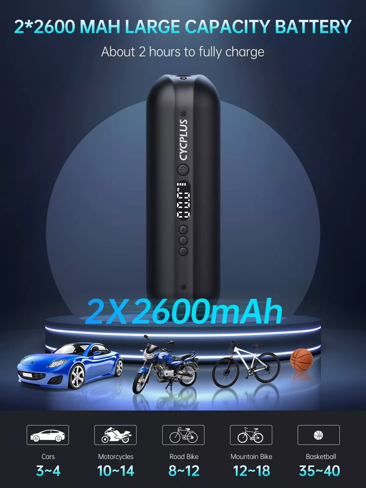 eBay eBay eBay eBay eBay Electric Air Compressor Portable Bicycle Pump Car Tire Inflator, Max ... 【Max 150 PSI/10.3 Bar】Air pump has four pressure units to choose from (PSI, BAR, KPA, and KG/CM²). With multiple attachments included---Presta, Schrader Valves and a ball needle. It is suitable for cars, motorcycles, mountain bikes and road bikes 【Lightweight】The portable air pump features a compact, cordless design that allows you to easily take it with you anywhere you go.The product comes with a storage bag for easy storage.Weighing only 380 grams, cordless tire inflator is a must-have for drivers, cyclists, and adventurers. 【Efficient】This portable air compressor for car tires is a great solution for emergencies on the way. A powerful motor that can quickly inflate a 195/65 R15 car tire from 22 PSI to 36 PSI within 3 minutes. Besides, it only takes 90s to inflate a 700*25C road bike tire from 0 to 120 PSI 【Automatic】 Rest assured with the auto shutoff design. This air pump will stop automatically once reached the preset pressure. No more over-inflating, it's simple and safe.It also has the function of measuring tire pressure, you can know exactly the current tire pressure. 【Convenient】The air pump has an LED light on the top to turn it into an emergency power source in the dark, and a USB-C input port and a USB-A output port on the top to reverse the power supply and use it as a power bank for your mobile phone. Shipping Policy FREE SHIPPING in all orders! Orders are usually processed and shipped out after 48 HOURS during BUSINESS DAYS (Monday to Friday) after payment has been received. But please be reminded that we are NOT processing and shipping orders during WEEKENDS and HOLIDAYS . Please make sure your ADDRESS is VALID for both UPS and USPS COURIER SERVICES . Please be reminded that costs incurred due to INCORRECT or UNDELIVERABLE ADDRESS should be shouldered by the buyer. The shipping services that we use are UPS , FedEx, USPS etc. Shipping can take 2 to 5 days after the item is dispatched. We ONLY ship to the 48 STATES , NO APO/FPO ADDRESSES or PO BOXES . Local pickups and combined shipping options are NOT provided at this time. Return Policy Domestic shipping EXPEDITED . We have many different shipping locations depending on the product you buy and the shipping location that you choose. We try to ship most items within 72 hours of payment Monday-Friday. Most orders are in transit for 5 DAYS but some may take longer. If you have a specific time frame please CONTACT US before you make the purchase. Return shipping is the BUYER’S RESPONSIBILITY unless the return is a result of our mistake. We will pay for shipping replacement back to you if an exchange is requested. Payment Policy We accept payment by any of the following methods: PayPal Items can be returned for exchange or full refund WITHIN 30 DAYS from the date you receive your merchandise. We are not responsible for any purchase after this 30-day period. Feedback & Contact Us Customer satisfaction is very important to us. If you have any problem with your order, please contact us and we will do our best to make you satisfied. If you have any queries, please contact us via Ebay. We usually respond within 24 hours on weekdays. Please visit our eBay store to check out other items for sale! Thank you for shopping at our store.