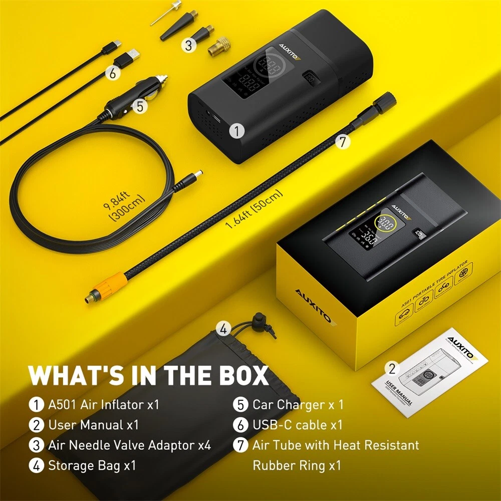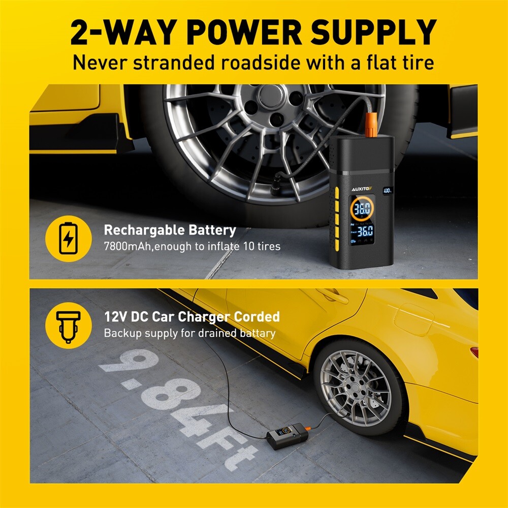 Specification: Brand:AUXITO Voltage:11.1 Volts Recommended Uses For Product:Tire Inflation Power Source:Battery Powered/DC Powered Noise Level:≤75 dB Features: *4+1 Inflation Mode The air compressor has four types of pressure units: PSI, KPA, BAR, and KG/CM ². There are four preset inflation modes: bicycle, motorcycle, car, and ball. The fifth custom mode can also set pressure values based on the inflation object to meet various inflation needs. It is an essential product for daily life and travel. *3 modes LED light Bike Motorcycle Air Pump Tire Electric Inflator Portable Car Auto Air Compressor Specification: Brand:AUXITO Voltage:11.1 Volts Recommended Uses For Product:Tire Inflation Power Source:Battery Powered/DC Powered Noise Level:≤75 dB Features: *4+1 Inflation Mode The air compressor has four types of pressure units: PSI, KPA, BAR, and KG/CM ². There are four preset inflation modes: bicycle, motorcycle, car, and ball. The fifth custom mode can also set pressure values based on the inflation object to meet various inflation needs. It is an essential product for daily life and travel. *3 modes LED light The tire inflator portable air compressor with pressure gauge comes which super bright LED light with 3 lighting modes (SOS, Normal and Strobe), ensuring you can easily inflate and change tires at night or deal with emergencies even in low light conditions.Perfect for inflating cars, motorcycles,bicycles,balls so on.And it also has a warning light function that can send a warning signal to alert other vehicles and pedestrians in case of vehicle breakdown or emergency. *Advanced Screen Display The portable air pump built in high-performance chip, it can quickly inflate tires and provide high-speed airflow. Inflate small car tires in less than 1 minute. The large-sized LED display screen displays real-time pressure values and preset values, making it easy to monitor tire pressure status. The automatic shutdown design can also prevent excessive inflation, making it safe to use. * Persistent Power Tire Inflator This tire inflator comes with a built-in 20000mA rechargeable battery for power supply, eliminating the need to connect to an external power source during use. The inflation speed is three times faster than other ordinary cordless inflators on the market, with a 35% increase in power. It can inflate 12 car tires or 30 Racing bicycle tires, away from the problem of low power. *Preset values for different modes and adjustable pressure ranges Car閿?/p> 36PSI(26-50PSI) 2.5Bar(1.8-3.5Bar) 250Kpa (180-350Kpa) 2.5Kg/cm2(1.8-3.5Kg/cm2) Bicycle閿?/p> 45PSI(30-120PSI) 3.1Bar(2.1-8.3Bar) 310Kpa (210-835Kpa) 3.1Kg/cm2(2.1-8.3Kg/cm2) Motorcycle閿?/p> 32PSI(26-45PSI) 2.2Bar(1.8-3.1Bar) 220Kpa (180-315Kpa) 2.2Kg/cm2(1.8-3.1Kg/cm2) Ball閿?/p> 9PSI(4-16PSI) 0.6Bar(0.3-1.1Bar) 60Kpa (30-110Kpa) 2.5Kg/0.6cm2(0.2-1.1Kg/cm2) User-defined閿?/p> 30PSI(3-150PSI) 2.1Bar(0.2-10.3Bar) 210Kpa (10-995Kpa) 2.1Kg/cm2(0.2-10.3Kg/cm2) Packaging include: portable tire inflator*1 Item Specifics Brand : AUXITO Type : Portable Tire Inflator Voltage : 12 V Portability : Portable Power Source : Battery Tire Inflator Car Air Pump Max Pressure : 150PSI Display : LCD Suitable for : Car, Bicycle, Motorcycle, Ball Battery Capacity : 7500mAh Color : Black Manufacturer Warranty : 2 Years Noise Level : 閳?5 dB Payment (1) Instant PayPal payment is the preferred method of payment. (2) We also accept payment via PayPal, DebitCard, Visa, MasterCard, Discover. (3) We will only ship to the confirmed PayPal shipping address given with the payment. (4) If you want to ship to other address, please change your PayPal shipping address before you make payment. (5) To avoid initiating an unpaid item claim, please pay within 7 days. Shipping (1) We will ship your item(s) within 24 hours. (2) We ship this item to US usually via USPS first class mail. It usually takes 3-6 working days to deliver. Returns (1) We offer free return & money back guarantee. If you are not satisfied with your purchase for any reasons, you can return the item for refund or replacement/exchange. All returns must include the original packaging. (Please refer to our return policy for details.) (2) If you don't return goods within 60 days from date of purchase, your right to cancel will be revoked. Any items damaged because of incorrect installation will not be refunded. Please contact us for return or troubleshooting help prior to returning any products. (3) Unauthorized reselling of AUXITO products is strictly prohibited and we can't honor the warranty if purchasing from the unauthorized reseller. Contact Us [Our office hours are MONDAY - Saturday 9:00PM - 6:00PM PST, but we will response you once we get your message .There will be some delay on respons if you send message or E-Mail on Sundy.] (1).Negative feedback will not help resolve any problems you have, please contact us via eBay messages before leaving negative feedback, our customer service will make best effort to help you with the issues. (2).We maintain high standards of excellenceand strive for 100% customer satisfaction! Feedback is very important to us. We request that you contact us immediately BEFORE you give us neutral or negative feedback, so that we can satisfactorily address your concerns. FAQ Why swith to LED? LEDs not only give your vehicle a clean, modern look but, with proper use, will outlast any halogen bulb and HID bulb! Low energy draw, high lumen output, and instant on/off LED technology out shines stock bulbs in every way. Which bulbs are used in my vehicle? Check Sylvania automotive lamp replacemnt guide, you can select the year, make, and model of your vehicle, then select the application you want to replace or upgrade from stock. What does CAN Bus mean? CAN Bus means Controller Area Network Bus. This system monitors your vehicle and reports operating conditions. CAN Bus systems are commonly found in European vehicles such as BMW, Audi, Mercedes, Volkswagen, Porsche, and i