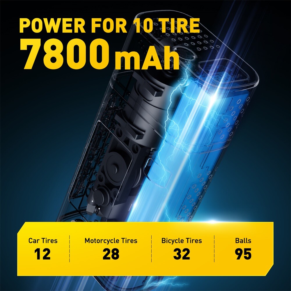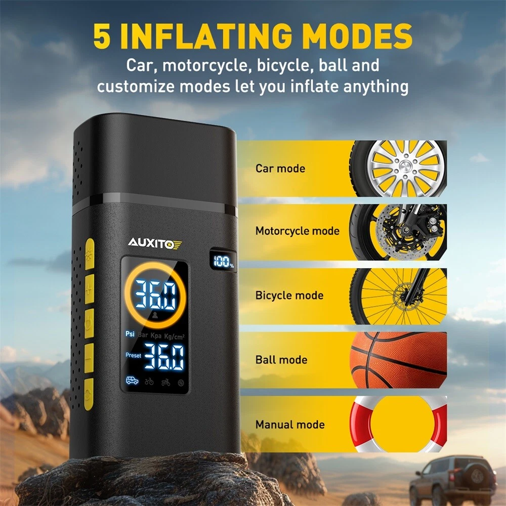 This portable air compressor is a game-changer! Super fast and easy to use with multiple preset modes for bikes, cars, and more. Love the custom mode for precise pressure settings. The LED light is super handy for nighttime emergencies, and the battery life is solid. Compact, powerful, and way quieter than expected—perfect for road trips or quick tire fixes at home. A must-have for any vehicle owner!