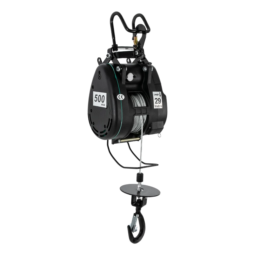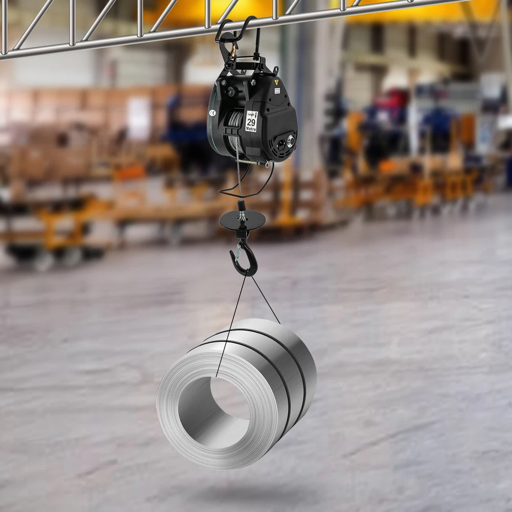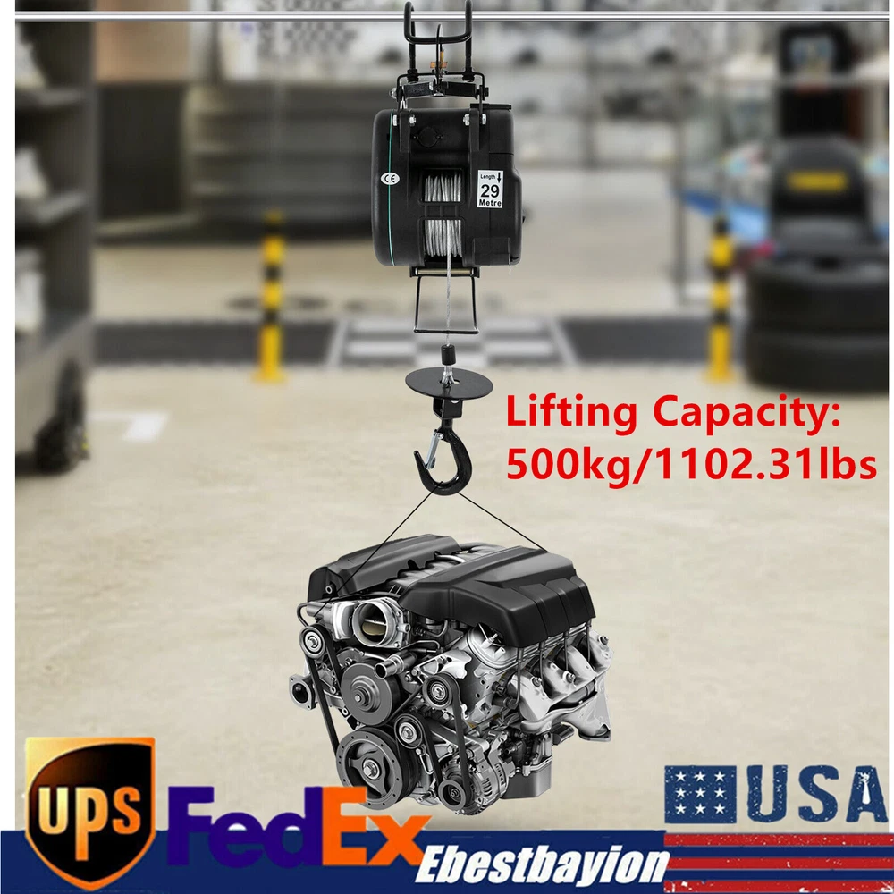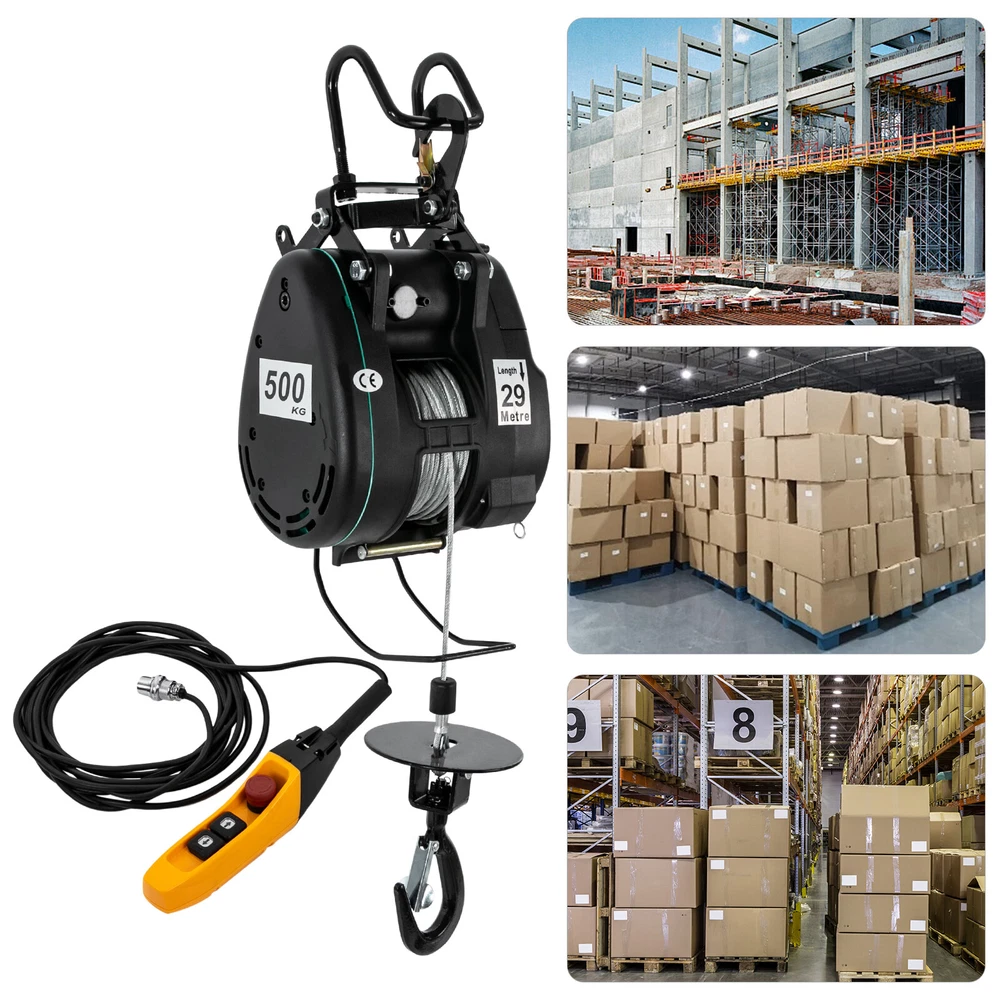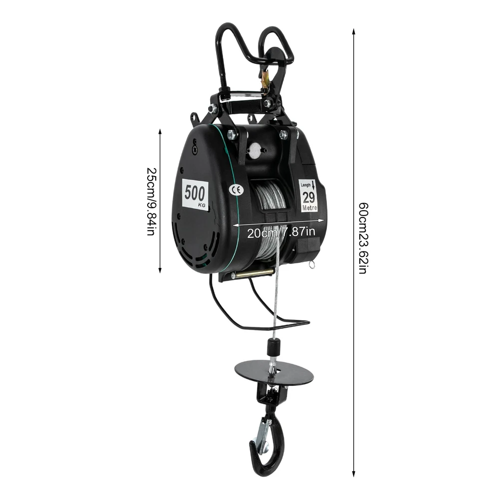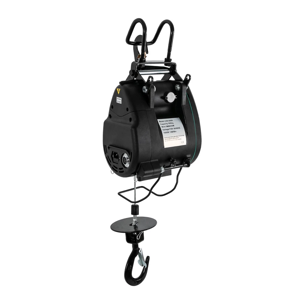 Portable Electric Hoist Winch 500 kg/1102 lbs with 29 m/95.14ft Lifting Height Description There may be a need to lift heavy objects in your daily life and work, but you simply cannot do this by hand. This electric hoist we recommend for you is the right lifting equipment. With its good performance and convenient operation, it is an indispensable working assistant in industrial sites and home renovation. It not only simplifies the heavy lifting process but also makes lifting heavy objects a breeze efficiently and safely. Key Features Robust and Durable : The aluminum alloy housing, copper motor, and steel hook with high strength and good rigidity can resist wear, corrosion, shock, and deformation. Powerful Lifting: With an 1800W powerful copper motor, it can lift 1102.31 lbs weight of heavy objects with a fast speed(42.65ft/min) to a height of 95.14ft while saving labor costs. Safety Guaranteed: The highly insulated motor (class E), IP54 protection grade, and over-voltage and over-current protection enhance the safety of the product. It also comes with a limited switch that can automatically cut off the power to protect your safety when the machine is hoisted to a certain position. Excellent Heat Dissipation: The powerful cooling fan, aluminum alloy housing, copper motor, and multiple heat dissipation holes can quickly dissipate heat and reduce the risk of burning out the machine, ensuring stable operation. Convenient Control : The wired control with 2 buttons makes it simple and easy for you to control its lifting and lowering within 22.97 feet. The red emergency stop button on it helps avoid accidents. It is electrically powered to launch it and control its movement, greatly saving your effort. Simple Installation: We provide fully equipped accessories and a detailed user manual, so you can easily install this item. Easy to Maintain: The maintenance cost of an electric hoist is relatively low, you simply need to regularly clean and maintain it. Good Customer Service: We stand behind all our guests and look forward to assisting you with your purchase. It is our pleasure to answer your confusion and questions. The end of the story between us is not "we sell and you buy". Details Hook&Long Steel Wire : The steel hook and 98.43ft wire are strong and durable while having a long lifting stroke (95.14ft), which can lift most items of varying heights and ensure the goods do not fall off or rotate. Long Power Cord: The 9.84ft thickened power cord provides you with more usage positions and keeps you away from the power source, protecting your safety. Application It is suitable for agriculture, factories, docks, mines, warehouses, logistics, construction sites, goods lifting, automobile manufacturing plants, railroads, stage construction, buildings, garages, ceilings, attics, barns, lofts, etc. It is used for lifting regular or irregularly shaped objects and can be used for various lifting equipment such as single columns, pilasters, and cranes. Specifications Model: LES-S500 Color: Black Style: Modern Material: Steel, Copper, Aluminum Alloy, Steel Wire Process: Die casting Assembly Required: Yes Motor Type: Pure Copper Power Source: Corded Electric Plug Type: US Standard Voltage: 110V 50/60HZ Power: 1800W Control Type: Wired Control Control Wire Length: 7m/22.97ft Lifting Capacity: 500kg/1102.31lbs Lifting Speed: 13m/42.65ft/min Steel Wire Length: 30m/98.43ft Lifting Height: 29m/95.14ft Protection Grade: IP54 Insulation Class: E Working Noise: 75dB (No-load), 85dB (Load) Power Cord Length: 3m/9.84ft Gross Weight: 20.5kg/45.19lbs Net Weight: 20kg/40.09lbs Package Size: 52*32*26cm/20.47*12.6*10.24in Package Included 1* Electric Hoist 1* Power Cord 1* Wired Control 1* Hook 2* Carbon Brushes 1* English Manual Notes This product is not allowed to be used for lifting people. It is recommended to use the machine in a vertical direction, please do not pull it diagonally or in the wrong position, which may cause uneven winding of the cable. If you find that the cable rope is not evenly wound, please don't worry, you can rewind and arrange the steel rope after placing it. Please ensure that all persons in the immediate area are informed and warned of the need for safety before lifting and moving heavy objects. If necessary, set up a lifting area to remind unoccupied and uninvolved persons that they are not allowed in. Please do not leave lifted heavy objects unsupervised for long periods as this may cause injury. Please note that noise is inevitable during product operation. If the specified object is too large or the object cannot be hung directly on the hook, you will need to tie a longer webbing around the object and then hook the webbing with the hook to lift the object. Please allow the slight color difference caused by the shooting light and 1-3cm error due to manual measurement, and make sure you do not mind before you order. Payment Delivery details Terms of sales About us Contact us Payment We accept ebay payment 。 Fees such as import duties, taxes are not included in the item price or shipping costs. These charges are the buyer's responsibility. Delivery details Shipping: 2-9 working days to: USA Terms of sales We maintain high standards of excellence and strive for hundred percent customer satisfaction. Feedback is very important to us. We hope that you contact us immediately before you give neutral or negative feedback, so that we can address your concerns. It is impossible to address issues if we do not know about them! About us Your satis faction is our ultimate goal. We work hard to earn your trust and future business. Our certified technicians have tested each item before shipping. The unit comes with 1 year limited warranty on all manufacturing defects. a) If you receive a defective item, you may return it or ask for a discount. Please contact us within 14 days after you receive the package. b) What you returned must be intact and in its original packaging as re? u. Customer is responsi