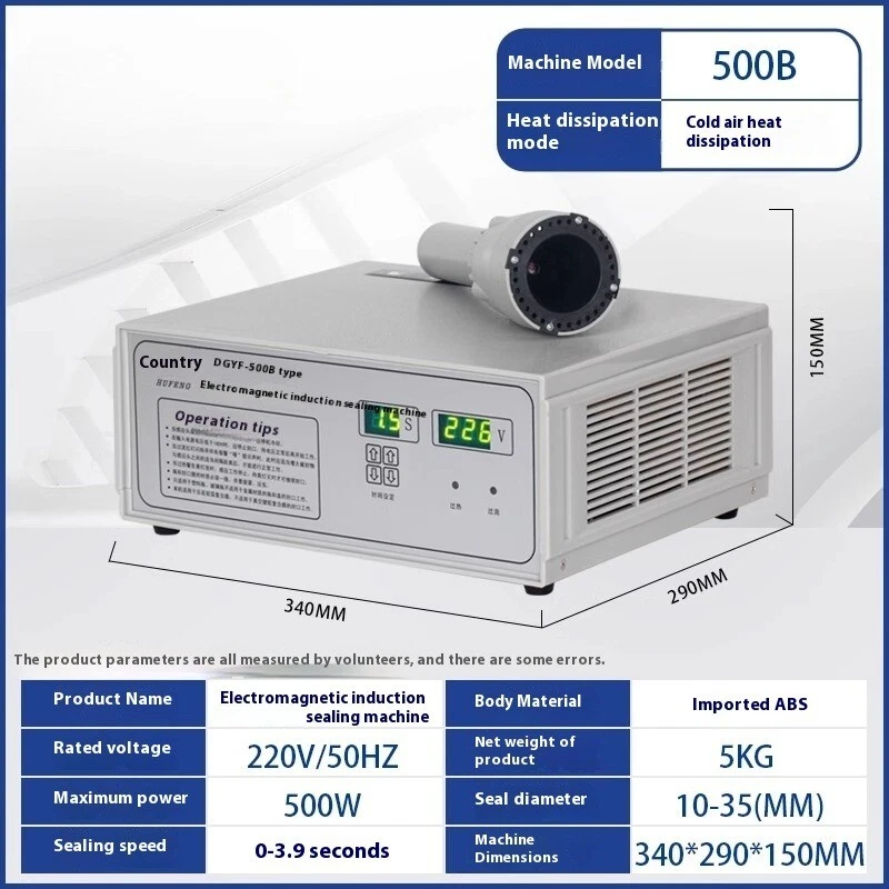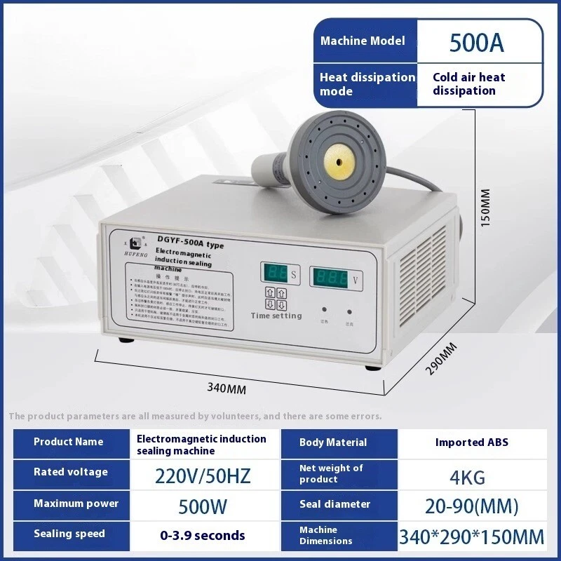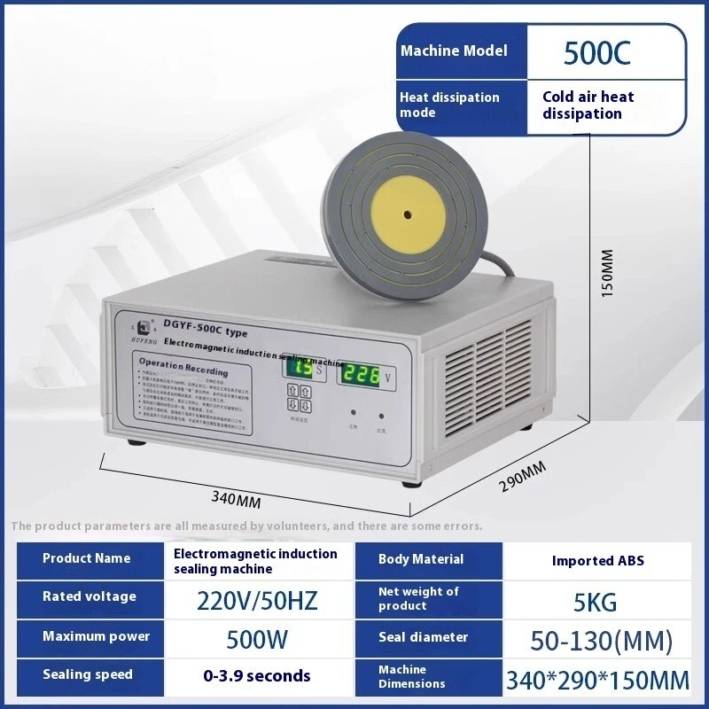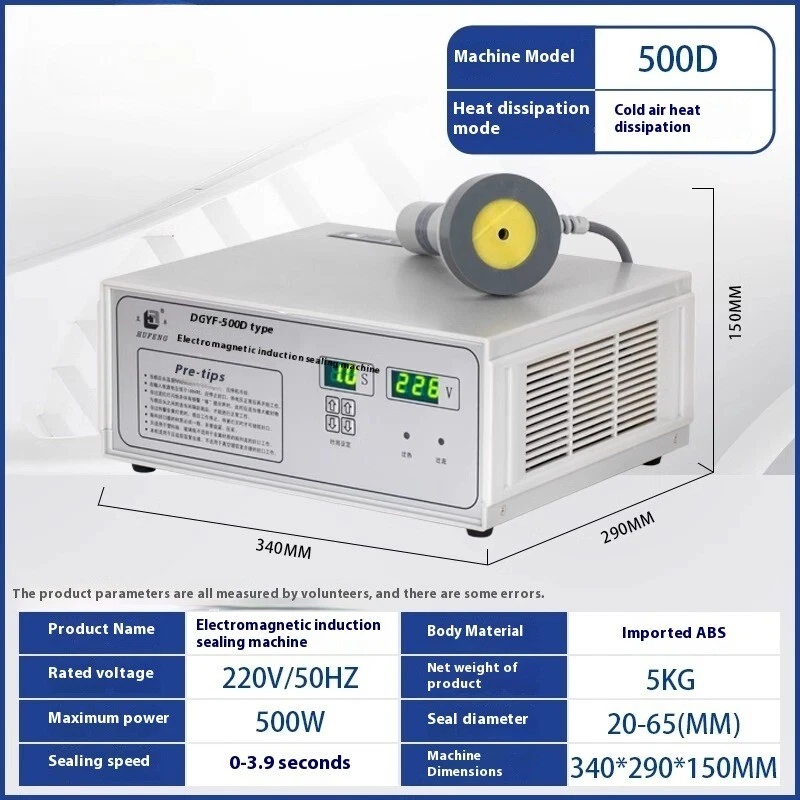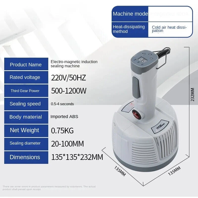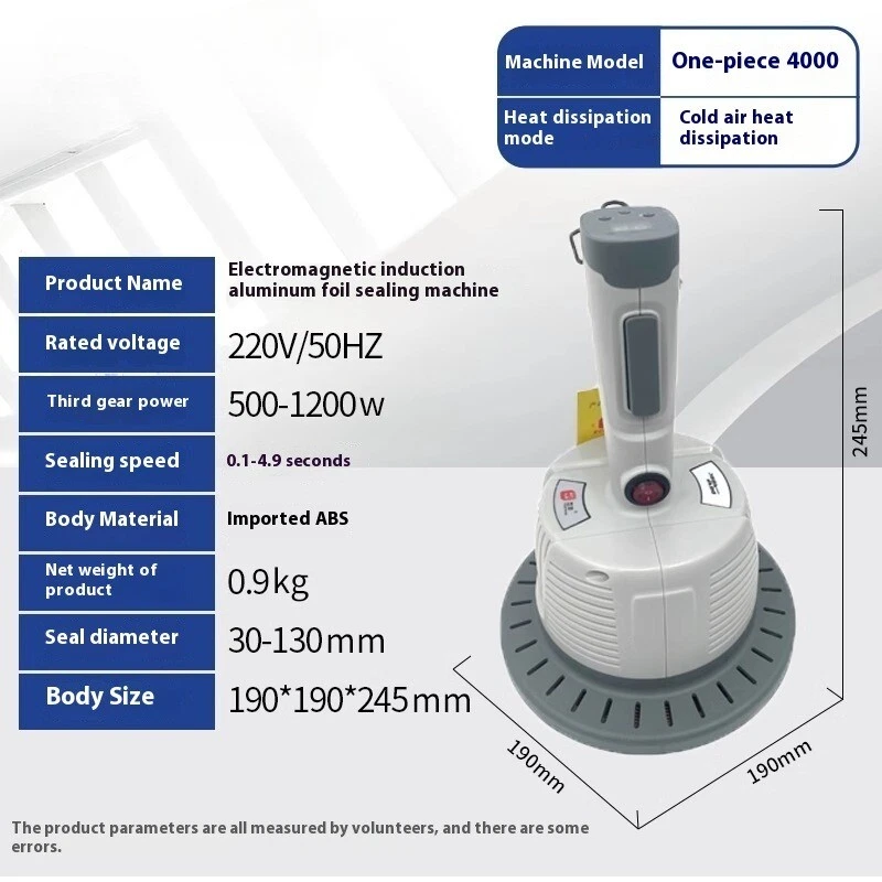 DGYF-400A Hand-held Capping Electromechanical Magnetic Induction Sealing Machine Plastic Capping Aluminum Foil Sealing Machine Model: DGYF-400A Power supply: AC220V Sealing diameter: medium 20-medium 100mm Sealing speed: 0.5-4S Form: integrated handheld Control mode: digital control circuit Case material: imported ABS Bare metal size: 135 * 135 * 232mm Bare metal weight: 0.75KG