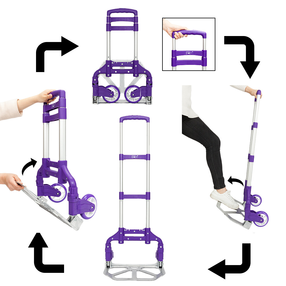 Product Description Introducing our Portable Foldable Telescopic Trolley Cart, the perfect companion for effortless transportation of groceries, luggage, or daily essentials. Designed with convenience and portability in mind, this versatile trolley cart features a lightweight yet sturdy frame that can be easily folded and unfolded, making it an ideal choice for home use, travel, or outdoor activities. The telescopic handle allows for adjustable height settings to suit different user preferences, while the smooth-rolling wheels ensure easy maneuverability on various surfaces. Whether you're heading to the supermarket, airport, or park, this compact and durable trolley cart is designed to simplify your life. Key Features 1. Lightweight & Durable Construction:•Constructed from high-quality aluminum alloy or reinforced plastic, this trolley cart combines durability with a lightweight design. It can support loads up to [maximum weight capacity] without compromising on strength, ensuring-lasting performance. 2. Easy Fold & Compact Storage:•The innovative folding mechanism allows the cart to be quickly collapsed into a compact size for convenient storage and transport. When not in use, it takes up minimal space, fitting easily under a bed, in a closet, or even in a car trunk. 3. Adjustable Telescopic Handle:•Equipped with an extendable handle that can be adjusted to multiple height settings, this feature enhances user comfort by allowing customization based on individual needs. The ergonomic grip provides a secure and comfortable hold during use. 4. Smooth-Rolling Swivel Wheels:•Featuring four all-terrain swivel wheels, the trolley cart effortlessly navigates through different terrains, including pavements, grass, and stairs. The wheels are equipped with durable bearings for smooth rolling and stable movement, reducing effort when pushing heavy loads. 5. Versatile Usage & Safety Design:•Ideal for a wide range of applications such as shopping, traveling, gardening, or moving items around the house. Additionally, safety features like anti-slip handles and brake systems (if applicable) provide peace of mind, ensuring safe and reliable operation in any environment. 1. Model: 106-3A 2. Material: Aluminum PP 3. Color: 4. Product size: 100*40*39CM 5. Package size: 29x29x28cm 6. Gross/net weight: 3.8/3.5kgs 7. Included accessories: each car with a rope 8. Packaging material: Each product bubble bag wrap export mail order carton packaging (requires five layers of double corrugated B C to strengthen the carton, good quality) Includes: Luggage cart *1 Rope *1