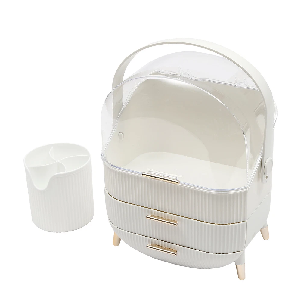 Portable Make Up Organiser Cosmetic Box Makeup Storage Box w/Lid Dustproof 18L Description Portable Make Up Organiser Made of high-quality HIPS and PS materials, this high-value portable make up organiser has a large capacity and can effectively hold most of your cosmetics. It also comes with an extra brush barrel so that your makeup brushes have their place too. While the carry handle design makes it very easy to carry as well, bringing unparalleled convenience to your life! Key Features Super Capacity: A large capacity of about 4 gallons can easily store most of your cosmetics, while it comes with a brush barrel to make it more convenient for you to store your brushes or makeup brushes. By the way, the first layer is 8.3in high, you can easily place high bottles. Transparent and Visible: This portable make up organiser has a visible design that makes it easy to see all the cosmetics in the box. Aseptic and Hygiene: The flip-top lid can keep your cosmetics free from dust, is not afraid of getting wet with water, ensures a dry and sterile storage environment, and is also easy to clean. Classified Storage: The three-layer design allows for sorted storage to keep all your daily essentials neat, organized, and within easy reach, making it easy for you to make reasonable use of space and also convenient for you to pick up later. Stylish and Exquisite: Classic and versatile white color and rounded shape with gold-plated legs is so stylish that you can't help but fall in love with it. Quality Assurance: This portable make up organiser uses high-quality HIPS and PS material, is solid and durable, and will not corrode and rust, the advantages of high strength make it can be used for a longer period of time. Easy to Carry: The 270° rotatable handle makes it easy to carry and accompany you on your journey, keeping you beautiful at all times. Ready to Use: It has a one-piece design without the need for installation. You can use it directly when you receive it, which is very convenient. Ideal Gift: This make up organizer is ideal for Christmas, Thanksgiving, Valentine's Day, Mother's Day, birthday, and other holidays for your mother, lover, family, and friends. Details Hand-free Design: The flip-top lid can keep open on its own, and the hand-free design makes it easier for you to pick up cosmetics. Height-boosting Feet: It has a height-boosting design with 4 height-boosting feet to make it more stable to place. Application This portable make up organiser is suitable store all kinds of cosmetics, nail polish, nail scissors, paper towels, and other daily appliances. Specification Material: HIPS and PS Color: White Shape: Rectangular Capacity: about 18L /4 gallons Brush Barrel Diameter: 12cm/4.7in Brush Barrel Height: 12.5cm/4.9in The First Layer Height: 21cm/8.3in Organiser Size: 25*18.5*37cm/9.8*7.3*14.6in Package Size: 41*23.5*31.5cm/16.1*9.25*12.4in Gross Weight: 1.89kg/4.2 lbs Package Included 1* Portable Make Up Organiser 1* Brush Barrel Notes: Please allow the slight color difference caused by the shooting light and 1-3cm error due to manual measurement and make sure you do not mind before ordering. Payment Delivery details Terms of sales About us Contact us Payment We accept ebay payment 。 Fees such as import duties, taxes are not included in the item price or shipping costs. These charges are the buyer's responsibility. Delivery details Shipping: 2-9 working days to: USA Terms of sales We maintain high standards of excellence and strive for hundred percent customer satisfaction. Feedback is very important to us. We hope that you contact us immediately before you give neutral or negative feedback, so that we can address your concerns. It is impossible to address issues if we do not know about them! About us Your satis faction is our ultimate goal. We work hard to earn your trust and future business. Our certified technicians have tested each item before shipping. The unit comes with 1 year limited warranty on all manufacturing defects. a) If you receive a defective item, you may return it or ask for a discount. Please contact us within 14 days after you receive the package. b) What you returned must be intact and in its original packaging as re? u. Customer is responsible for shipping costs of the returned item. c) We will cover the cost of shipping back t with the shipping rate indicated in the registration page. We will send you a new unit or refund the full payment you paid. Thank you. Contact us Business Hour Business Hour: Monday To Friday: 8:30 AM to 5:00 PM (Beijing China time) Due to time zones, our reply to your questions may not be immediately. But within above working time, we will reply your email within 24 hours. If it's non-workdays, please kindly be patient and wait till Monday. Please contact us with ebay message. Please feel free to contact us if you have any questions. Monday To Friday: 8:30 AM to 5:00 PM (Beijing China time) Due to time zones, our reply to your questions may not be immediately. But within above working time, we will reply your email within 24 hours. If it's non-workdays, please kindly be patient and wait till Monday. Please contact us with ebay message. Please feel free to contact us if you have any questions.