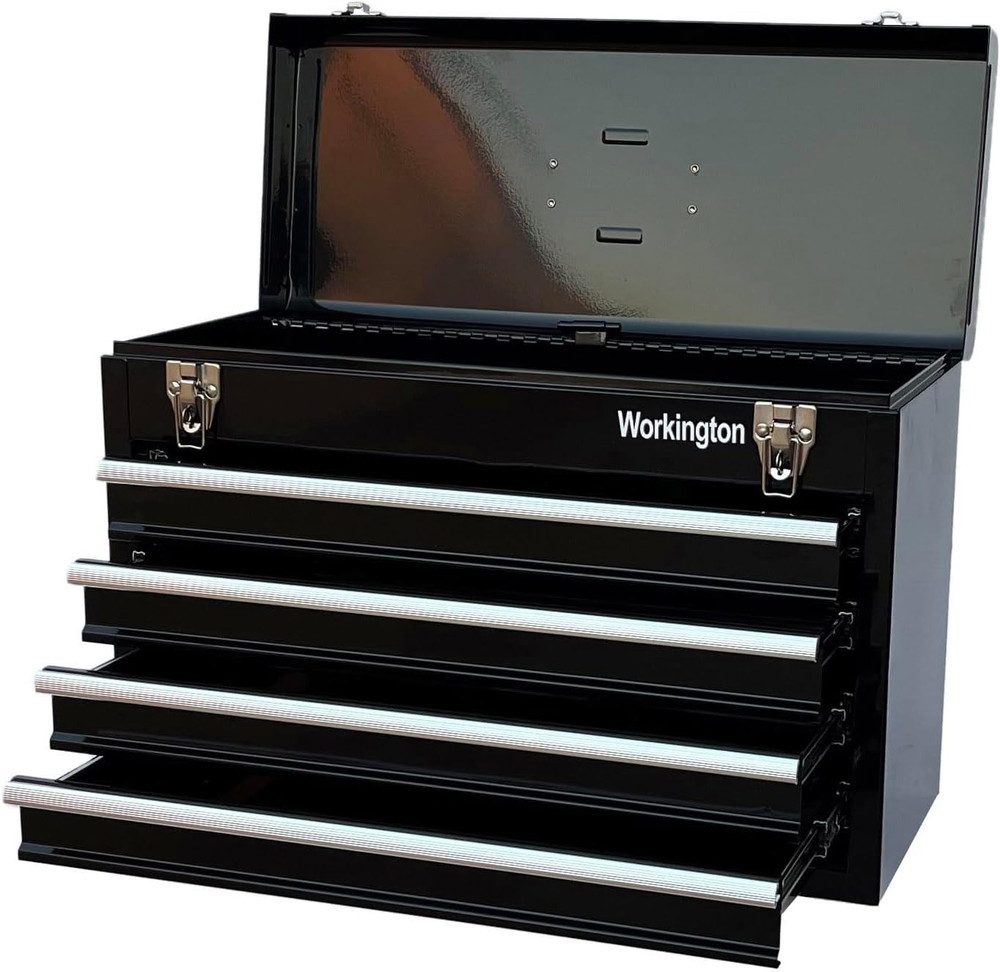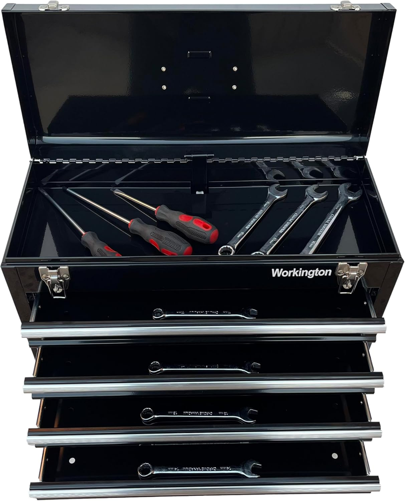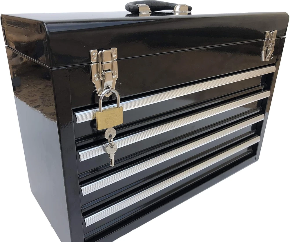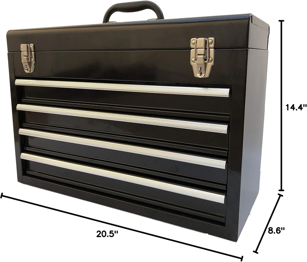 Store New Arrivals Add to Favorite View Feedback Contact Portable Metal Tool Chest with 4 Drawers, 20" 4-Drawer Tool Chest Cabinet with Ball Bearing Drawer Slides, Steel Tool Storage Box Organizer 4004 Black Description Item model number ABC Country of Origin China Top Material Type Steel Number of Pieces 1 Number of Compartments 5 Assembly Required Yes Installation Type Freestanding Frame Material Metal Finish Type Black Shining Powder Coating Included Components Shelves Door Style Sliding Material Steel Metal Style Portable,Box,Lockable Item Weight 21.6 pounds Is Customizable No Lock Type Latch Number of Shelves 4 Number of Drawers 4 Shape Rectangular Special Feature Portable, Durable Mounting Type Floor Mount Color Black Handle Material Plastic Base Type Pedestal Back Material Type Alloy Steel Recommended Uses For Product Tools Product Dimensions 8.6"D x 20.5"W x 14.4"H Size 4 Drawer 4 drawers portable storage tool chest with a comfortable top handle and full-length piano hinge Double latch system with pad lock for extra security ALL ball bearing drawer slides for smooth and efforless open-to-close of the drawers The tool box is made of 22 guage steel metal for being durable and sturdy Product Dimension: 20-1/2"(Width) x 8-5/8"(Depth) x 14-1/8"(Height) Product Description Workington 4-Drawer Tool Chest Cabinet Workington is seeking to provide storage and organizer solutions for both industrial and DIY fields. This tool chests series is mainly developed as 3 variations, as 4 drawers chest, 6 drawer chests as well as 9 drawers chest. All of our chests are equipped with ball bearing slides,which contributes to smooth and quite action when being pulled out and inside. The central cam lock mechanism system is added to secure the cabinet in place. Besides, two comfortable side handles make it being portable. Workington Portable Metal Tool Chest with 4 Drawers, 20" 4-Drawer Tool Chest Cabinet with Ball Bearing Drawer Slides Stable and Sturdy: The tool box is made of 22 guage steel metal for being durable and sturdy Comfortable Grip Side Handle: Comfortable grip side handle for being portable Central Cam Lock Mechanism System: Central cam lock mechanism system for extra security Meet Your Tool Storage Need: Plenty of storage space for the 4 drawers and top compartment Specifications Drawer dimension: 17-5/8(W) x 7-5/8(D) x 2-1/8(H) inch Product dimension: 20-1/2(W) x 8-5/8(D) x 14-1/8(H) inch Key Features Ball Bearing Slides All ball bearing drawer slides for smooth and efforless open-to-close of the drawers Top Grip Handles Comfortable grip top handle for being portable Double Latch System Double latch system with pad lock for extra security Four Drawers Four Drawers for plenty of storage sapce ABOUT US We offer the best prices around on high quality products. Our E-store includes media such as books, movies, music and games while offering electronics, toys, sporting apparel, clothing, tools, general home, garden items and more. SHIPPING We are always working hard to ensure your package arrives as soon as possible. Please understand that some factors like weather, high postal traffic, and the performance of shipping companies are outside of our control. We offer free shipping to the lower 48 states and ship within 2 business days of payment, usually sooner. We do not accept P.O. Boxes. Please provide a physical address. For shipping outside of the continental USA, we only use eBay's Global Shipping Program.The item is shipped to KY and then sent to the rest of the world. International customers are responsible for all duties and taxes. Continue to check out in order to calculate costs for shipping the item to your country. Messages regarding eBay's Global Shipping Program MUST be directed at eBay EXCLUSIVELY. RETURNS We offer a 30-Day Return Policy on items which you are not completely satisfied with. You have the option for a full-refund or an exchange of the item. No returns are available on items shipped outside of the USA. PAYMENT We accept PayPal. CONTACT US This page content is yet to come Please ad us to your favorite seller and visit again later Thank You CUSTOMER SATISFACTION We try our very best to make sure every customer is completely satisfied. If there's a problem, message us! We're happy to help. WE ACCEPT Copyright © 2021 AutoDS. | All Rights Reserved