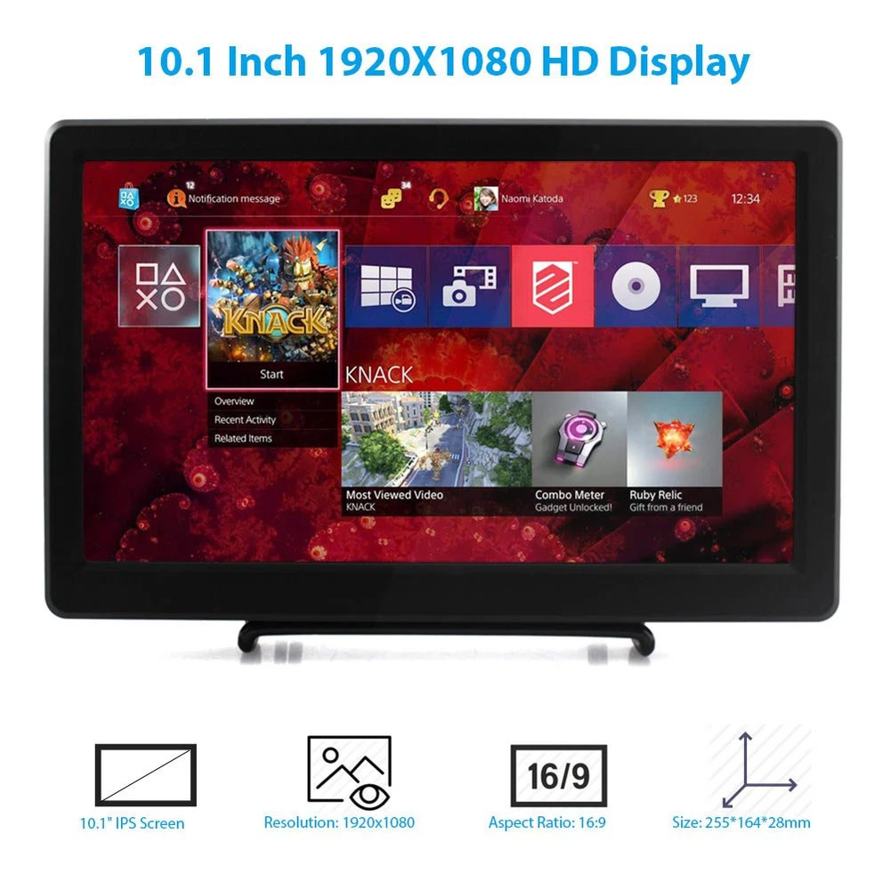 Great Picture Quality: Immerse yourself in stunning visuals with 10.1-inch monitor boasting a beautiful screen resolution of 1920x1080; the picture quality is exceptionally clear and crisp, delivering an impressive visual experience Light & Portable: Designed with portability, our mini monitor is incredibly lightweight and compact; it's a good companion for those on the go or for use in small spaces where space is limited; take it with you wherever you need a portable display Easy Setup: Connect your devices to portable monitor effortlessly using the HD or VGA ports; the display interfaces are neatly recessed on the side, allowing for easy cable management and a clean appearance Wide Application: It can use as a second screen for your laptop or as a mini PC screen; you can even plug in a TV stick and transform the monitor into a high-definition small TV; additionally, the VGA port allows for easy connection to your computer or laptop Flexible Installation: This portable monitor offers different installation options; choose to mount it on the wall using the standard VESA 75 mount (mount not included, M3*4mm screws needed), or place it on your desktop using the adjustable mount stand provided