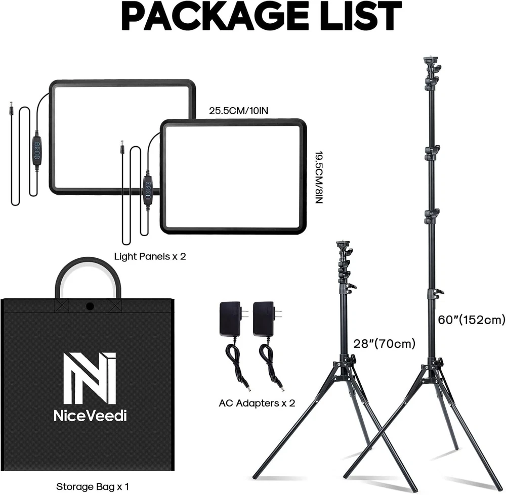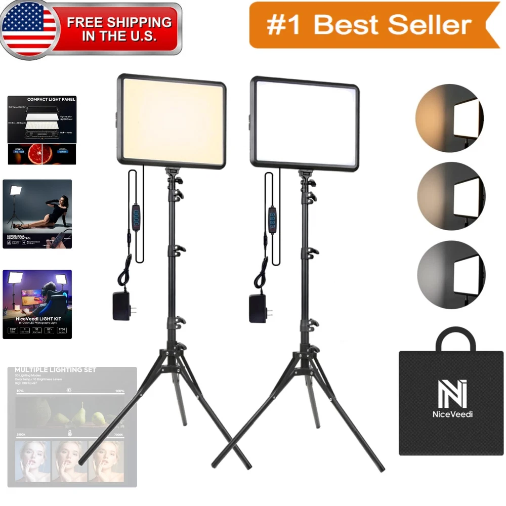 Portable Photography Lighting Kit - 2 LED Panels with Tripods and Soft Light ‹ › ‹ › ‹ › ‹ › ‹ › ‹ › ‹ › ‹ › ‹ › Portable Photography Lighting Kit - 2 LED Panels with Tripods and Soft Light Features: Provides 3 Color temperatures (2900K, 4800K & 7000K) to create various lighting atmospheres. Equipped with 352 LEDs for ample light and precise color rendering (CRI 97+). Adjustable brightness from 10 to 100% with remote control. Extended LED light panel with compact design for portability. Height-adjustable tripod up to 61 inches. Durable aluminum tripod with easy angle adjustment for optimal lighting. Wide application for Photo Studio, Video Recording, Photography, Vlogging, and more. Lightweight and durable design for easy transport. Benefits: Creates versatile lighting for different photography needs. Enhances color accuracy and reduces shadows. Portable and convenient for on-the-go use. Stable and continuous light output for consistent results. Easy to set up and adjust for optimal lighting conditions. Perfect for various photography and video applications. Comes with a complete package for immediate use. Dedicated customer service for any assistance or defects. Why choose our Portable Photography Lighting Kit? Elevate your photography and video recording game with our Portable Photography Lighting Kit. With adjustable color temperatures, brightness levels, and a high CRI for precise color rendering, this kit provides you with professional lighting solutions for diverse creative projects. Whether you're a photographer, content creator, or vlogger, our user-friendly design and durable construction ensure that you can achieve the perfect lighting anytime, anywhere. Don't settle for subpar lighting - invest in our lighting kit for exceptional results. Shipping Free & Fast Shipping - We offer free shipping to most of the USA with a normal delivery time of 3-7 days. However, due to the current situation, additional delivery time (up to 3 weeks) may be required for some items. Alternative Carriers - We may use alternative carriers (e.g. USPS, FedEx, UPS, etc.) to ensure your package arrives safely and on time. Due to the use of multiple carriers, we are unable to provide a tracking number automatically. Handling Time - Orders are processed and shipped within 1-2 business days of receiving cleared payment. Shipping Restrictions - Shipping to Alaska, Hawaii, Puerto Rico, Guam, and other US territories may incur shipping charges or delivery restrictions. Please contact us before ordering, or your order can be refunded/cancelled. State Restrictions - There may be restrictions based on your state of purchase. For example, certain items may not be shipped to California due to state regulations. Contact for Tracking Updates - If you require tracking updates or have any concerns about the delivery of your order, please feel free to contact us, and we will be happy to assist you. Return 30-Day Hassle-Free Returns - We want you to be completely satisfied with your purchase. If you are not, you can return the item within 30 days of receiving it for a full refund or exchange. Easy Return Process - To start a return, simply contact us and we will provide you with a prepaid return shipping label and detailed instructions. Restocking Fee - There are no restocking fees for returns. However, the buyer is responsible for return shipping costs if the return is not due to a seller's error. Refund Processing Time - Refunds will be processed within 5 business days of receiving the returned item in its original condition. Payment We accept all major credit cards, PayPal, and Apple Pay for your convenience. Your payment information is secure and encrypted to ensure a safe and seamless transaction. Please complete your payment within 3 days of purchase to avoid any delays in shipping. Feedback Your feedback is extremely important to us. We strive to provide the best products and customer service possible. If you are satisfied with your purchase, please take a moment to leave us a positive review. If you have any concerns or issues with your order, please contact us before leaving negative feedback. We are committed to resolving any problems and ensuring your satisfaction. Contact Us If you have any questions or concerns, please feel free to reach out to our customer support team. You can contact us through the eBay messaging system. We are available Monday to Friday, 9:00 am to 5:00 pm EST, and we will do our best to respond to your inquiry within 24 hours. Thank you for supporting our small family business! Model: Photography Lighting Kit Unit Quantity: 2 Item Weight: 6.27 pounds Item Height: Photography Lighting Kit Item Length: Photography Lighting Kit Item Width: Not Set Features: Portable Light Color: Not Set Compatible Brand: Not Set Compatible Series: Not Set Brand: Unbranded Type: LED Light Type: LED Number of Flash Heads/Units: Not Set LED/Bulb Count: More Than 200 Color: Multicolor Power Source: AC-Powered Power: 22 W Slave/Flash Connection: Not Set Series: NiceVeedi Voltage: 5 V MPN: Not Set Flash Head Trigger: Not Set Unit Type: Unit Mount Type: Tripod Stand Manufacturer Warranty: Not Set Range: Not Set