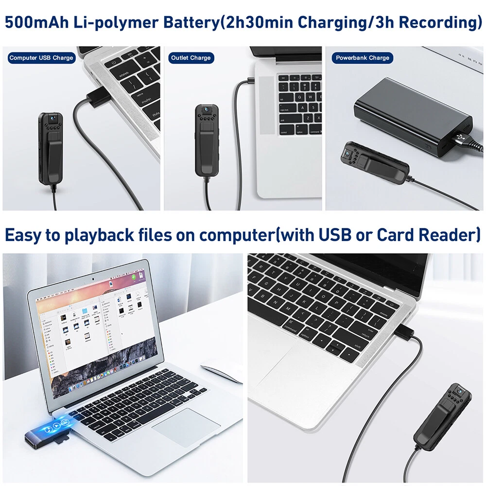 Features: 1. Infrared night vision function: Equipped with 6 non luminous infrared night vision assist lights, it can record even in full black, allowing for stress free shooting at night and recording even in low light conditions. 2. Angle: It can be used and recorded from any angle within 180 degrees, making it more convenient to adjust the shooting angle. 3. Long recording time and massive storage: This recorder supports a 256GB SD card and provides up to 288 hours of recording time at 512kbps. Rechargeable built-in lithium battery ensures up to 15 hours of usage time. 4. High definition audio quality: This recorder can record in 1536kbps format, ensuring clear and high-quality sound. It is also equipped with a powerful DSP noise reduction chip, which can effectively reduce background noise and achieve perfect audio capture. 5.1080P High Definition: The wide-angle photosensitive lens provides comfortable and realistic shooting, with 1080P high-definition image quality and 30fps high frame rate, making dynamic moments realistic and smooth without stuttering: details are clear and visible. 6. Widely used and fully packaged: This device is very suitable for students, teachers, business people, etc. In addition, this miniature camera adopts a portable design. Due to its small size and lightweight design, you can easily carry it wherever you go. Specifications: Product color: Black Product Material: ABS, Anti fall and durable Product weight: 23g Resolution: 1080P Recording format: WAV Video format: AVI Video resolution: 1080p Connection: Supports OTG mobile phone connection Battery type: Built in lithium battery Battery capacity: 500mAh Battery recording time: approximately 25 hours Battery playback time: about 15 hours (built-in rechargeable 500mAh lithium battery, battery charging time: about 1 hour) Memory Expansion: Supports up to 256GB (excluding TF card) Package List: Recorder * 1 User Manual * 1 USB cable * 1 Be careful: This recorder supports a 256 GB SD card, not included (no flash memory, please insert the card before use) On Dec 26, 2024 at 23:52:22 PST, seller added the following information: