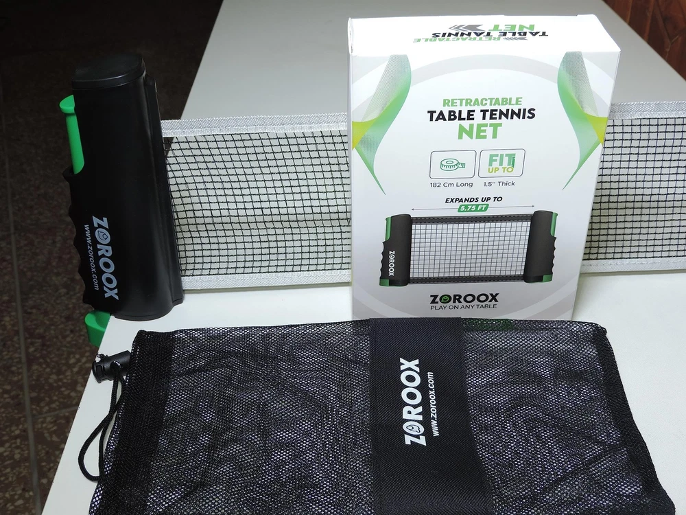 Introducing the GameChanger Retractable Table Tennis Net: Elevate Your Ping Pong Experience! Transform any surface into a thrilling table tennis arena with our revolutionary GameChanger Retractable Table Tennis Net. Say goodbye to the limitations of traditional nets and embrace a new era of convenience, versatility, and unmatched portability. Engineered with innovation in mind, this cutting-edge retractable net is a game-changer for players of all skill levels. Unleash your competitive spirit and engage in exhilarating matches anytime, anywhere. Whether you're at home, in the office, or on the go, this net adapts effortlessly to any table, turning it into a high-energy ping pong battlefield in seconds. Why choose the GameChanger Retractable Net? Instant Setup, No Hassle: Bid farewell to tedious installation and tangled nets. With our retractable design, you can effortlessly set up the net within seconds. Simply pull the net across the table, attach it to both sides, and you're ready to play! Fast, easy, and frustration-free. Perfect Tension, Flawless Bounce: Designed with precision, the GameChanger Net ensures optimal tension, creating a consistent and responsive bounce. Experience the true essence of table tennis with every shot, rally, and serve. Get ready for an intense game that will keep you coming back for more. Portable and Compact: Our net is ultra-compact and lightweight, making it the ideal companion for players on the move. Whether you're traveling, going on a picnic, or visiting friends, simply retract the net, pack it in the sleek carrying case provided, and take your ping pong passion with you wherever you go. Versatility Redefined: The GameChanger Net fits a variety of table sizes, allowing you to unleash your skills on a wide range of surfaces. From dining tables to office desks, picnic tables to kitchen countertops, you can turn any flat surface into your personal ping pong playground. Adaptability has never been this exciting! Durable and Built to Last: Crafted with premium materials, our retractable net is designed for long-lasting performance. The sturdy frame and high-quality mesh resilience against intense gameplay and ensure that the net withstands countless matches, serving you for years to come. Level up your table tennis game with the GameChanger Retractable Table Tennis Net. Don't settle for limitations when you can unleash your ping pong prowess wherever and whenever you desire. Embrace innovation, redefine competition, and make every table a center stage for exhilarating matches. Get your GameChanger Net today and experience table tennis like never before! CONVERT ANY TABLE PING PONG TABLE - Retractable Table Tennis net can convert any home table to Ping Pong Table easily. TABLE TENNIS ON THE GO - Getting bored; set up Table Tennis game instantly, on any table up to 181cm wide EASY SETUP - Press & clamp the net posts easily to your dining tables & office table up to 3.81 cm thick surface HEAVY DUTY CLAMPS FOR WIDER TABLES - Superior quality | Extra Long up 181 CM | Suitable for indoor or outdoor HIGH QUALITY NET: High Quality Net that can handle any kind of shot. STABLE & NON-SLIP DESIGN : table tennis net set with the frame wave design make it easy to hold when stretching. There is non-slip rubber on the jaw and the strong bite force makes it firm. The clip fits tables under 5cm in thickness. SATISFYING PERFORMANCE TABLE TENNIS NETS: This table tennis nets are made of strong nylon, and the dense mesh (5mm) will not out of shape easily. The net can maximum stretch to 182 cm.