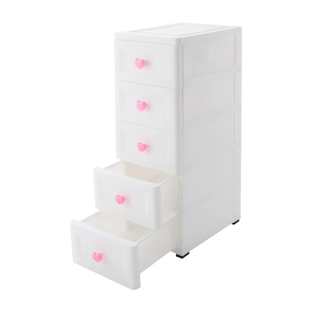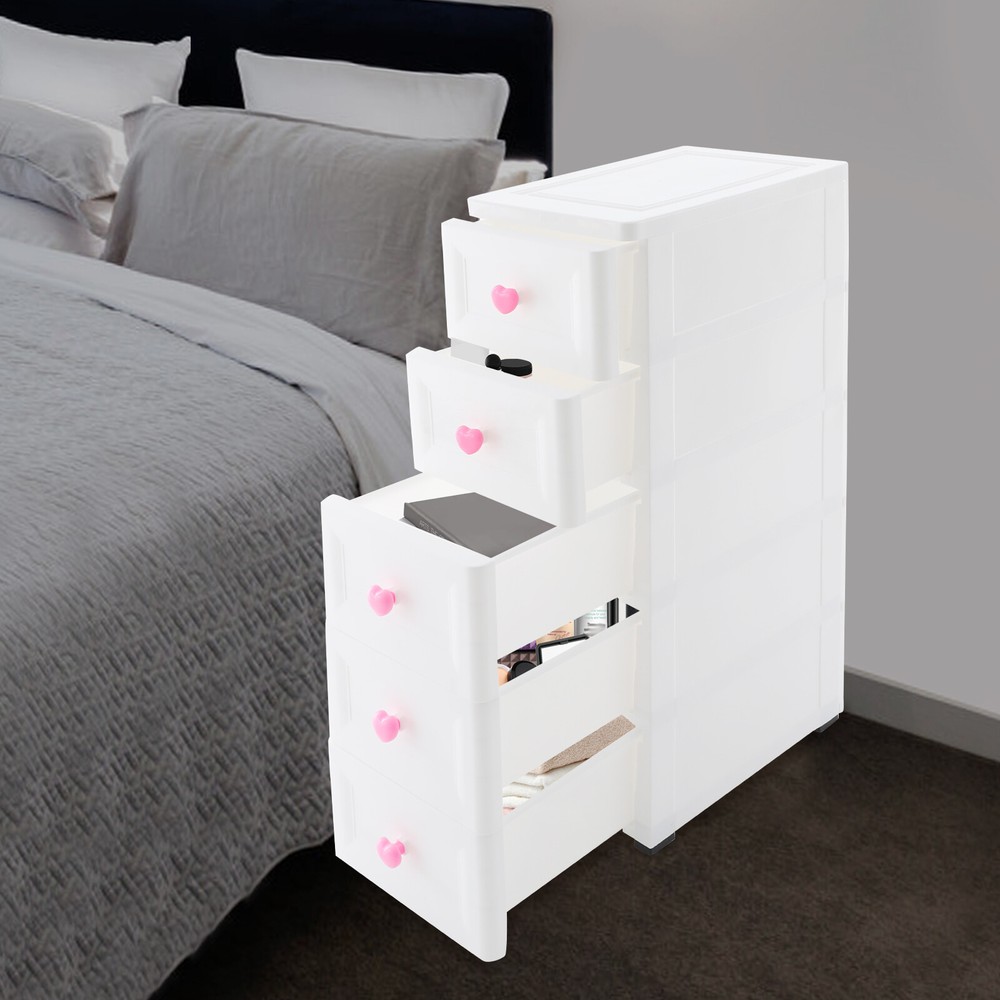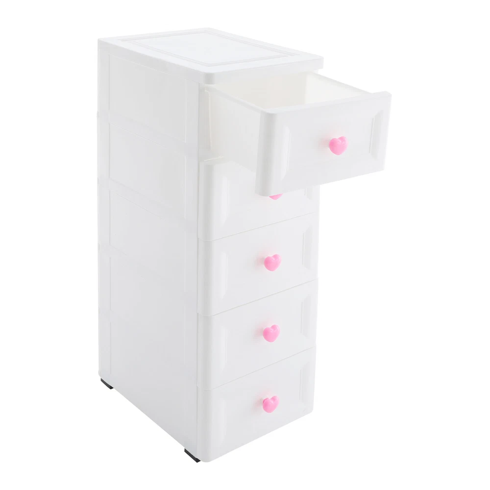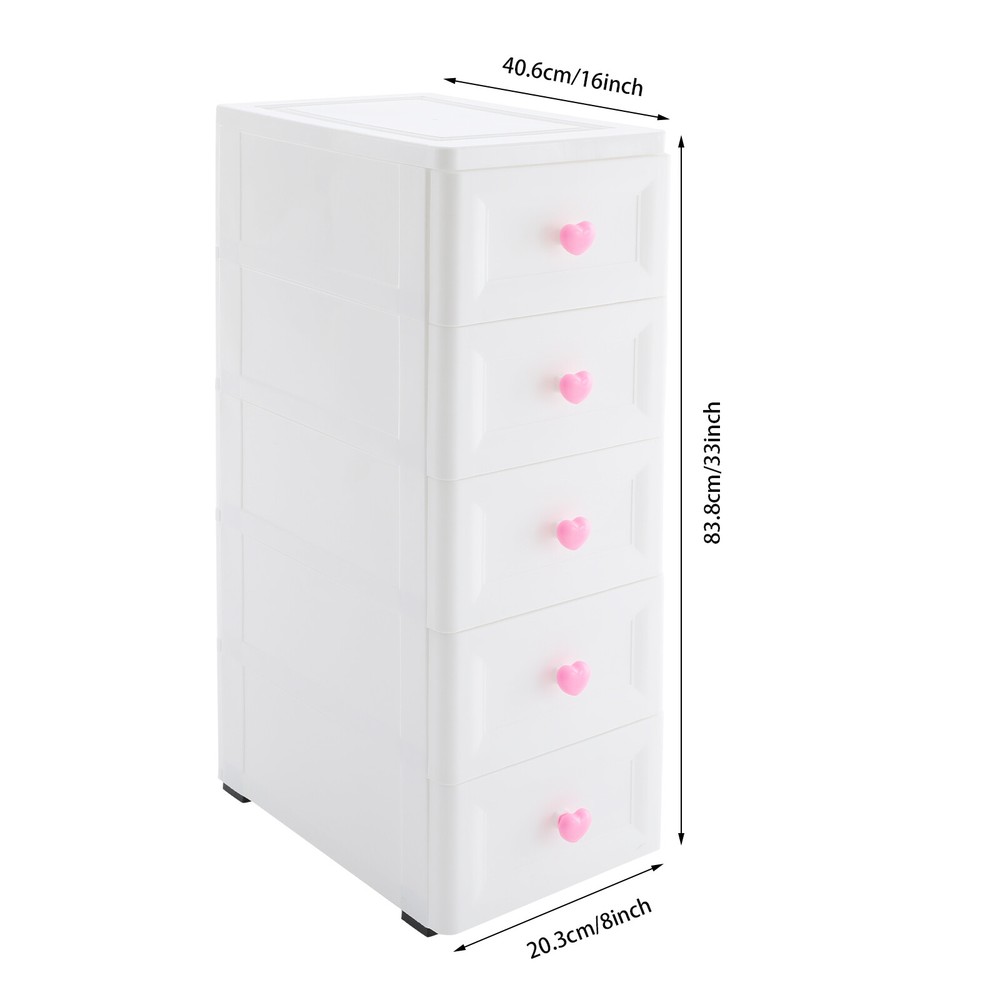 Have a nice day~ Description This 5-tier drawer storage organizer is built with premium materials for high sturdiness and durability. With its compact and smart design, it can utilize the narrow space in your home to keep kitchen spices, bathroom supplies, books, and documents, as well as living room sundries stored in an orderly manner. In addition, its minimalist modern style makes it not only practical but also aesthetically pleasing, making your home more organized and enhancing the overall beauty of your decor. Key Features Build to Last: The PP with frosted process is non-toxic , odorless , impact-resistant , and abrasion-resistant , which can protect the product from corrosion and enables the product to have a long service life and a good appearance. High Load Bearing: The thick panels and sturdy wheels provide the product with a sturdy construction to hold a weight of 22 lbs of each tier so that you can use it with more confidence. Excellent Organizer: It comes with five drawers, providing you with enough space to categorize and store your kitchenware, hygiene products, school books, tools, and other items, making your storage more organized and easier to find. In addition, the open platform at the top allows you to place potted plants, table lamps, photo frames and other decorative items, thus adding more attractive and small ingenuity to your room. Easy to Move: With four wheels, you can easily move the product and its inner items from one place to another, giving you great convenience on movement and floor-sweeping. Space Saving: The slim body(8-inch width) makes it easy to be placed in various narrow spaces, making full use of your home space. Clean with Ease: With a smooth surface and a simple structure, you can wipe it clean easily with a damp cloth. Ideal Gift: The modern style appearance and practical function make it an ideal housewarming gift for your friends, families, and colleagues. Buy with Confidence: We stand behind all our guests and look forward to assisting you with your purchase. It is our pleasure to answer your confusion and questions. The end of the story between us is not "we sell and you buy". Details Convenient Handles: The drawer handles allow you to easily pull the drawer out and access your items. Rounded Corners: They are smooth to the touch and can prevent your hands from scratching. Application The product is suitable for use in various places such as baby rooms, corridors, offices, kitchens, living rooms, bedrooms, study rooms, bathrooms, apartments, school dormitories, hotels, and so on. Specifications Color: White Material: PP Handle Shape: Heart Process: Frosted Process Number of Tiers: 5 Mount Type: Free Standing Assembly Required: Yes Load Bearing Capacity(Each Tier): 10kg/22lbs Product Overall Size: 20.32*40.64*83.82cm/8*16*33in Package Size: 41*40*27cm/16.14*15.75*10.63in Gross Weight: 4.2kg/9.26lbs Net Weight: 4kg/8.82lbs Package Included 1* Drawer Storage Organizer 1* English Manual Other Needed Accessories Notes Please check the size carefully before ordering. Please use the product within its weight capacity to avoid damage. Please allow the slight color difference caused by the shooting light and 1-3cm error due to manual measurement, and make sure you do not mind before you order. Payment Delivery details Terms of sales About us Contact us Payment We accept ebay payment 。 Fees such as import duties, taxes are not included in the item price or shipping costs. These charges are the buyer's responsibility. Delivery details Shipping: 2-9 working days to: USA Terms of sales We maintain high standards of excellence and strive for hundred percent customer satisfaction. Feedback is very important to us. We hope that you contact us immediately before you give neutral or negative feedback, so that we can address your concerns. It is impossible to address issues if we do not know about them! About us Your satis faction is our ultimate goal. We work hard to earn your trust and future business. Our certified technicians have tested each item before shipping. The unit comes with 1 year limited warranty on all manufacturing defects. a) If you receive a defective item, you may return it or ask for a discount. Please contact us within 14 days after you receive the package. b) What you returned must be intact and in its original packaging as re? u. Customer is responsible for shipping costs of the returned item. c) We will cover the cost of shipping back t with the shipping rate indicated in the registration page. We will send you a new unit or refund the full payment you paid. Thank you. Contact us Business Hour Business Hour: Monday To Friday: 8:30 AM to 5:00 PM (Beijing China time) Due to time zones, our reply to your questions may not be immediately. But within above working time, we will reply your email within 24 hours. If it's non-workdays, please kindly be patient and wait till Monday. Please contact us with ebay message. Please feel free to contact us if you have any questions. Monday To Friday: 8:30 AM to 5:00 PM (Beijing China time) Due to time zones, our reply to your questions may not be immediately. But within above working time, we will reply your email within 24 hours. If it's non-workdays, please kindly be patient and wait till Monday. Please contact us with ebay message. Please feel free to contact us if you have any questions.
