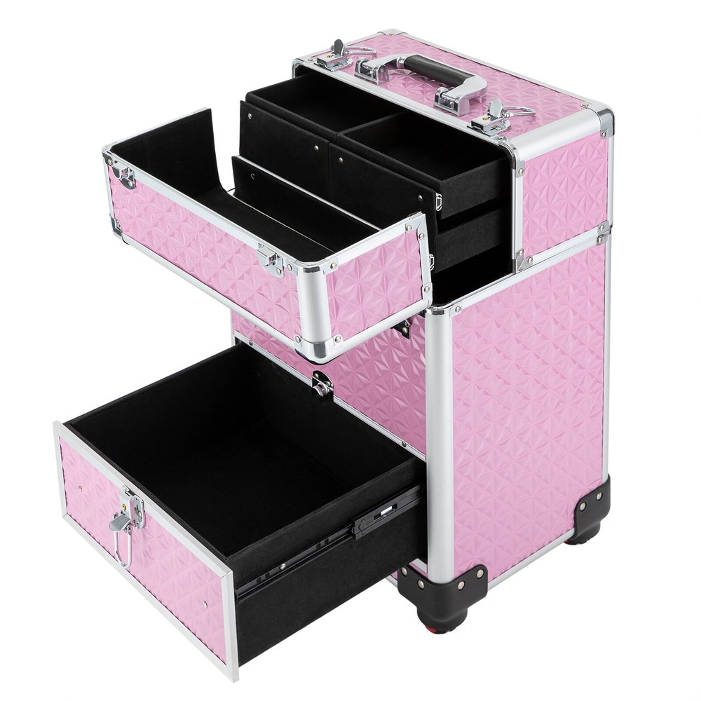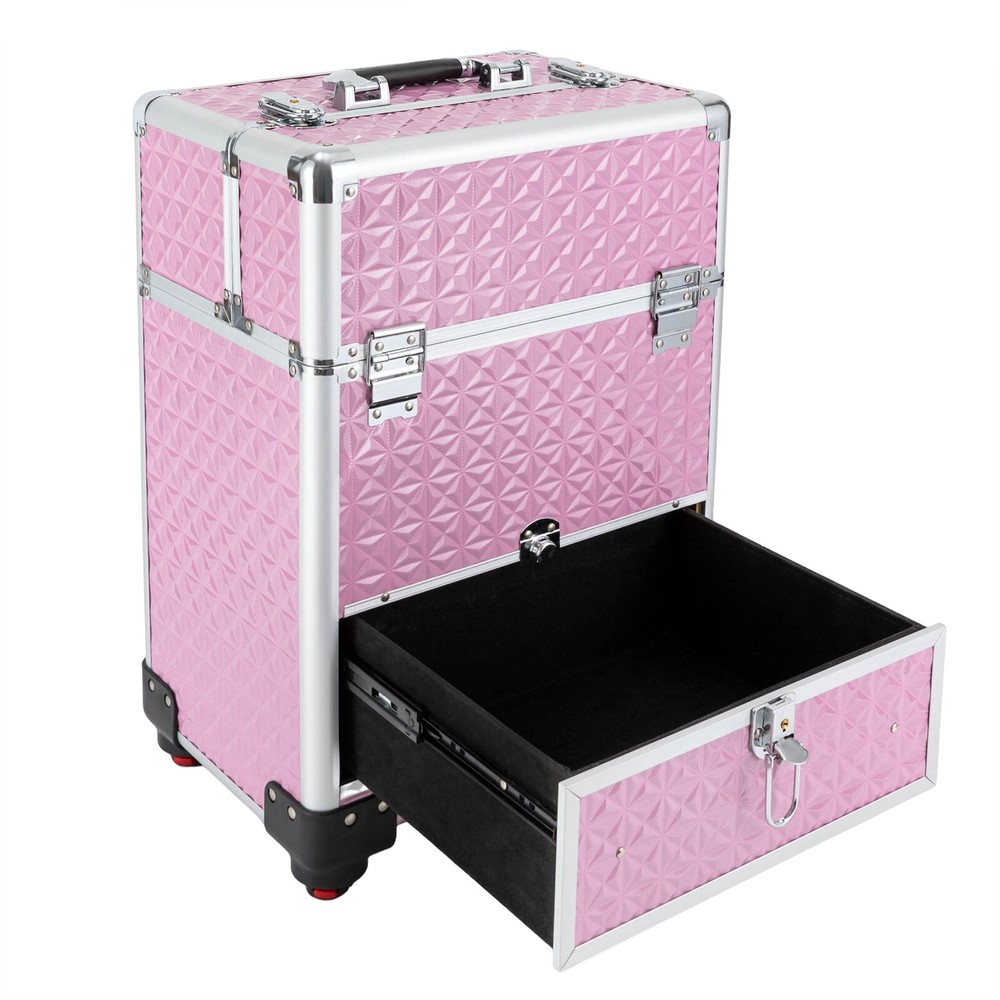 Specifications Material: Aluminum Alloy, ABS, Density Board, and Flannelette Surface Treatment: Indentation Color: Pink Style: Modern Shape: Rectangular Bearing Capacity: About 20kg/44.09lbs Number of Items: 1 Number of Wheels: 4 Gears of Pull Rod: 3 Number of Compartments: 7 Number of Drawers: 1 Net Weight: 5.8kg/12.79lbs Gross Weight: 6.8kg/14.99lbs Product Size: 34*25*47cm/13.4*9.8*18.5inch Package Size: 38*29*54cm/14.96*11.42*21.26inch Length of Pull Rod: About 80cm/31.5inch Package Included 1*Rolling Makeup Train Case 2*Keys Rolling Makeup Train Case Cosmetic Trolley Makeup Storage Organizer Luggage Box Rolling Makeup Train Case Cosmetic Trolley Makeup Storage Organizer Luggage Box Description A good hairstyle and makeup can bring us a new look, but messy tools often affect our work efficiency. Our rolling makeup train case can eliminate your concerns very well. Made of high-quality aluminum alloy, ABS, density board, and flannelette, this case is durable and not easy to rust, so you can use it for a long time and save costs. In addition, the large capacity and compact design can provide convenience for your daily use and carry. With the help of this product, your items can be organized neatly. Key Features Premium Material: This case is made of aluminum alloy, ABS, density board, and flannelette, making the product durable, and not easy to deform and rust, so it can keep beautiful and practical for a long time, and you don't need to replace it frequently. Exquisite Workmanship: The pattern on the surface of the case has gone through the indentation process, which can effectively improve the appearance of the product, play a protective role and extend the service life of the product Large Capacity: The case has seven compartments and a smooth drawer. The reasonable layout allows you to store a variety of items by category, such as skin care products, eye shadows, lipsticks, and makeup brushes. It also facilitates your search. Strong Bearing Capacity: The thickened material and stable structure enable the product to bear a weight of about 20kg/44.09lbs, so you can use it without worrying about being overweight. Adjustable Design: The compartment of the product can be adjusted freely, so you can adjust it according to your own needs and the actual situation of the goods, which is very convenient. Safe and Convenient: The front and top of the case are equipped with an independent safety lock with a built-in lock cylinder, as well as a buckle. With the lock catch, you can carry it safely and conveniently when you go out, and it can guard various items in the box anytime and anywhere. Ready to Use: The product adopts an integrated design, so you can use it directly after receiving the goods, saving you time. Beautiful Appearance: The case is pink with smooth lines, and is full of modern and fashion sense, making the product attractive. This case is not only a practical tool but also a chic accessory to show your unique fashion taste. Compact and Lightweight: The size of this case is 34*25*47cm/13.4*9.8*18.5inch, and its net weight is 5.8kg/12.79lbs, so you can put it in the dresser and the studio at will, and it is also very convenient for you to carry. Ideal Gift: With a good appearance and a large capacity, you can give it to your friends or family who work in the hair salon or makeup shop to help them store hair tools or other items. Protective Shipping: In order to prevent the product from being damaged and bumped during transportation, we fill the package with anti-collision protection foam to protect your products to the maximum extent possible. Details Removable Universal Wheels: This case is equipped with four detachable wheels which are tightly wrapped with 12mm/0.47inch plastic cement, which allows you to move flexibly with low noise. Practical Handle and Pull Rod: There is a handle on the top of the product and a pull rod fixed by two buckles and with three gears, which provides more convenience for you to move and carry it, and it can also meet the needs of people in different heights. Round Corners: The case adopts thickened alloy anti-collision corners and is fixed with 3 rivets, which are solid and stable, just like the armor to protect the product from collision and fall, and it also can better protect your safety and prevent skin from being scratched. Two Keys: Two high-quality keys are provided in the package of the product, which is convenient for you to open and close the product. Application This rolling makeup train case can be widely used by hair stylists, pet groomers , makeup artists, and so on for storing scissors, makeup, jewelry, combs, and other items. In addition, it is also very suitable for you to store tools or daily necessities when you go out. Specifications Material: Aluminum Alloy, ABS, Density Board, and Flannelette Surface Treatment: Indentation Color: Pink Style: Modern Shape: Rectangular Bearing Capacity: About 20kg/44.09lbs Number of Items: 1 Number of Wheels: 4 Gears of Pull Rod: 3 Number of Compartments: 7 Number of Drawers: 1 Net Weight: 5.8kg/12.79lbs Gross Weight: 6.8kg/14.99lbs Product Size: 34*25*47cm/13.4*9.8*18.5inch Package Size: 38*29*54cm/14.96*11.42*21.26inch Length of Pull Rod: About 80cm/31.5inch Package Included 1*Rolling Makeup Train Case 2*Keys Notes Please remember always lift the case with the top carrying handle when going upstairs. Please note that the four wheels of this product are not equipped with brakes. Please allow the slight color difference caused by the shooting light and 1-3cm error due to manual measurement, and make sure you do not mind before you order. Payment Delivery details Terms of sales About us Contact us Payment We accept ebay payment 。 Fees such as import duties, taxes are not included in the item price or shipping costs. These charges are the buyer's responsibility. Delivery details Shipping: 2-9 working days to: USA Terms of sales We maintain high standards of excellence and strive for hundred perc