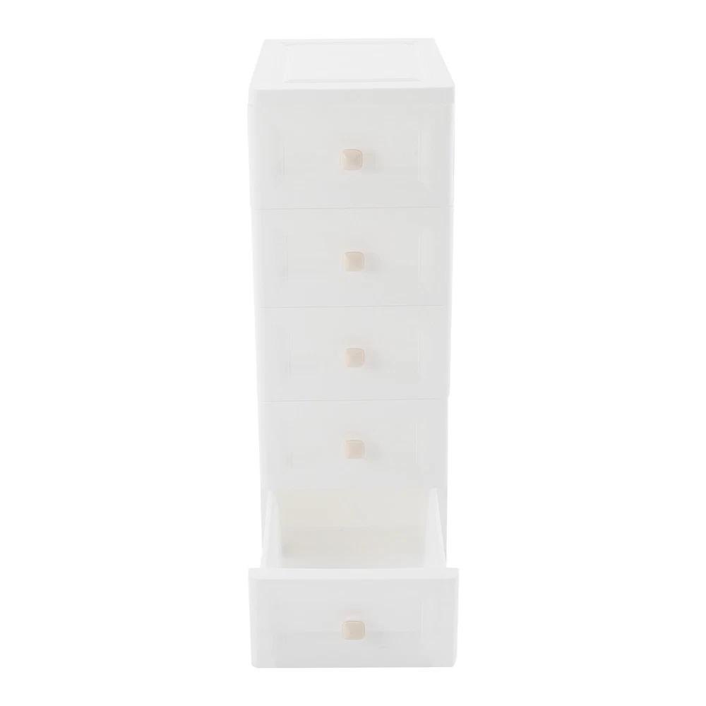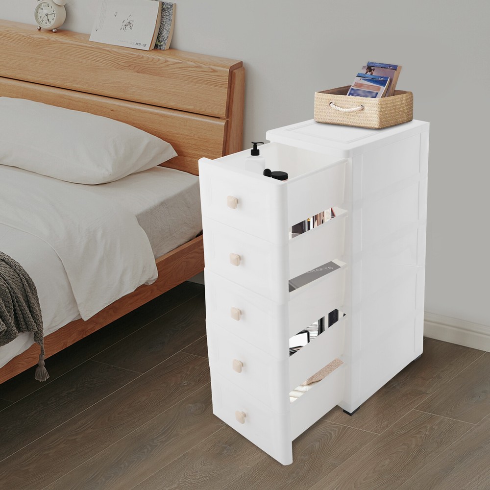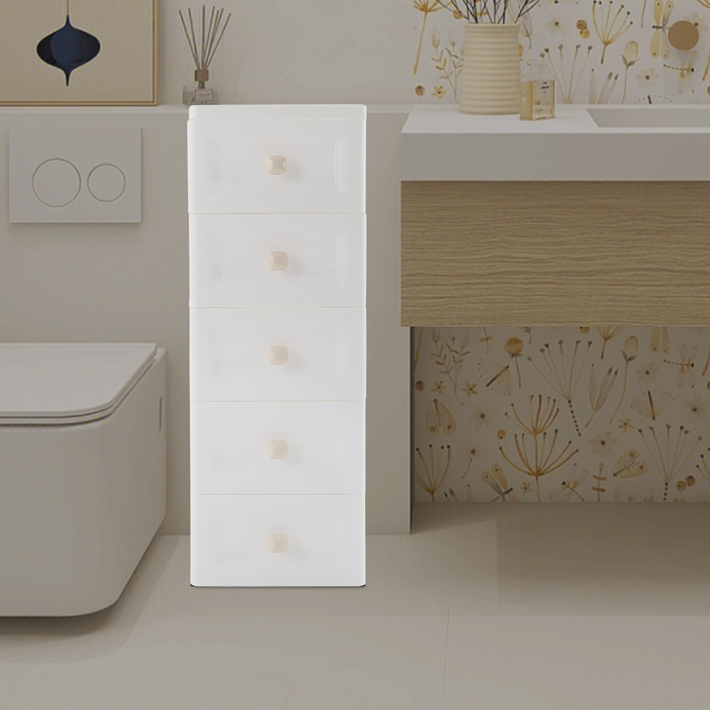 Have a nice day~ Description This 5-tier drawer storage organizer is built with premium materials for high sturdiness and durability. With its compact and smart design, it can utilize the narrow space in your home to keep kitchen spices, bathroom supplies, books, and documents, as well as living room sundries stored in an orderly manner. In addition, its minimalist modern style makes it not only practical but also aesthetically pleasing, making your home more organized and enhancing the overall beauty of your decor. Key Features Build to Last: The PP with frosted process is non-toxic , odorless , impact-resistant , and abrasion-resistant , which can protect the product from corrosion and enables the product to have a long service life and a good appearance. High Load Bearing: The thick panels and sturdy wheels provide the product with a sturdy construction to hold a weight of 22 lbs of each tier so that you can use it with more confidence. Excellent Organizer: It comes with five drawers, providing you with enough space to categorize and store your kitchenware, hygiene products, school books, tools, and other items, making your storage more organized and easier to find. In addition, the open platform at the top allows you to place potted plants, table lamps, photo frames and other decorative items, thus adding more attractive and small ingenuity to your room. Easy to Move: With four wheels, you can easily move the product and its inner items from one place to another, giving you great convenience on movement and floor-sweeping. Space Saving: The slim body(8-inch width) makes it easy to be placed in various narrow spaces, making full use of your home space. Clean with Ease: With a smooth surface and a simple structure, you can wipe it clean easily with a damp cloth. Ideal Gift: The modern style appearance and practical function make it an ideal housewarming gift for your friends, families, and colleagues. Buy with Confidence: We stand behind all our guests and look forward to assisting you with your purchase. It is our pleasure to answer your confusion and questions. The end of the story between us is not "we sell and you buy". Details Convenient Handles: The drawer handles allow you to easily pull the drawer out and access your items. Rounded Corners: They are smooth to the touch and can prevent your hands from scratching. Application The product is suitable for use in various places such as baby rooms, corridors, offices, kitchens, living rooms, bedrooms, study rooms, bathrooms, apartments, school dormitories, hotels, and so on. Specifications Color: White Material: PP Handle Shape: Square Process: Frosted Process Number of Tiers: 5 Mount Type: Free Standing Assembly Required: Yes Load Bearing Capacity(Each Tier): 10kg/22lbs Product Overall Size: 20.32*40.64*83.82cm/8*16*33in Package Size: 41*40*27cm/16.14*15.75*10.63in Gross Weight: 4.2kg/9.26lbs Net Weight: 4kg/8.82lbs Package Included 1* Drawer Storage Organizer 1* English Manual Other Needed Accessories Notes Please check the size carefully before ordering. Please use the product within its weight capacity to avoid damage. Please allow the slight color difference caused by the shooting light and 1-3cm error due to manual measurement, and make sure you do not mind before you order. Payment Delivery details Terms of sales About us Contact us Payment We accept ebay payment 。 Fees such as import duties, taxes are not included in the item price or shipping costs. These charges are the buyer's responsibility. Delivery details Shipping: 2-9 working days to: USA Terms of sales We maintain high standards of excellence and strive for hundred percent customer satisfaction. Feedback is very important to us. We hope that you contact us immediately before you give neutral or negative feedback, so that we can address your concerns. It is impossible to address issues if we do not know about them! About us Your satis faction is our ultimate goal. We work hard to earn your trust and future business. Our certified technicians have tested each item before shipping. The unit comes with 1 year limited warranty on all manufacturing defects. a) If you receive a defective item, you may return it or ask for a discount. Please contact us within 14 days after you receive the package. b) What you returned must be intact and in its original packaging as re? u. Customer is responsible for shipping costs of the returned item. c) We will cover the cost of shipping back t with the shipping rate indicated in the registration page. We will send you a new unit or refund the full payment you paid. Thank you. Contact us Business Hour Business Hour: Monday To Friday: 8:30 AM to 5:00 PM (Beijing China time) Due to time zones, our reply to your questions may not be immediately. But within above working time, we will reply your email within 24 hours. If it's non-workdays, please kindly be patient and wait till Monday. Please contact us with ebay message. Please feel free to contact us if you have any questions. Monday To Friday: 8:30 AM to 5:00 PM (Beijing China time) Due to time zones, our reply to your questions may not be immediately. But within above working time, we will reply your email within 24 hours. If it's non-workdays, please kindly be patient and wait till Monday. Please contact us with ebay message. Please feel free to contact us if you have any questions.