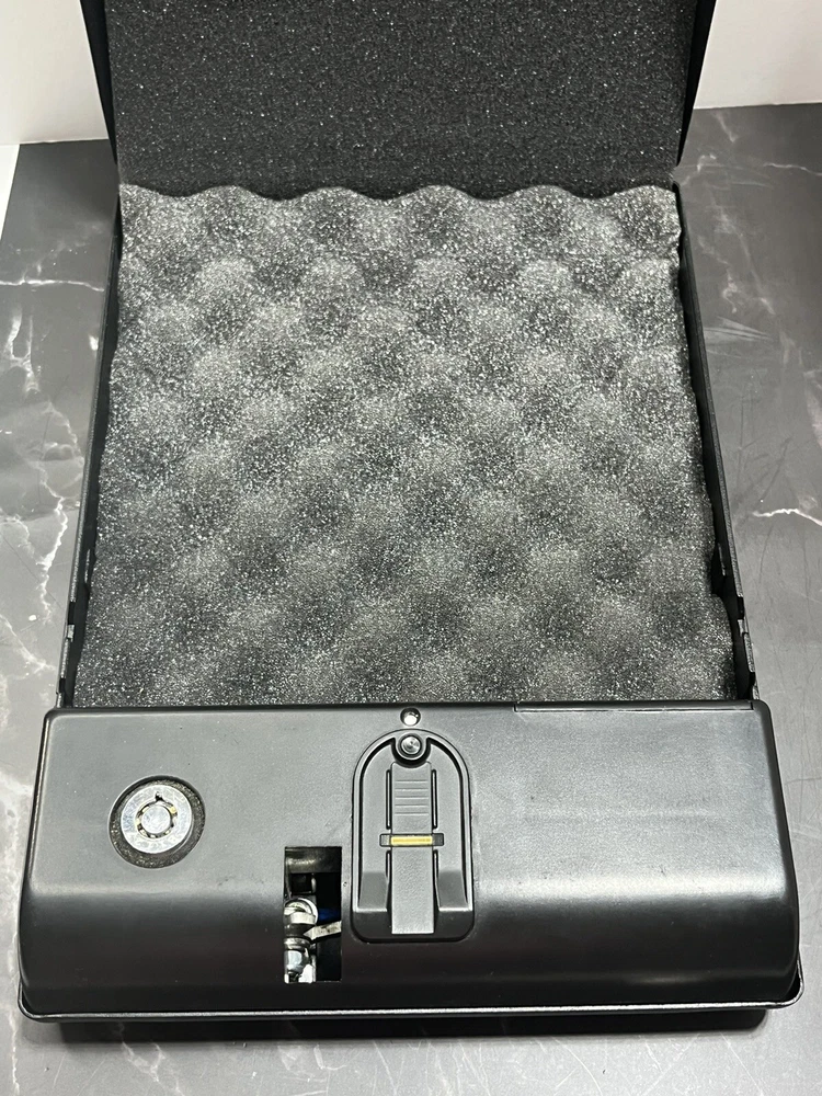 When you're in need of an ultra-safe portable storage solution for your pistols, then look no further than the portable safe gun valuables biometric fingerprint. The safe comes complete with biometric lock functionality, which ensures that the contents inside are kept secure and out of reach from unauthorized access. It is lightweight and portable, making it the perfect choice for those who are always on the go, as well as those who value discretion and privacy. The safe is designed to keep your weapons and valuable items safe and secure, with the added convenience of being easy to access. Comes with instructions and everything shown in pics. 2 keys.