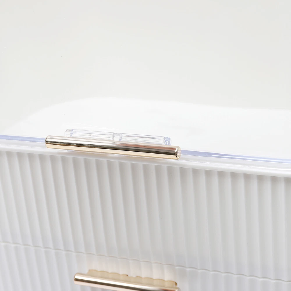 Description Portable Make Up Organiser Made of high-quality HIPS and PS materials, this high-value portable make up organiser has a large capacity and can effectively hold most of your cosmetics. It also comes with an extra brush barrel so that your makeup brushes have their place too. While the carry handle design makes it very easy to carry as well, bringing unparalleled convenience to your life!Details Hand-free Design: The flip-top lid can keep open on its own, and the hand-free design makes it easier for you to pick up cosmetics. Height-boosting Feet: It has a height-boosting design with 4 height-boosting feet to make it more stable to place