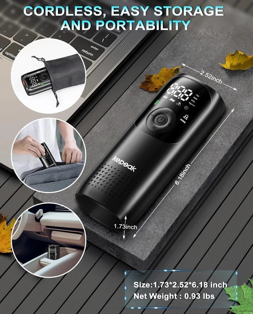 160PSI Portable Tire Inflator with 20000mAh Battery - Fast Air Pump for Cars Bikes