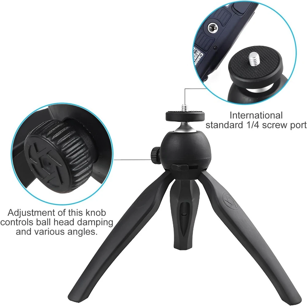-Brand New - Never Used - Questions: Feel free to ask any Questions - BOX: Never Opened - DESCRIPTION: • Portable tripod for smartphones and cameras, perfect for taking selfies, Youtube, vlogging, live streaming, and Family Gatherings. (Phone holder not included) * Adjustable, removable ball head allows you to adjust a wide variety of angles; non-slip rubber feet. * With a universal 1/4" screw mount is applicable for most digital cameras, action cameras, and webcams. - OFFERS: Reasonable offers are considered, LOWBALLERS, Best price and Lowest askers will be ignored - all sales final/no refunds/ no exchanges/ no returns - Disclaimer: I do not own the brand's trademarks, logos, pictures, or products posted. I do not intend to infringe on copyright. I find such content available on the internet. Contents are considered fair use. - Portable Tripod Stand, Camera Tripod, Phone Tripod Stand