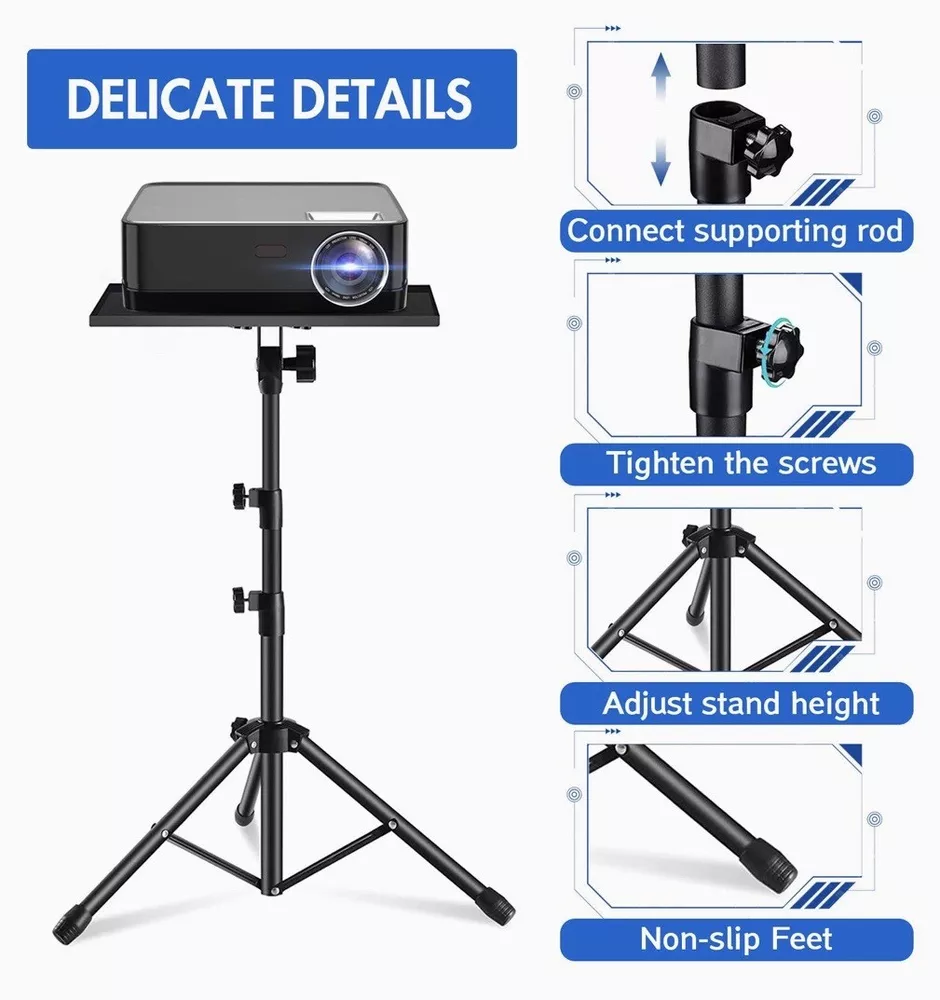 Note: Orders from Alaska/Hawaii, US protectorates, APO/FPO will be shipped via USPS parcel select ground. 🎦【17''-55'' ADJUSTABLE TRIPOD STAND】Heavy-duty tripod stand can quickly and easily adjust the height from 17''to 55''.Tray adjustment of 360°.The projctor tripod is perfect designed for projectors,laptops, DJ equipment, tablets, cameras,music books and books. Itcan be wildly used for versatile scenes such as presentation in office, home theater, business meeting, recording, reading, stand-working, speeches, DJ show, performance and so on. 🙋🏻【360 ADJUSTABLE OHONE HOLDER】Whether it is home theater or office speech, the phone holder helps you use the computer or projector more conveniently. The mobile phone holder is suitable for most mobile phone models on the market. 😃【DURABLE CONSTRUCTION & STABLE TRIPOD BASE】The projector stand is made of high-quality and sturdy materials. The laptop stand legs designed by German designers can not only help users to install the stand in 30s, but also increase the firmness and safety of the tripod stand. The larger range of triangular structure ensures the stability of the stand and keeps it away from the risks of dumping. 💘【TRUSTWORTHY & SERIVICE GUARANTEE] Customer satisfaction and affirmation are our unremitting pursuit and purpose. Any questions and confusion about the product, or any difficulties you encounter after purchasing, please do not hesitate to contact us, we will actively help you solve all problems.