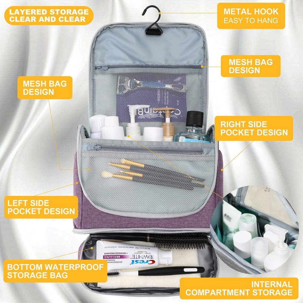 Qukou Portable Hanging Travel Cosmetic Bag,Waterproof Bathroom Shower Organizer Bags,Large Capacity Toiletry Bags for Men and Women, purple EXTRA LARGE CAPACITY - Toiletry bag 10.24*8.66*3.54in,Large storage capacity for men's grooming kit,travel size toiletries, cologne,shaving kit,shoe shine kit etc. DOUBLE-LAYER STORAGE - Double-layer storage (separate wet and dry storage) You can store towels, wipes, toothbrushes and other wet items in the waterproof storage area. WATERPROOF AND SHOCKPROOF - The toiletry bag is made of waterproof fabric, so it can be safely used in places that come in contact with water, such as bathrooms. B. in the bathroom, in the bathtub and in the sink. There is a layer of sponge in the fabric, which can effectively prevent injury from accidental falling or impact. EASY TO HANG - The metal hook design can provide more convenient placement and storage. CUSTOMER SATISFACTION SERVICE - We provide professional customer service before and after purchase. If there is any quality issue with the toiletry bag, please feel free to contact us. SHIPPING Domestic Buyers - We have confidence in our products, but if you are not fully satisfied please contact us within 30 days of purchase and you will get full refund. - We ship within 3 business days of payment, usually sooner - We offer FREE shipping on all orders! - We only ship to the lower 48 states, no APO/FPO addresses or PO Boxes allowed International buyers – please note: Import duties, taxes, and charges aren't included in the item price or postage cost. These charges are the buyer's responsibility. - Please check with your country's customs office to determine what these additional costs will be prior to bidding or buying. * Order Cancellation Policy ** You can return a product for up to 30 days from the date you purchased it. 1. The seller reserves the right to cancel the special case only due to eBay cancellation fee. 2. The decision of seller is the final. 3. The seller will respond to the cancellation request within 2 business days. Please wait for the result of cancellation. 4. In case the cancellation is not completed by some reasons, the buyer can follow the options below to get the refund. 4.1 The buyer can reject the item when it arrives. 4.2 The buyer can send the item back to the seller within 30 days If the buyer receives item (USA Shipment ONLY). The seller will provide the FREE return label to the buyer when the buyer opens " Return Item" case on eBay by using the reason as "Change my mind" ONLY. 5. When buyer has placed the order. The order will be processed and completed by automatic warehouse system within 5 minutes. In case that buyer sends the cancellation request after 5 minutes of placing the order, the request will be rejected. **Sending direct message to cancel the order is not allowed for every case.* Return Policy For the return case - If buyer would like to return the items for refund or replacement, please CONTACT SELLER to receive the free return label from seller. The refund or replacement will be processed with the tracking number of return label which is provided by seller only. The other ways of return which are not approved by seller will not be processed for the refund or replacement.