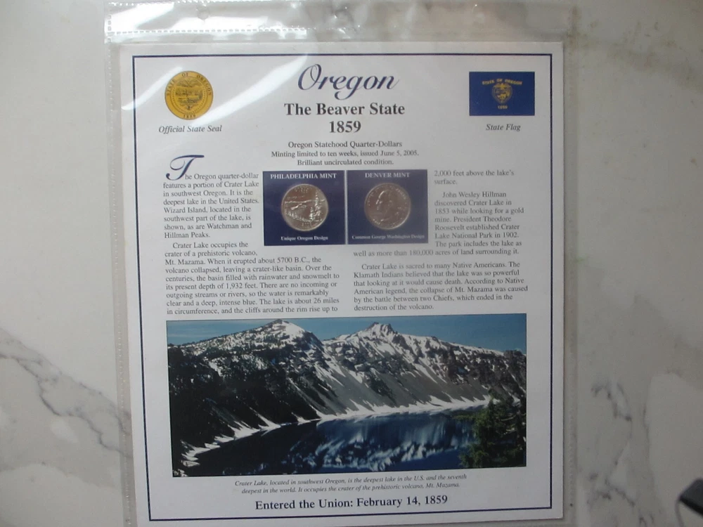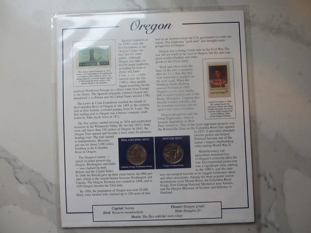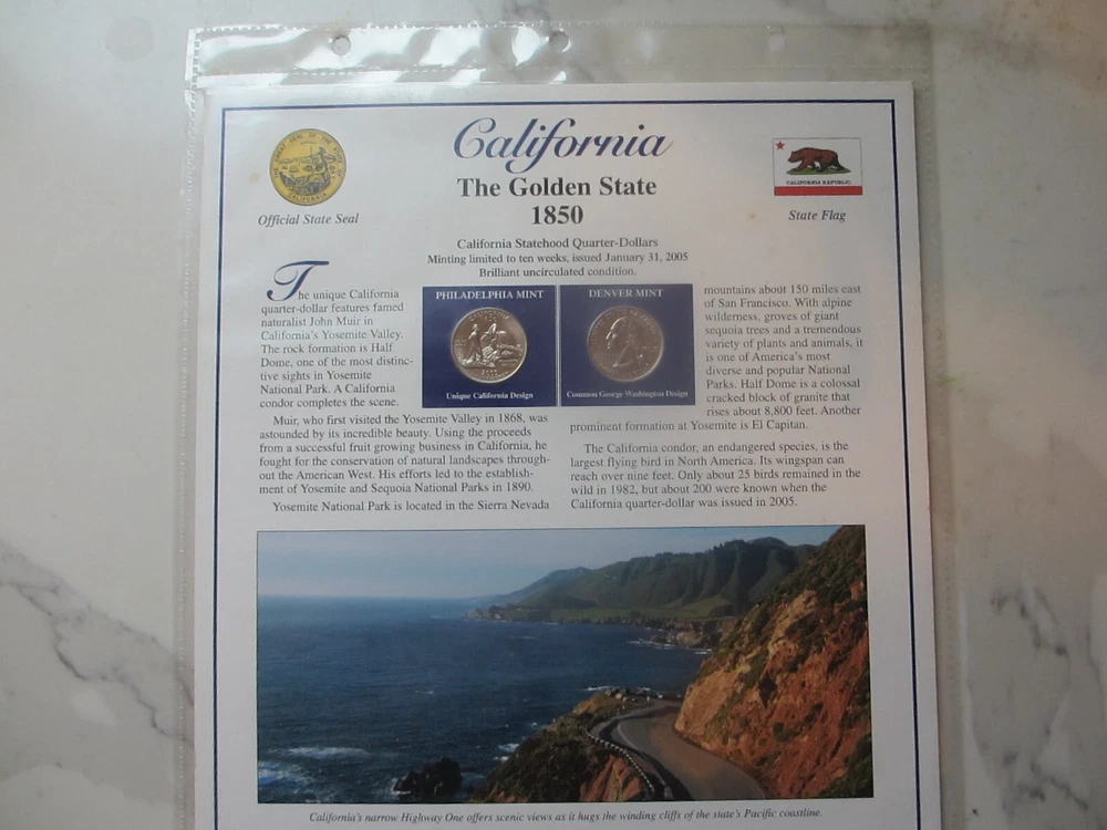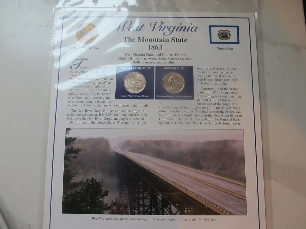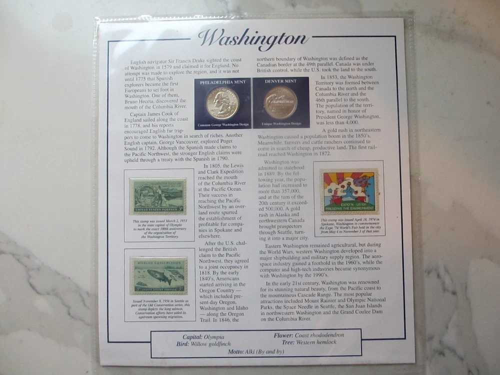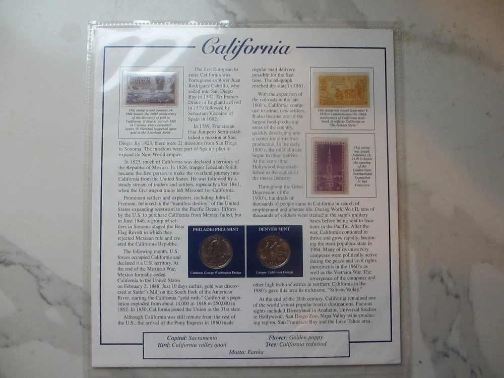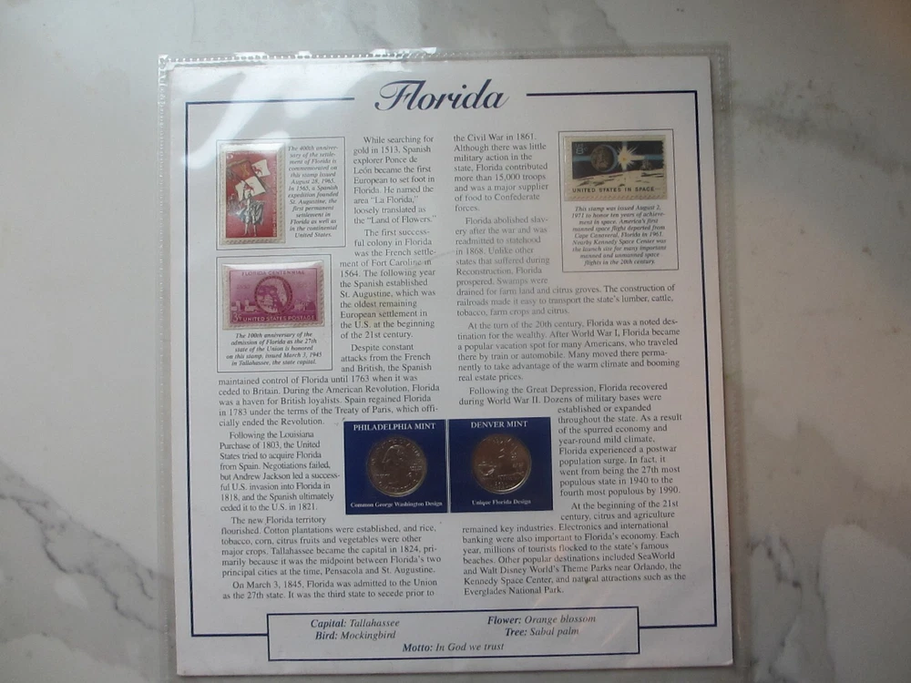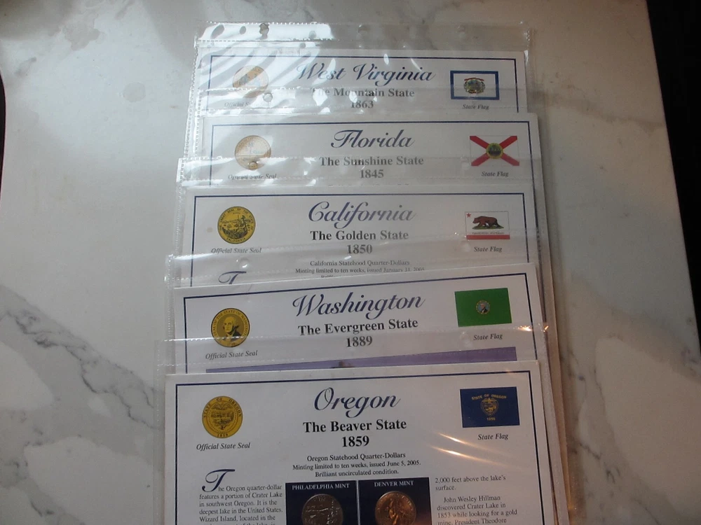 Postal Commemorative Society Statehood Quarters Collection Iot of 5 West Virginia, Florida, California, Washington, Oregon