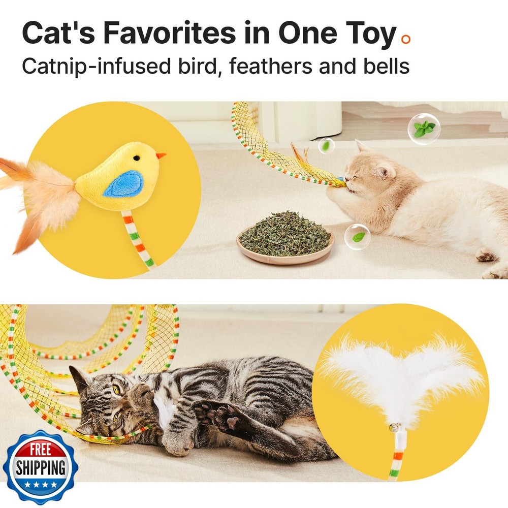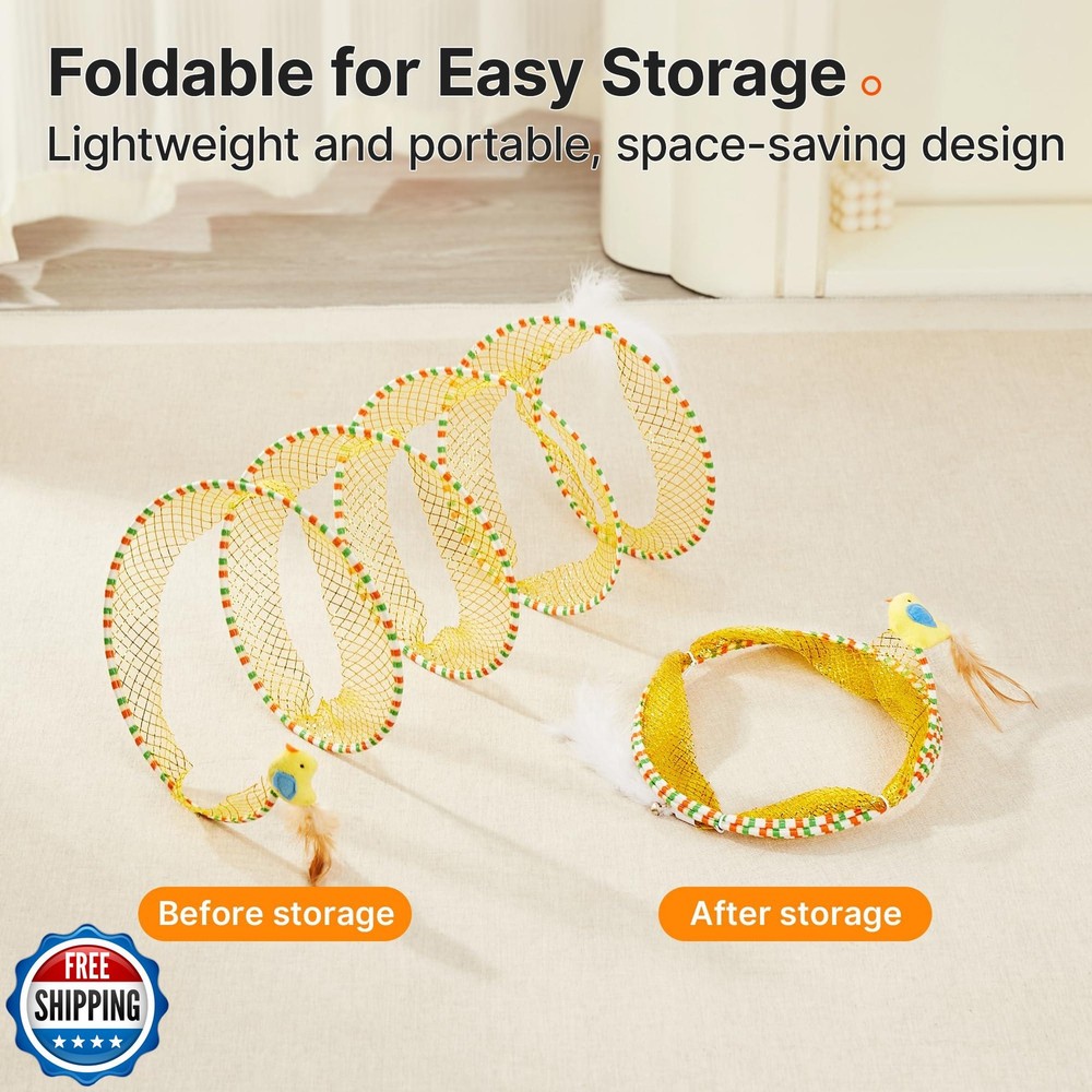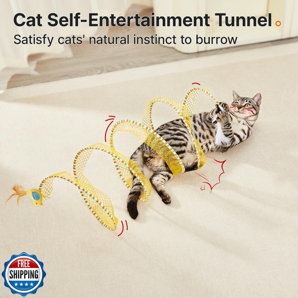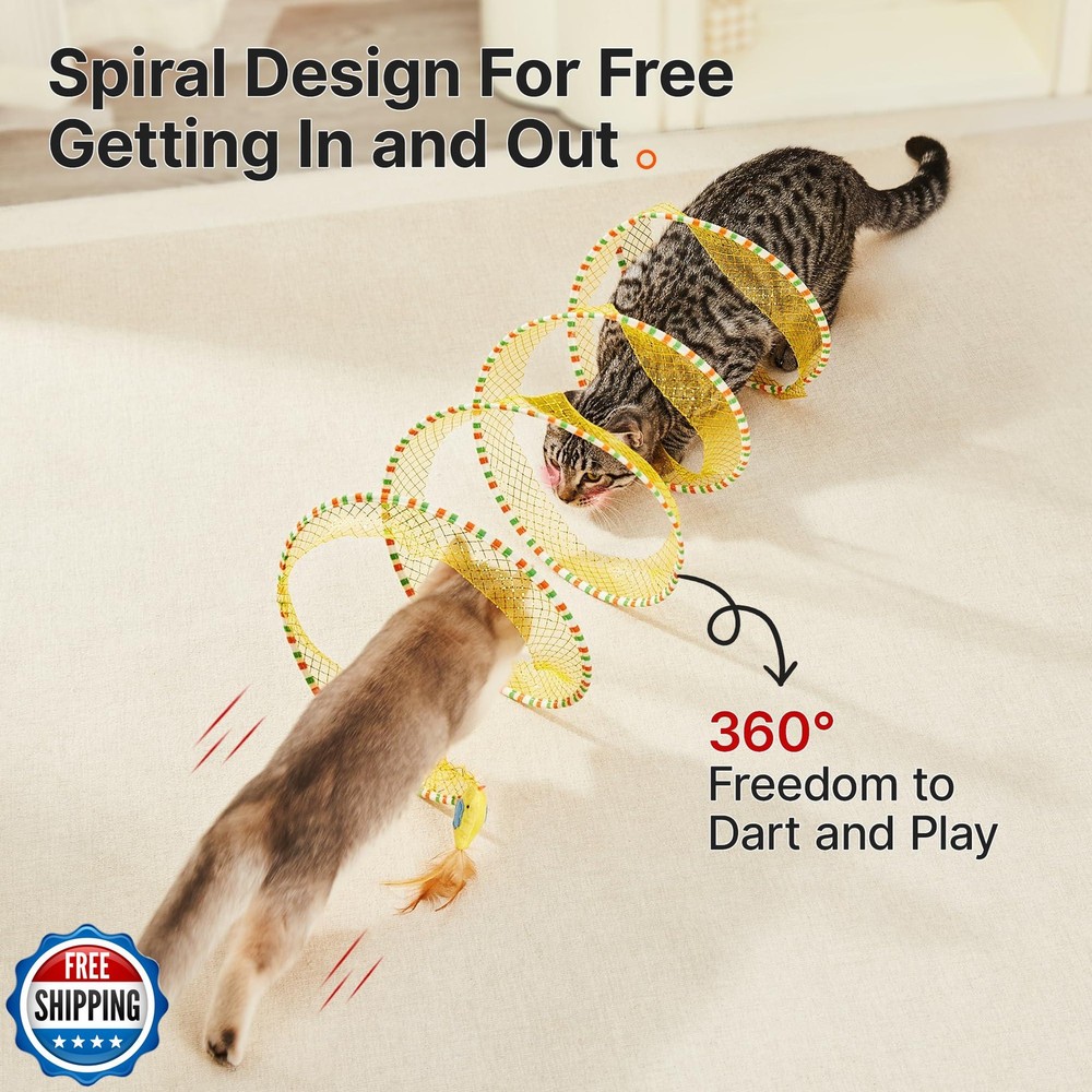 Potaroma Spiral Tunnel Cat Toy, Self Play Cat Play Spiral Kitten Collapsible Spring Tunnel Toy for Indoor Cats with Feather and Bell, 20 Inches Unfolded Features Interactive Tunnel for Endless Play: This unique spiral cat tunnel satisfies cats' natural burrowing instincts, encouraging fun indoor and outdoor play. Designed to keep your kitty entertained, the tunnel promotes active movement, making it a perfect toy for bored kittens and active cats alike. Stimulating Design with Accessories: Features a catnip-infused bird, feathers, and bells to captivate your kitty's attention and stimulate their hunting instincts. The springy structure enhances interactive games, providing enrichment for cats of all ages. Collapsible & Portable Convenience: Lightweight and collapsible design makes this tunnel easy to store and transport. Whether for indoor or outdoor use, it’s a must-have toy to ensure your cat stays active and engaged during playtime. Spacious & Durable for Active Cats: With a 9.8-inch diameter, this widened tunnel allows cats to freely dart, chase, and burrow without feeling restricted. The high-quality mesh and sturdy springs ensure long-lasting durability for energetic activity. Perfect Gift for Kitty Entertainment: Ideal for stimulating exercise and keeping cats entertained when they’re alone. This self-entertainment tunnel is a thoughtful gift for cats, bringing joy to both kittens and adult cats. Shipping Free & Fast Shipping: We offer free shipping to most of the USA with a normal delivery time of 3-7 days. However, due to the current situation, additional delivery time (up to 3 weeks) may be required for some items. Alternative Carriers: We may use alternative carriers (e.g., USPS, FedEx, UPS) to ensure your package arrives safely and on time. Due to the use of multiple carriers, we are unable to provide a tracking number automatically. Handling Time: Orders are processed and shipped within 1-2 business days of receiving cleared payment. Shipping Restrictions: Shipping to Alaska, Hawaii, Puerto Rico, Guam, and other US territories may incur shipping charges or delivery restrictions. Please contact us before ordering, or your order can be refunded/cancelled. State Restrictions: Certain items may not be shipped to California due to state regulations. Contact for Tracking Updates: If you require tracking updates or have any concerns about the delivery of your order, please feel free to contact us, and we will be happy to assist you. Return Policy 30-Day Hassle-Free Returns: If you are not completely satisfied with your purchase, you can return the item for free within 30 days of receiving it for a full refund or exchange. Easy Return Process: Contact us, and we will provide you with a prepaid return shipping label and detailed instructions. No Restocking Fee: There are no restocking fees for returns. However, the buyer is responsible for return shipping costs if the return is not due to a seller"s error. Refund Processing: Refunds will be processed within 1 business day of receiving the returned item in its original condition. Feedback Your feedback is extremely important to us. We strive to provide the best products and customer service possible. If you are satisfied with your purchase, please take a moment to leave us a positive review. If you have any concerns or issues with your order, please contact us before leaving negative feedback. We are committed to resolving any problems and ensuring your satisfaction. Contact Us If you have any questions or concerns, please feel free to reach out to our customer support team. You can contact us through the eBay messaging system. We are available Monday to Friday, 9:00 am to 5:00 pm EST, and we will do our best to respond to your inquiry within 24 hours. Thank you for supporting our small family business!