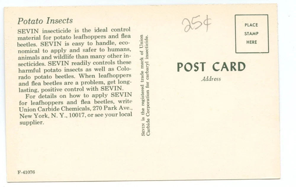 Potato Insects Sevin Insecticide Business Advertising Postcard