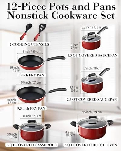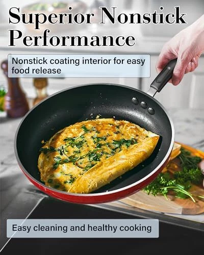 30 Days Return Policy Fast Delivery Trusted seller Pots and Pans Nonstick Cookware Set 12-Piece, Kitchen Cooking Set with Frying Pans and Saucepans, Induction Compatible, Marble Red Product Description Multi Use Cookware Set: 12 Piece nonstick pots and pans set includes: 1.5 and 2 quart saucepans with lids, 3 qt casserole with lid, 5 qt dutch oven/stockpot with lid, 8 inch and 9.5 inch fry pan, nylon spatula and spoon Good Heat Conduction: The nonstick pots and pans cooking set is made of thick-gauge, durable aluminum that provides quick and even heat conduction, preventing hot spots Ergonomic Handle: The cookware set features riveted stainless steel and plastic handles, providing a safe and secure grip that stays cool; The tempered glass lids have steam vents, allowing you to view food while keeping heat and moisture in Easy to Clean: The nonstick coating of the cooking set is easy to clean, requires less oil when cooking, and prevents food from sticking; Please note: Do not use metal utensils or sharp objects as they may scratch the coating Works on All Stovetops: Nonstick cookware set compatible with induction, gas, electric, glass, ceramic, halogen, and more. Oven safe up to 350°F and dishwasher safe Shipping Returns Payment Shipping Shipping is FREE to all addresses other than APO/PO boxes in the lower 48 states. All our stock ships from US-based warehouses. Shipped via USPS or UPS (depending on location and package weight) Unless stated otherwise, all orders will ship within 24-72 hours of your payment being processed. Check our feedback to see the great reviews of FAST shipping we offer. Returns As our valued customer, we will do our best to make sure the product you receive arrives to you on time and as expected. If you are not satisfied with your purchase, please contact us within 30 days of receiving your order to process a return. Payment We currently accept payment via eBay managed payments only. Once payment is cleared, we will dispatch your shipment within 1-3 business days. Please refer to the "Shipping" tab for more information regarding shipping speed to your destination.