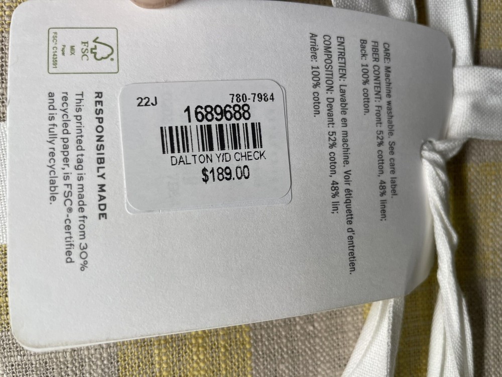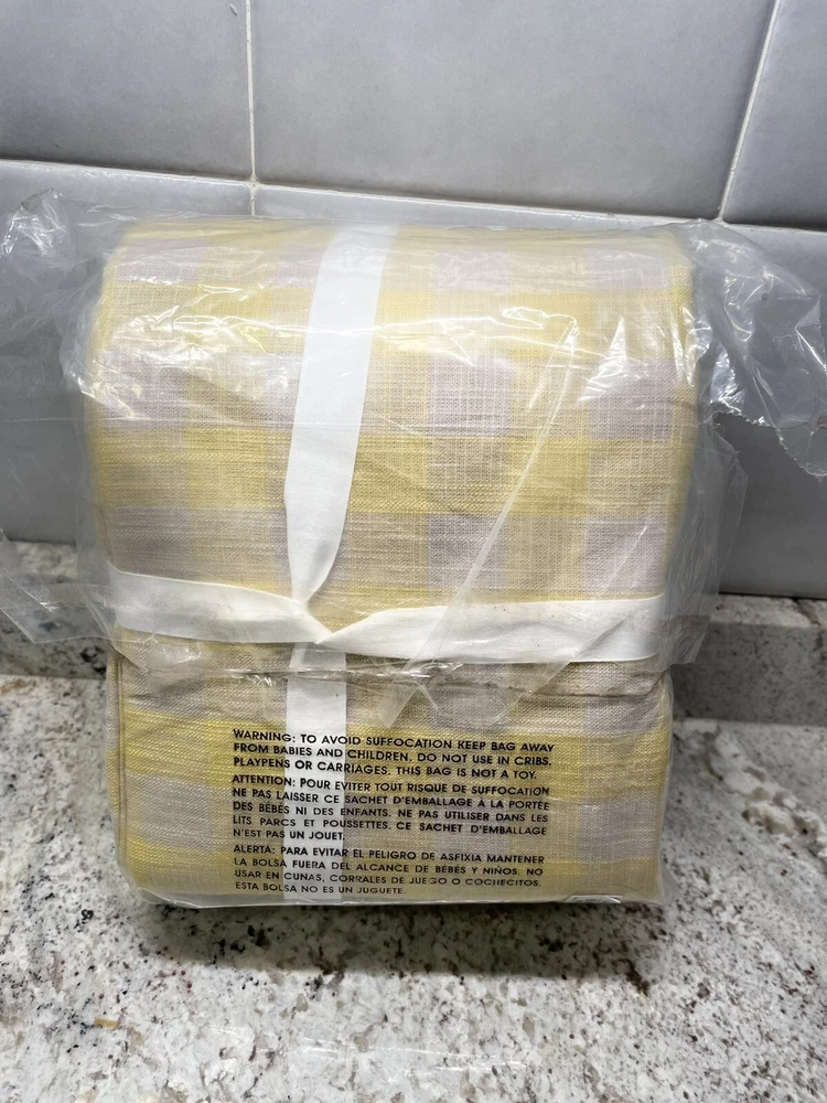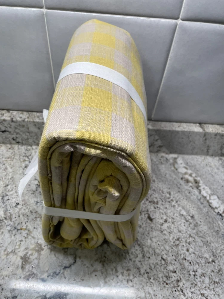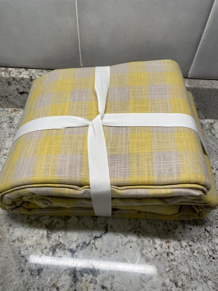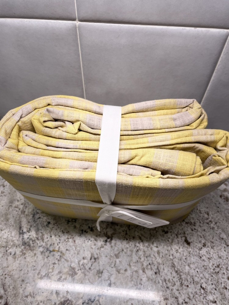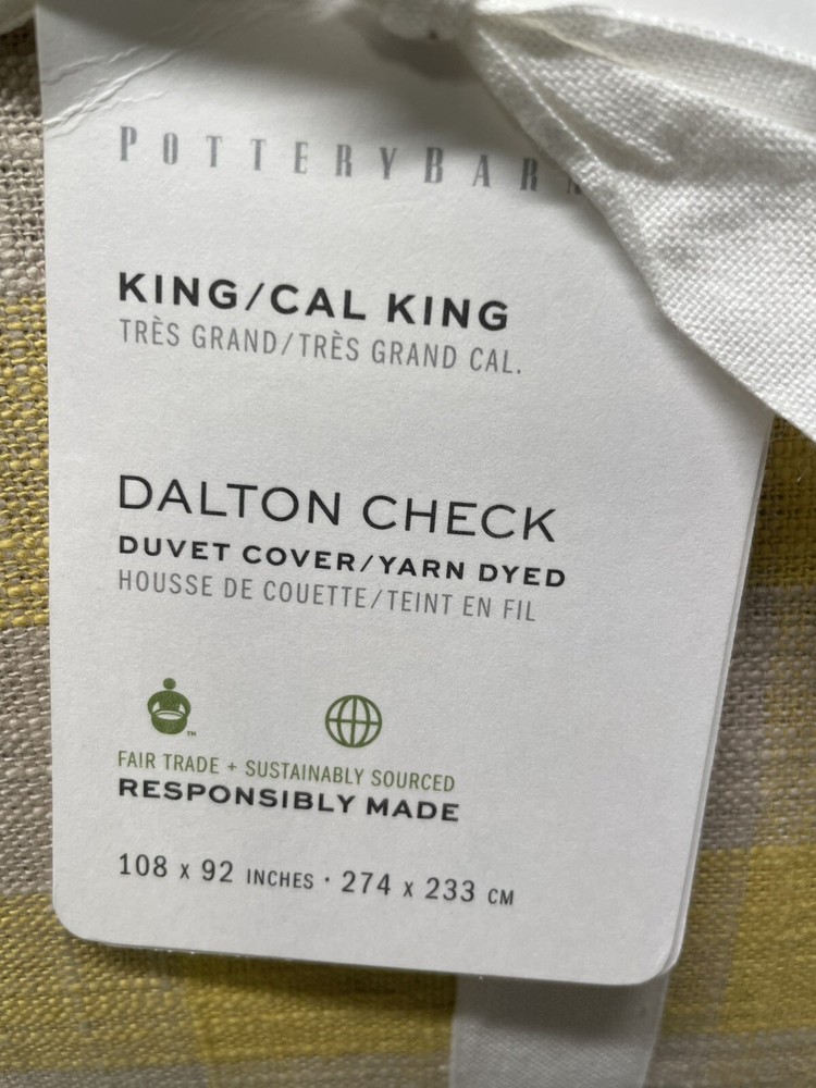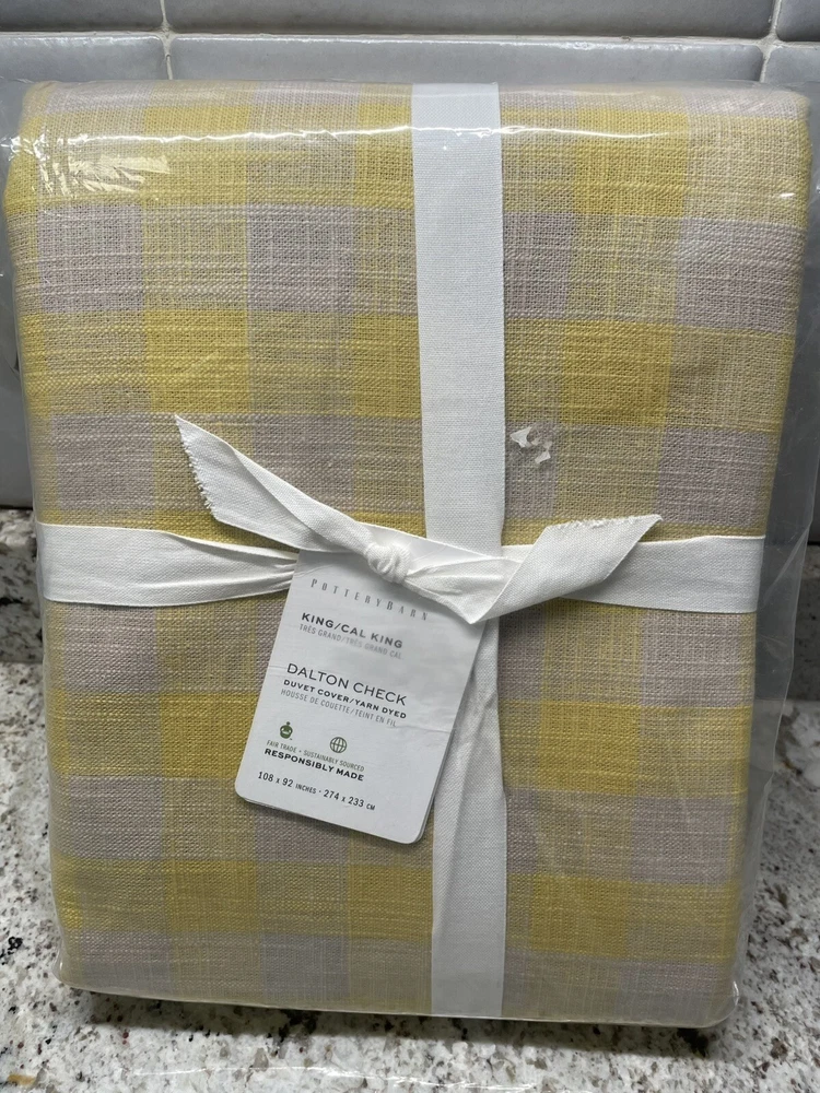 Elevate your bedroom decor with this luxurious Pottery Barn Dalton Check Duvet Cover. The buffalo check pattern in sunny yellow color adds a touch of farmhouse style to your room. Made from a cotton blend and linen blend, this rectangular shaped duvet cover is machine washable and tumble dry for easy care. This king size duvet cover measures 108 inches in length and 92 inches in width, perfect for a comfortable and cozy sleep. The duvet cover features a luxury theme and is suitable for teens and adults. The set includes one duvet cover and two euro shams. Bring a touch of elegance to your room with this Pottery Barn Dalton Check Duvet Cover.