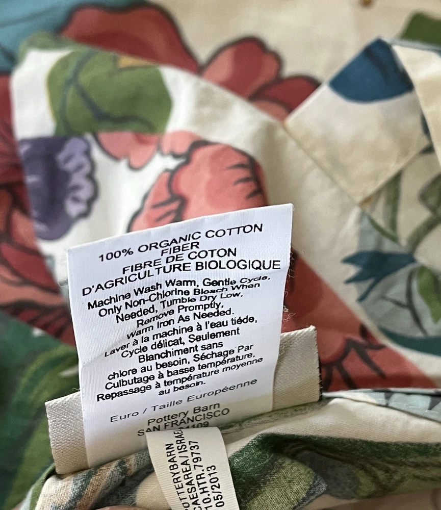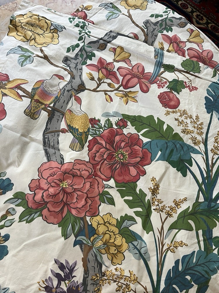 Gorgeous print! Two very large euro shams in retired print. Birds, flowers, pomegranates! These shams have an oriental/tropical feel. EUC