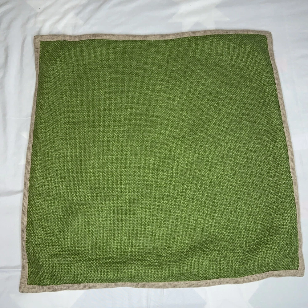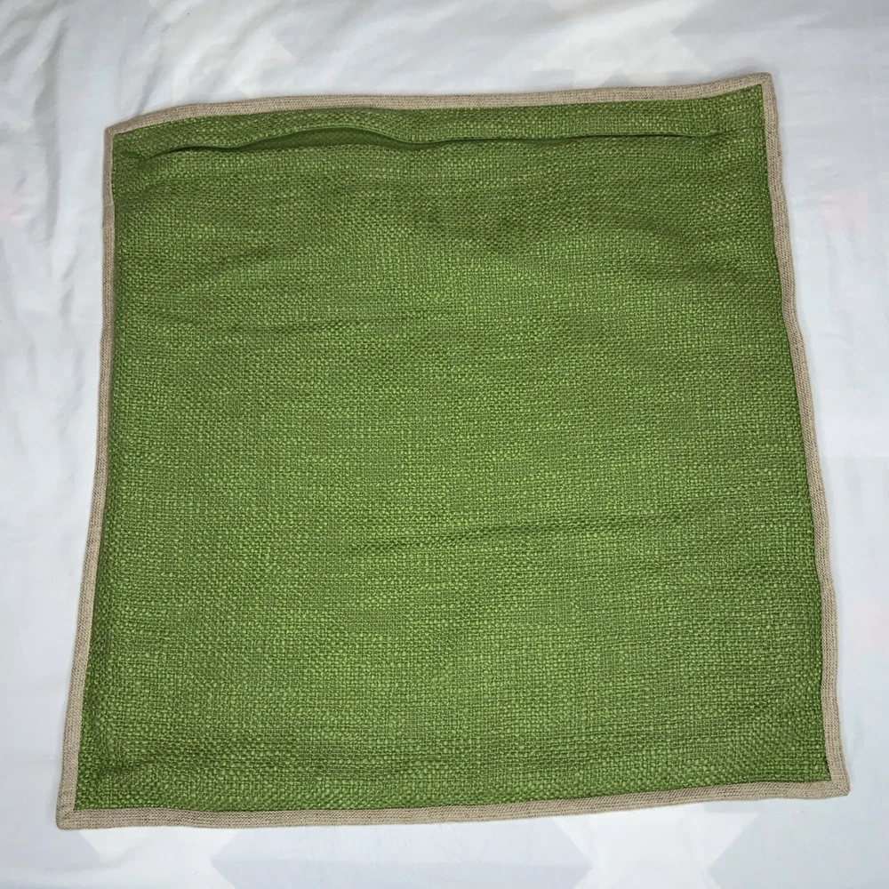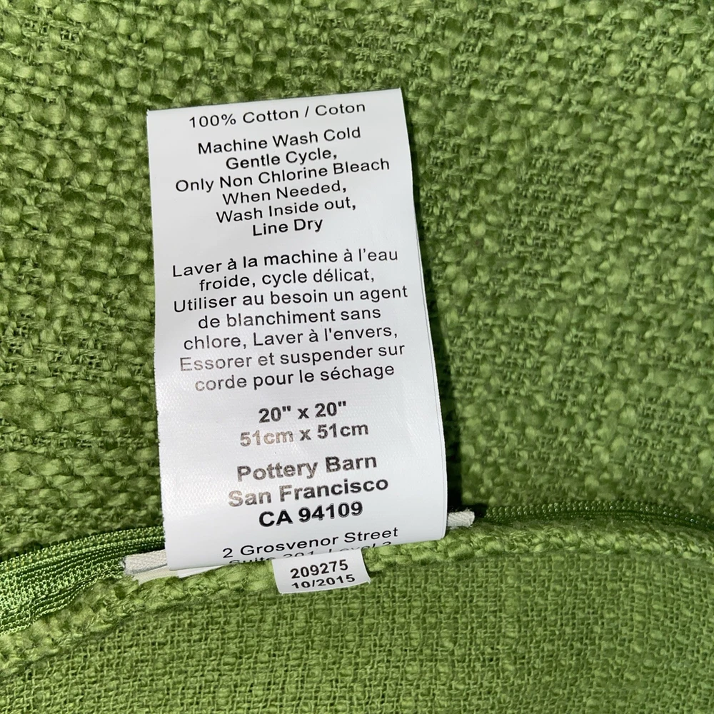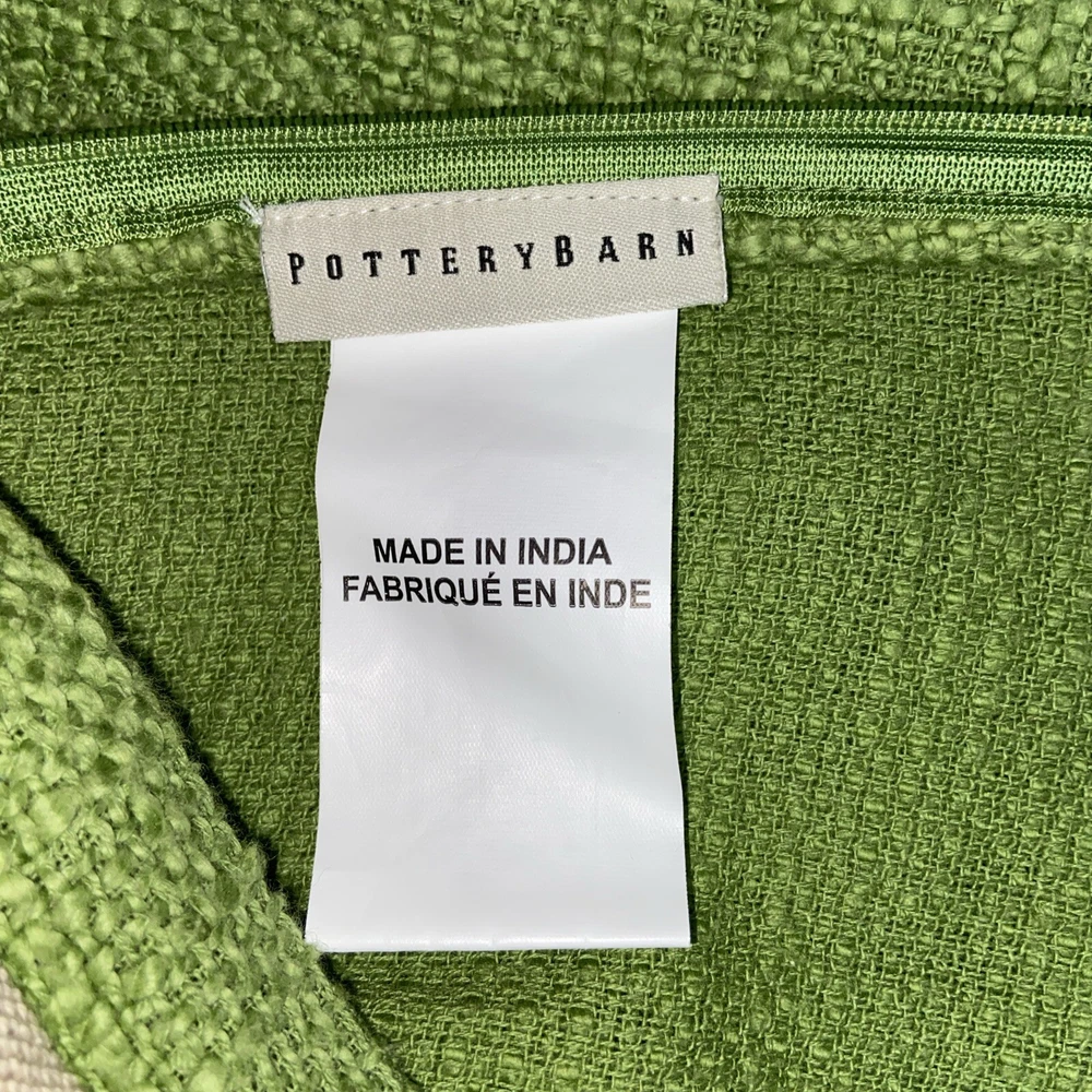 Pottery Barn Green Cotton Woven Textured Throw Pillow Cover Only 20x20” Tan Trim