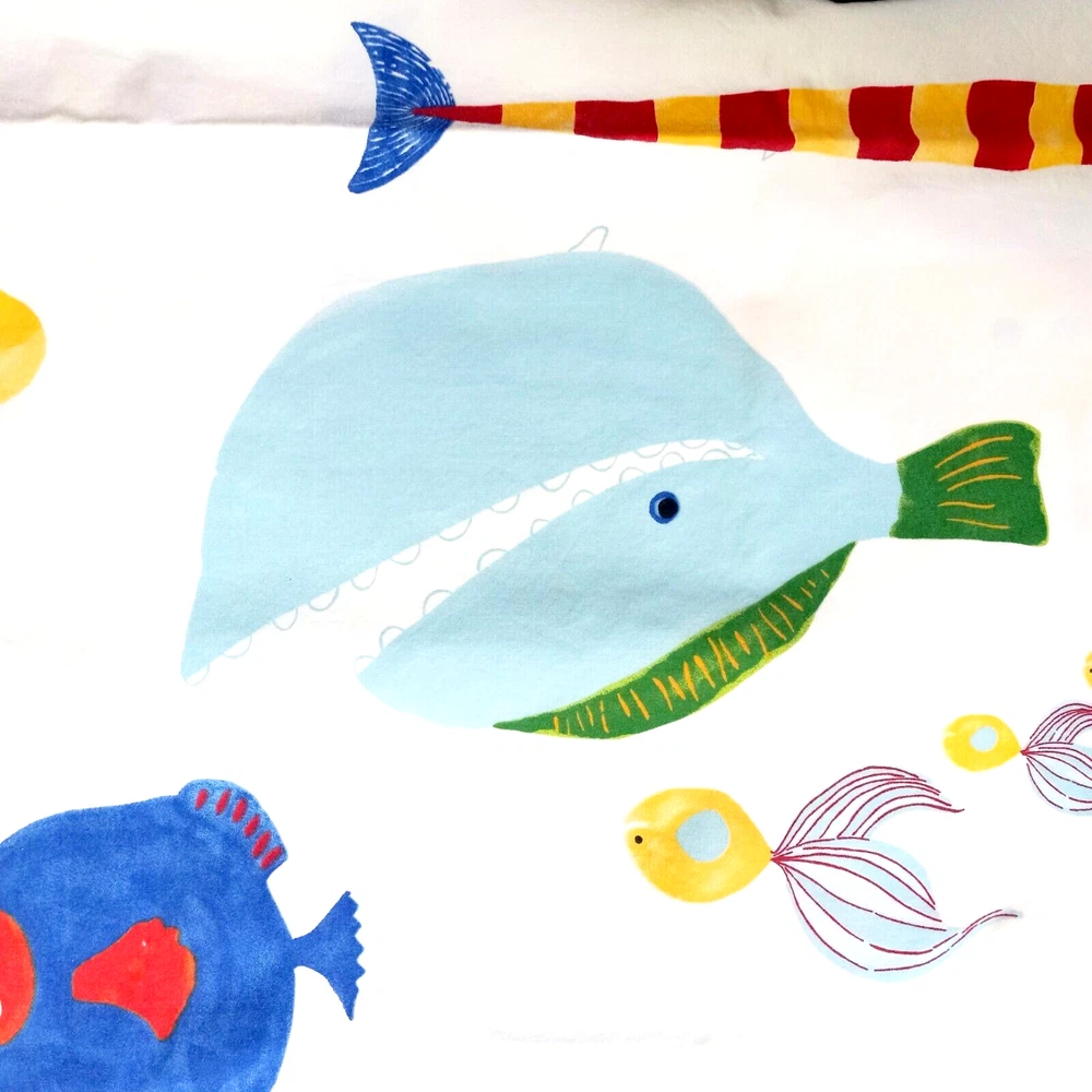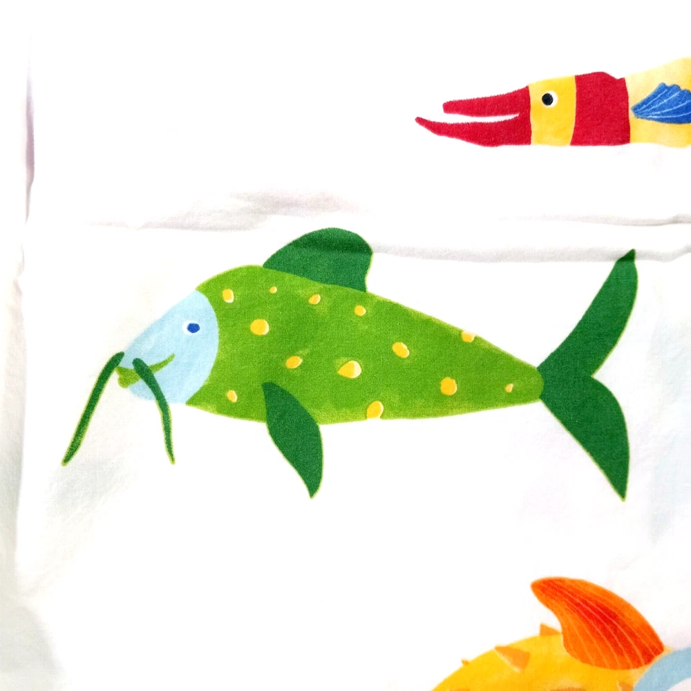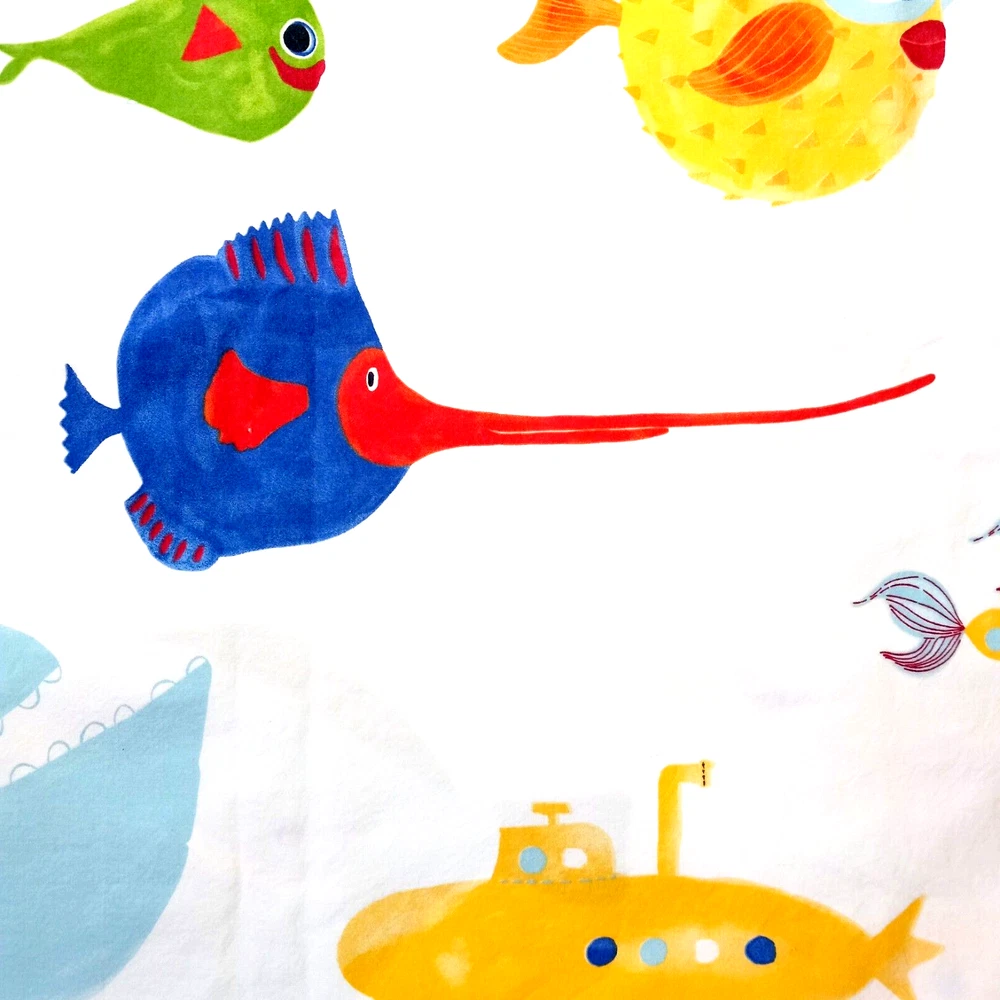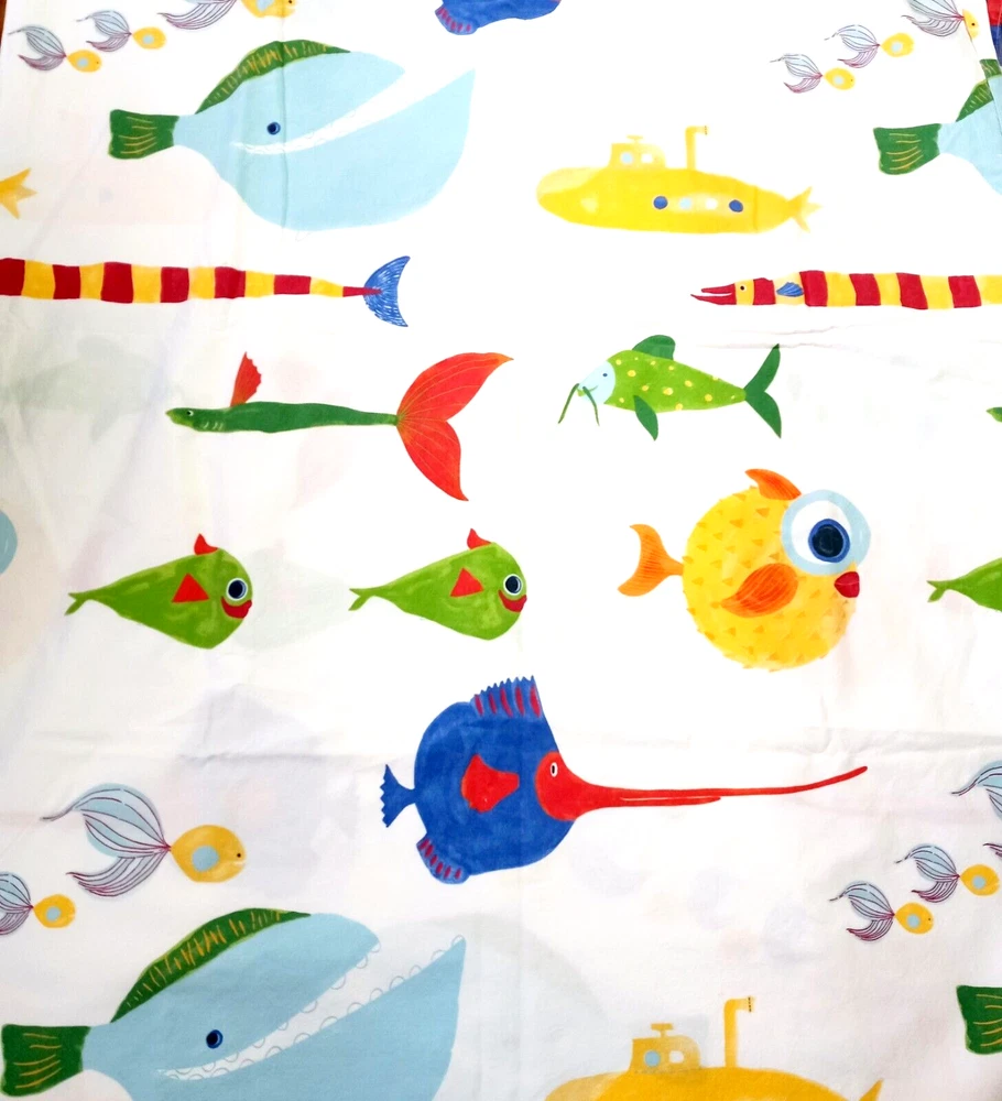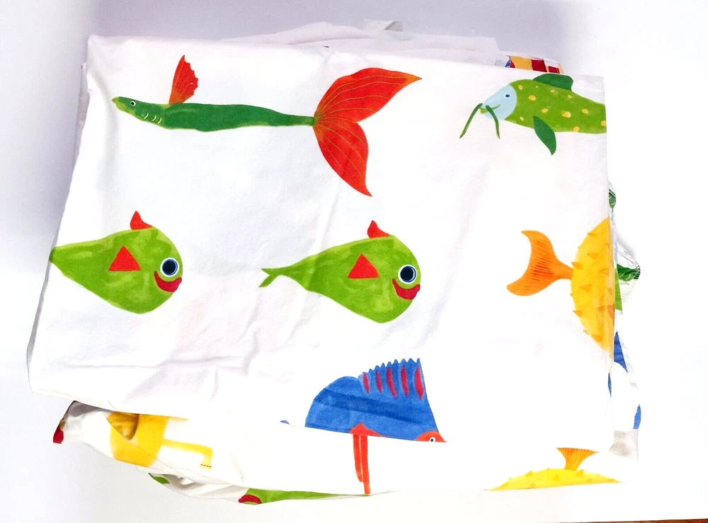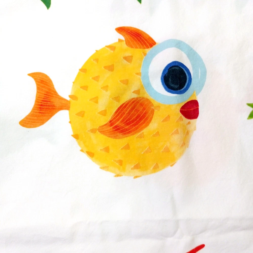 2 sheet Sets Transform your child's bedroom into an ocean paradise with this Pottery Barn Kids twin sheet set. Made of 100% organic cotton, the set includes a fitted sheet and a flat sheet, both adorned with beautiful illustrations of sea creatures. The multicolor design is perfect for kids who love the theme of sea life, and the fish character family adds a playful touch to the room. The set is ideal for parents who want to provide their children with a comfortable and stylish sleep environment. The Pottery Barn brand guarantees quality and durability, ensuring that the sheets will last for a long time. Bring the magic of the sea to your child's bedroom with this charming twin sheet set. No Pillowcases