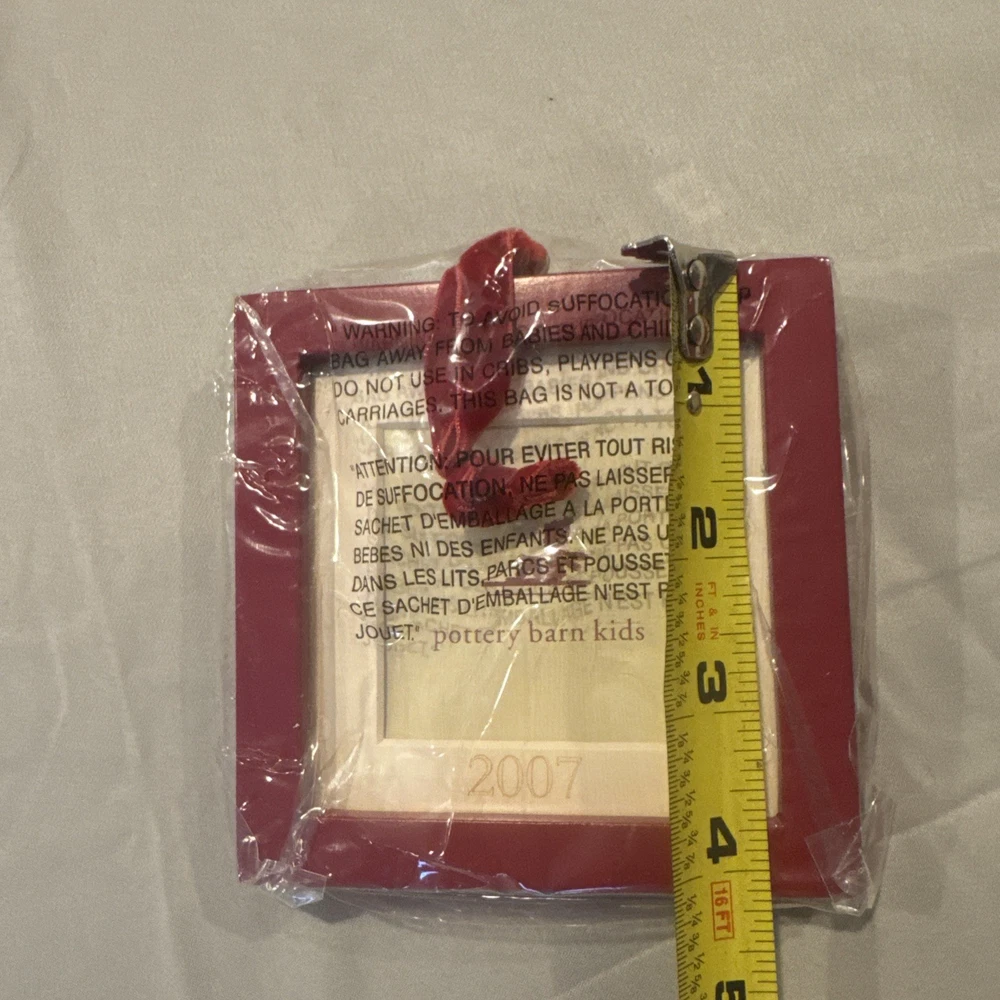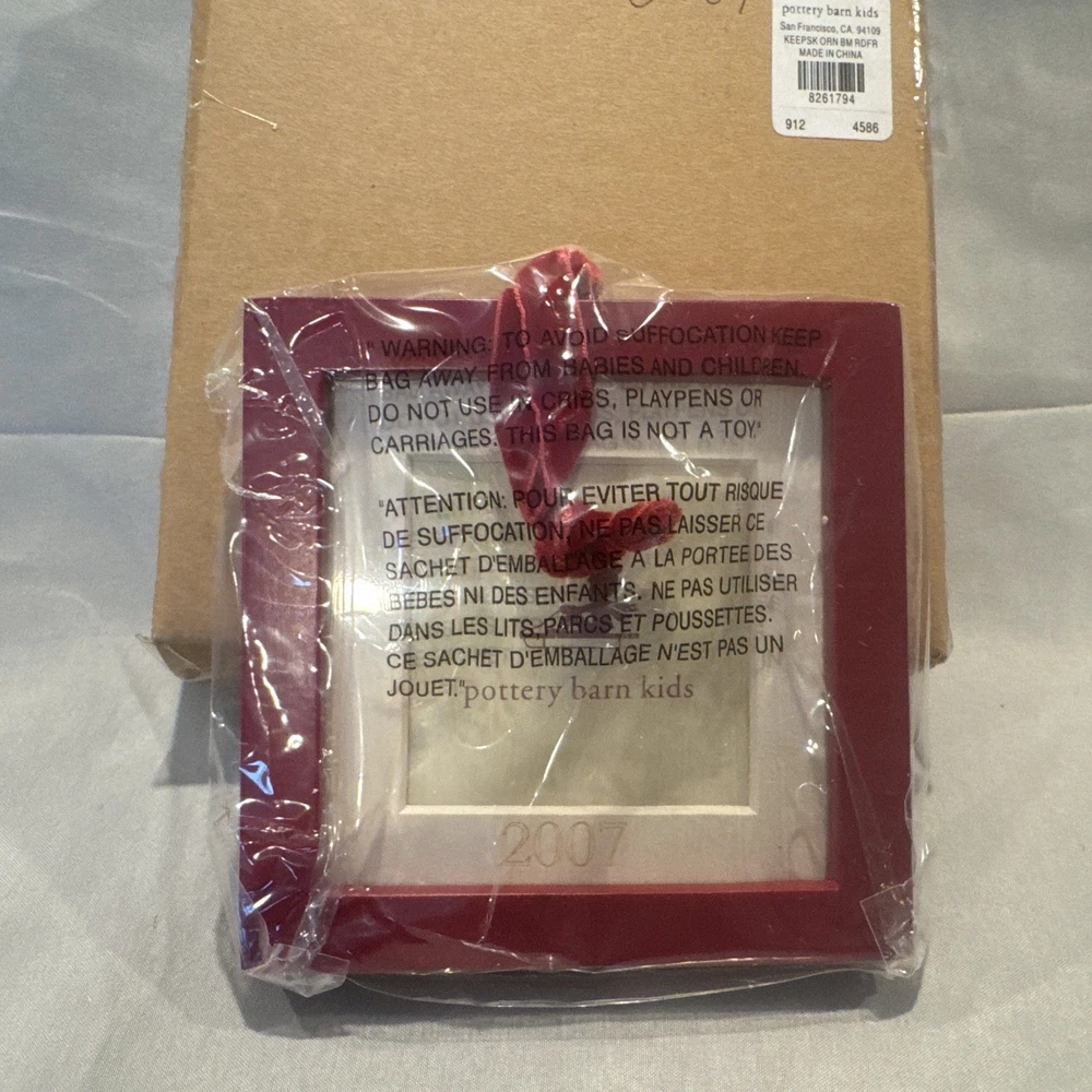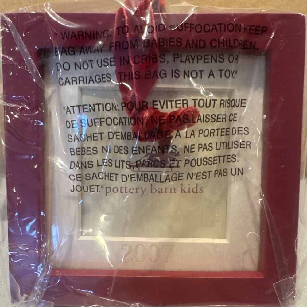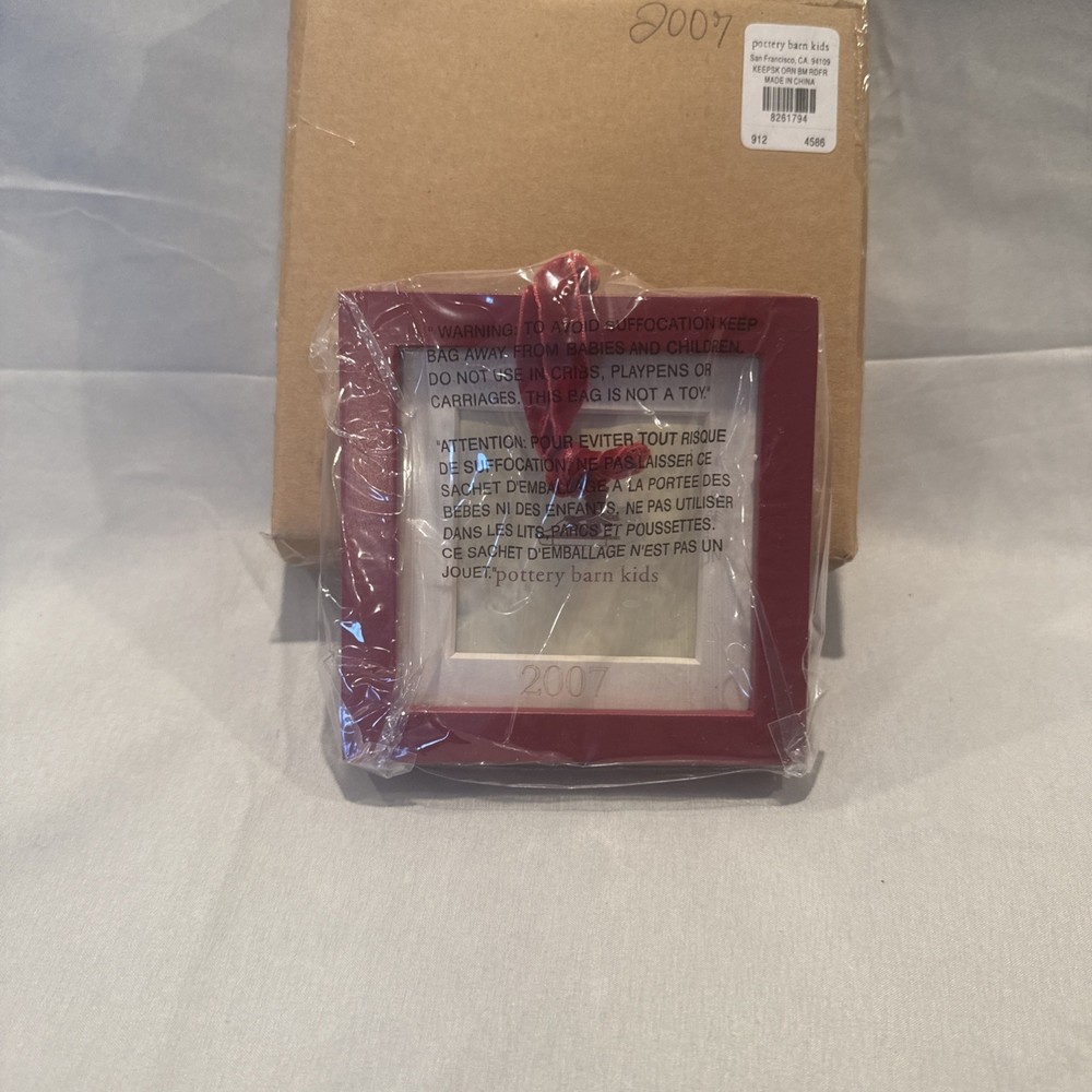 Craft a memorable holiday display with the Pottery Barn Kids Ornament Photo Frame from 2007. This charming red, square-shaped ornament is perfect for showcasing a cherished child's photo, making it a warm and personalized addition to your festive decor. Ideal for both contemporary and traditional settings, this Pottery Barn creation seamlessly blends with a variety of holiday themes. Create a unique and loving seasonal scene by incorporating this delightful ornament into your holiday collection. New in original packaging. Never been used. Excellent condition. No cracks or damages. Please check the pictures carefully as part of the description. Feel free to ask questions if you need more information before you buy it. Thank you for your interest D-1