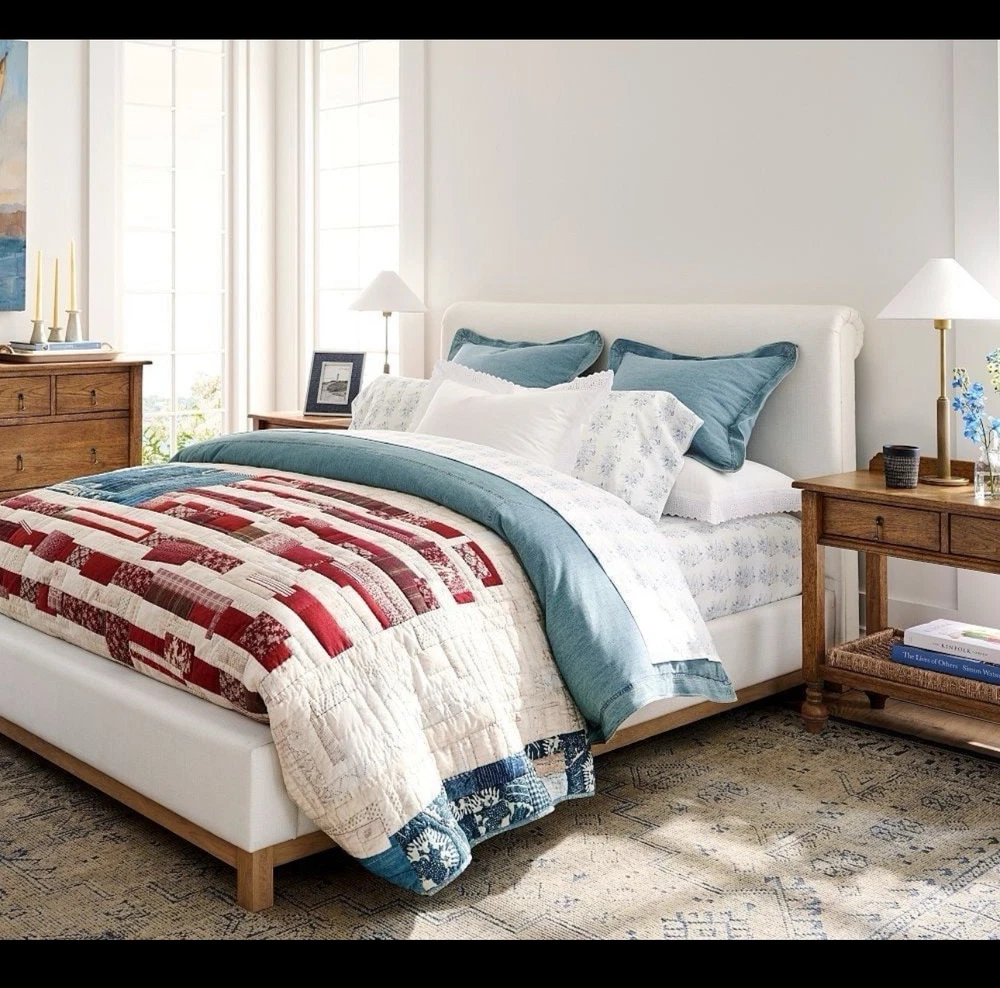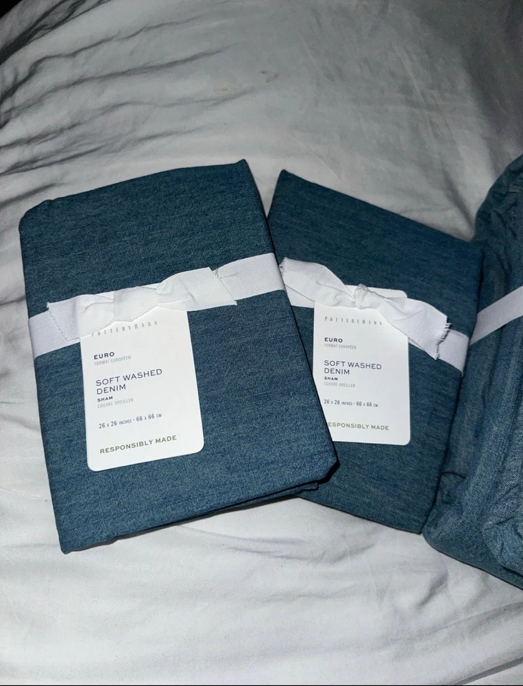 This is a king / California king size duvet 2 euro shams Brand new There are so many reasons to love denim. And just like your favorite jeans, its appeal goes far beyond a casual, relaxed look. The neutral blue hue blends seamlessly with various color palettes and patterns, providing a versatile base that's made for layering, making it one of our go-to favorites. PRODUCT DETAILS collapse CONSTRUCTION Made of 100% cotton. Duvet features a button closure with inner ties that keep insert in place; sham features an overlap closure.