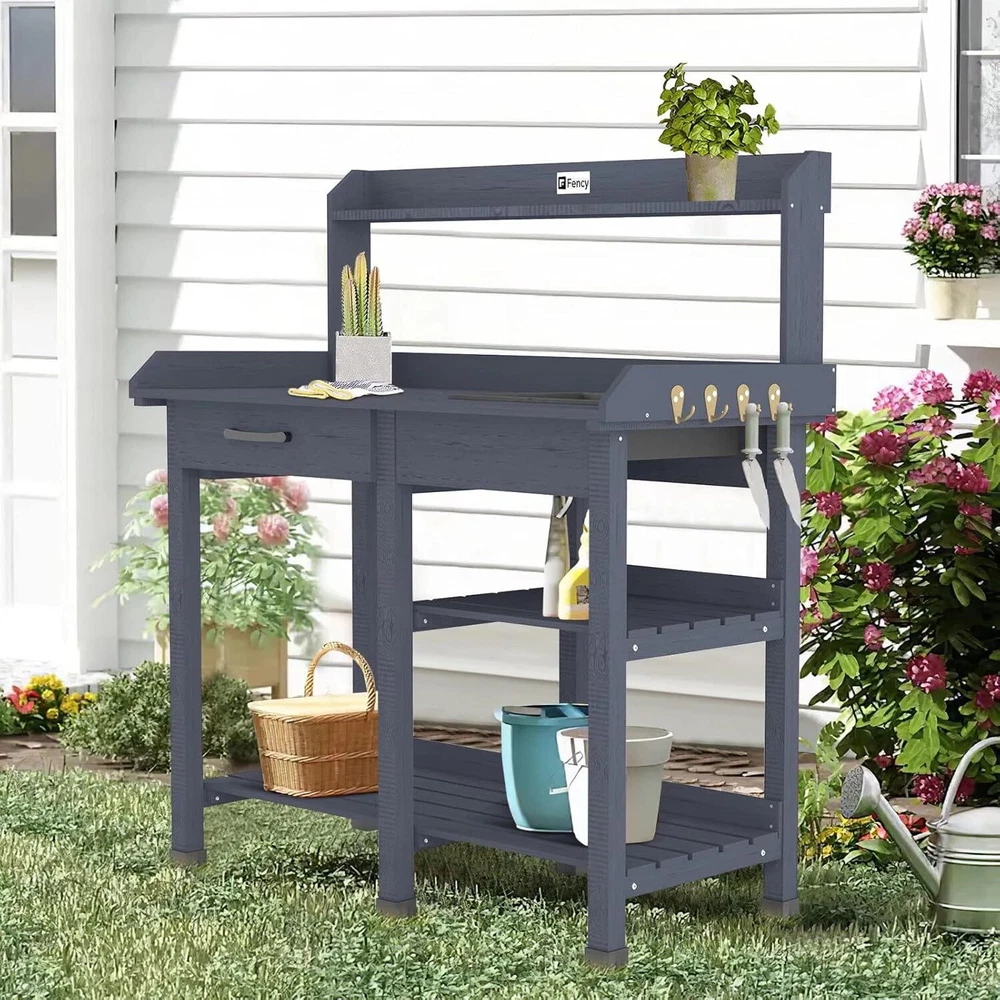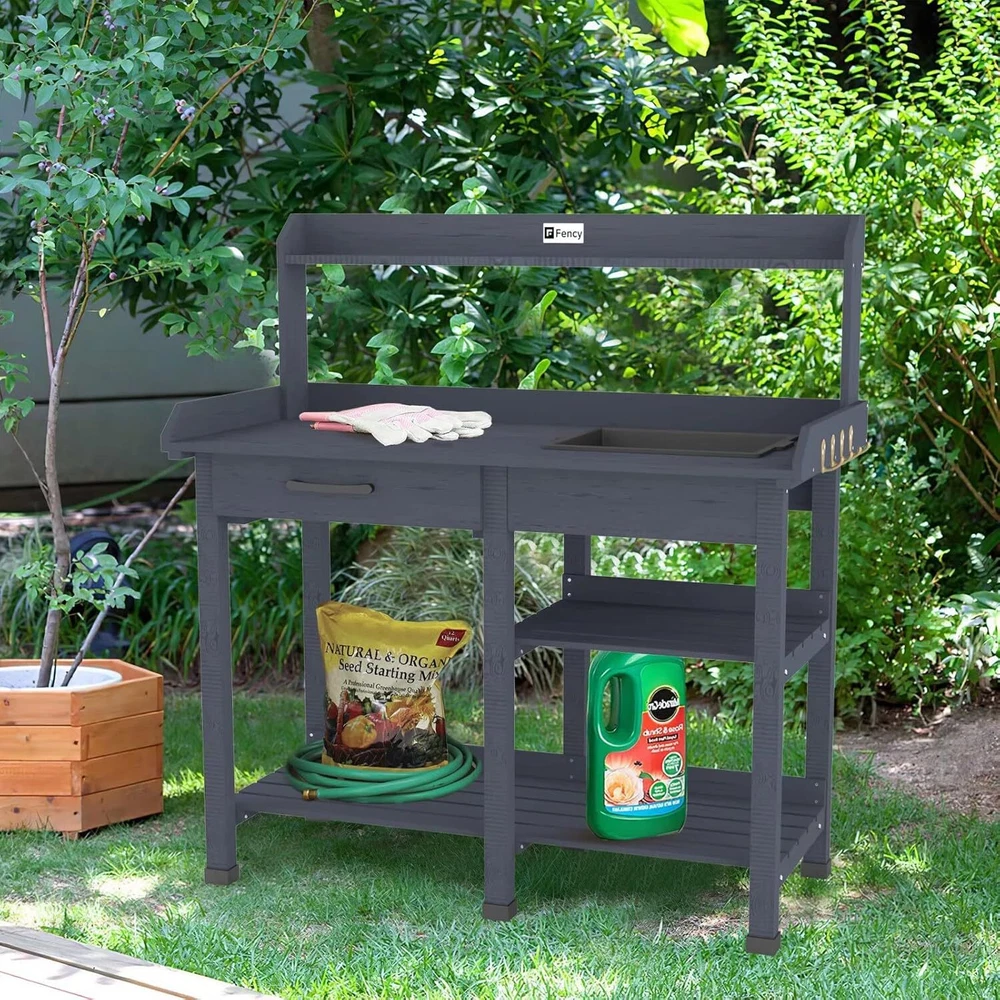 Potting Bench Tables Outdoor, Potting table with Sink Garden Work Station Pla... Dimensions: 45.3*17.8*47.7 in; Can hold up to 100kg. It’s made from 101% fir wood, that makes the potting bench sturdy and durable. And it also can withstand the bad weather. Gardening Organizer: Galvanized metal tabletop provides you with a plenty working space and easy to keep clean; upper storage drawer and 2 tiers open shelves allow you to reach your frequently-used gardening tools at hand; The lockable cabinet can store your seeds, fertilizer and other gardening supplies. Highlights: Strong metal hooks are handy for hanging gardening tools and bags. Two wheels are flexible for you to move it indoor and outdoor. Comes with 5 foot covers, good for sliding resistant and avoiding your floor from scratching. Functional Design: Use it as a potting workstation, you will get a practical garden assistant. Use it as a hallway stand or outdoor furniture in patio or balcony, you can display your favorite plants, handcrafts and photo frames. Use it as a storage shelf, you can keep all your gardening equipment tidy and organized. What You Get: Flat packed potting bench table accessories and step by ste Shipping We offer FREE shipping on all orders! We ship within Three business days of payment, usually sooner. We use a selection of shipping services such as UPS, FedEx, USPS etc. We only ship to the lower 48 states, no APO/FPO addresses or PO Boxes allowed. Local pickups and combined shipping options are not provided at this time. Return You can return a product for up to 30 days from the date you purchased it. Any product you return must be in the same condition you received it and in the original packaging. Please keep the receipt. Customer satisfaction is very important to us. If you have any problem with your order, please contact us and we will do our best to make you satisfied. Contact Us If you have any queries, please contact us via ebay. We usually respond within 24 hours on weekdays. Please visit our eBay store to check out other items for sale! Thank you for shopping at our store.
