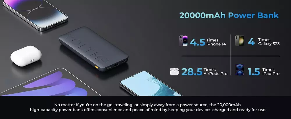 Free and fast shipping , shipping take up 1-7 Business Days 30 Day Return Accepted EASY PAYMENT via PayPal, Credit Card, PayPal Credit, Google Pay... Power Bank 20000mah Mobile Phone Plastic Medium Multicolor 2-usb 5v Backup 20w Brazilian buyers Note: There is NO DDP for this product, You did not pay taxes in advance for this product! You will be responsible for the customs duties by default after purchasing! We are not responsible for everything due to tariff issues! 1. Brazilian Duty = (Customs Tax) + (ICMS Tax) two parts; there is no (Customs Tax) under 50 US dollars, but! Need to pay (ICMS Tax) 2. The tax payment processing cycle is 20 days. Please process the tax payment in time to avoid the customs abandonment and destruction of parcels due to overdue packages. 3. Brazilian buyers can log in to the official postal website online to pay taxes: https://www.correios.com.br/ South Korea buyers Note: 1.South Korea you must fill in your personal customs clearance number. Example: P00000000000 (P+12 digits). Foreigners can use the alien registration card number and passport number; after the application is completed, you will get one with: P+12 A customs clearance code such as a single digit 2.Please send your customs clearance code to the seller dialog box Hypercore 10K Size: 106*68*16mm Battery Capacity: 10000mAh (3.85V*10000mAh=38.5Wh) Rated Capacity: 6000mAh (5V 3A Output) Input: ● USB-C: 5V 3A / 9V 2A (18W max) Output: ● USB-C: 5V 3A / 9V 2.22A / 12V 1.67A (20W max) ● USB-A: 4.5V 5A / 5V 4.5A / 9V 2A / 12V 1.5A (22.5W max) ● C+A: 5V 3A (15W max) Hypercore 20K Size: 158*74*19mm Battery Capacity: 20000mAh (3.7V*20000mAh=74Wh) Rated Capacity: 12000mAh (5V 3A Output) Input: ● USB-C: 5V 3A / 9V 2A (18W max) Output: ● USB-C: 5V 3A / 9V 2.22A / 12V 1.67A (20W max) ● USB-A: 4.5V 5A / 5V 4.5A / 9V 2A / 12V 1.5A (22.5W max) ● C+A:5V 3A (15W max) Simultaneous 2-Device Charge Equipped with one 20W PD USB-C port and one 22.5W QC USB-A port to ensure you can charge your laptop and phone at top speeds simultaneously. Note: Simultaneous charging may affect charging speed. 20000mAh Capacity The massive 20,000mAh cell capacity provides: 4.5 charges for iPhone 14 4 charges for Samsung Galaxy S23 1.5 charges for iPad Pro 28.5 charges for Airpods Pro Advanced Charging Technology VOLTME'S exclusive V-Dynamic technology to deliver an safer efficient charge to your devices What You Get 1 x 20000mAh Portable Chargers 1 x USB-C to USB-C Cable 1 x User Manual 1 x Thanks card 1 x packaging box REVIEWS The product came very well packaged. I'm very happy. thank you for everything. Seller strongly recommended. This is great! I definitely recommend! Product looks amazing Delivery was fast. Excellent seller, great communication. I advise everyone to buy it!