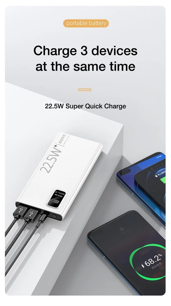 Free and fast shipping , shipping take up 1-7 Business Days 30 Day Return Accepted EASY PAYMENT via PayPal, Credit Card, PayPal Credit, Google Pay... Power Bank 20000mah Mobile Phone Plastic Small Multicolor 2-usb 5v Backup 10000mAh Portable Power Bank 20000mah 22.5W 10W USB Type-C Fast Charging External Auxiliary Battery Powerbank for iPhone 14 13 Samsung Xiaomi HUAWEI features Battery capacity: 10000mAh/20000mAh Rated capacity: 6000mah/12000mah 22.5W style input Type-C input:18W micro input:10W output Type-C output:18W 2*USB A output:22.5W REVIEWS The product came very well packaged. I'm very happy. thank you for everything. Seller strongly recommended. This is great! I definitely recommend! Product looks amazing Delivery was fast. Excellent seller, great communication. I advise everyone to buy it!