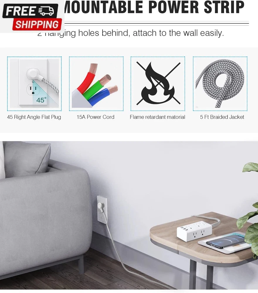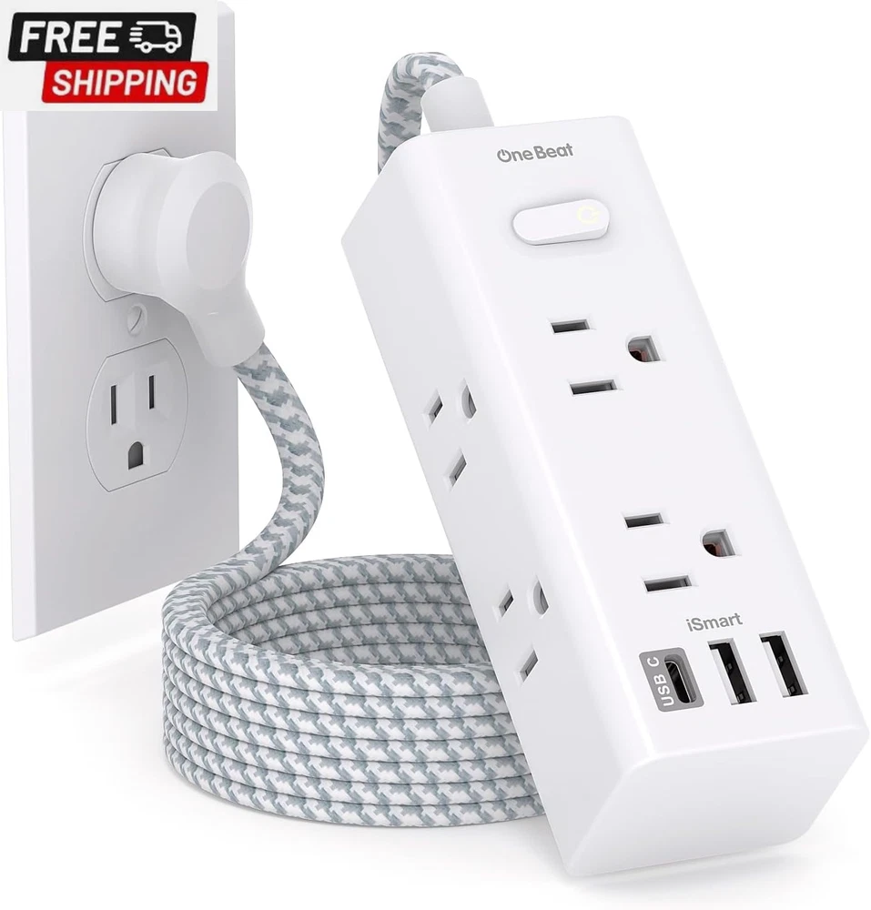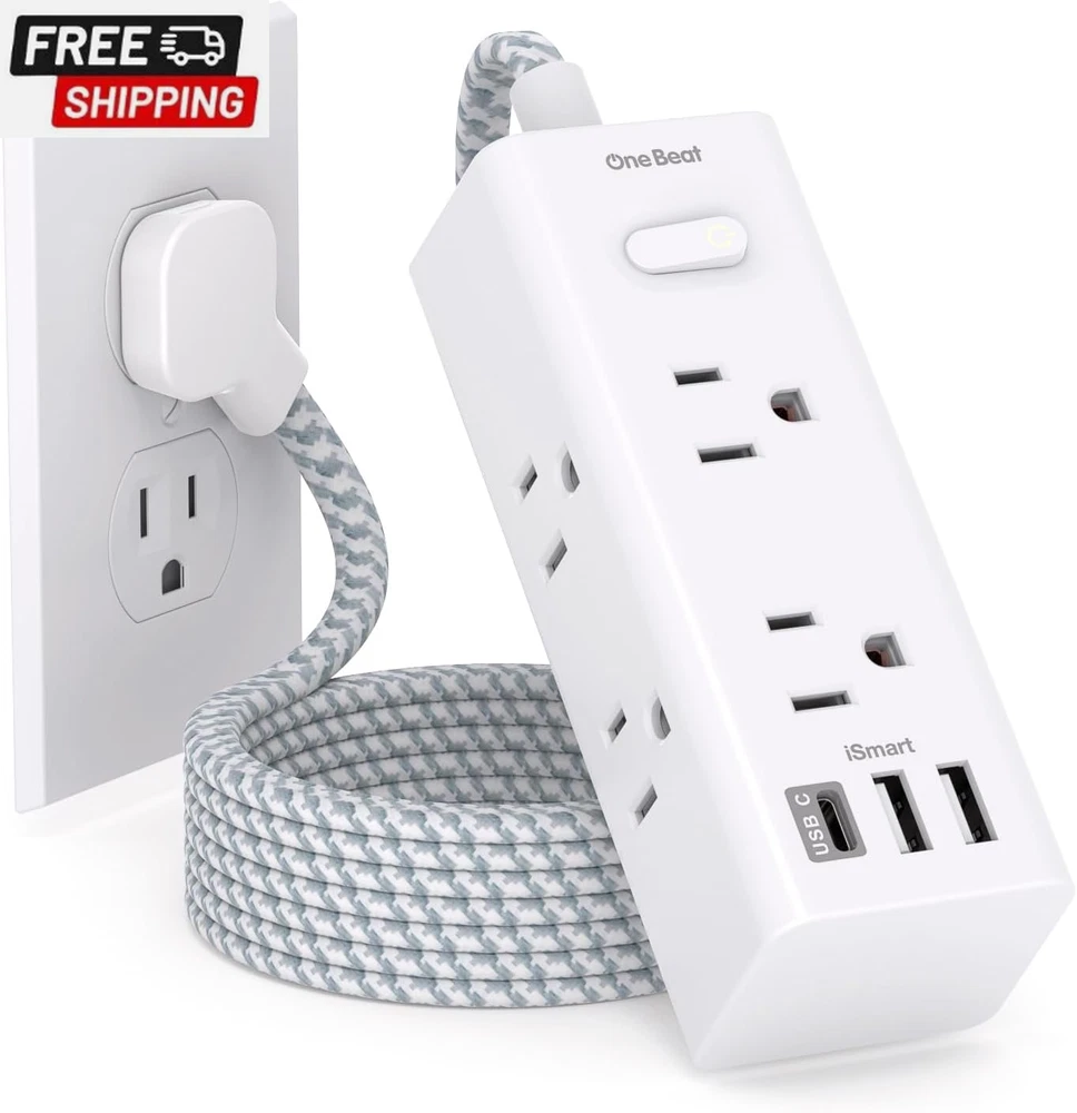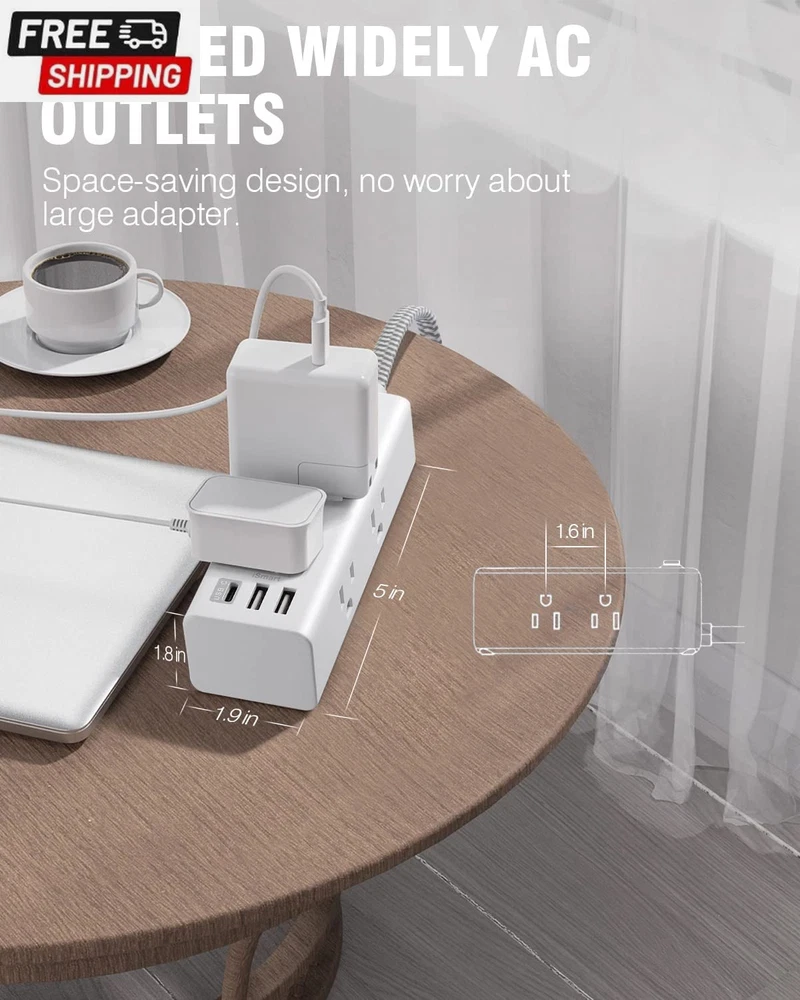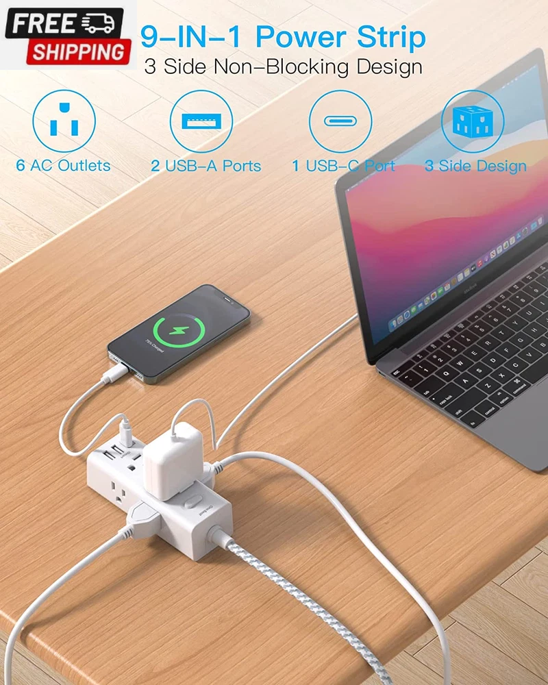 Fast Shipping On All Items 30 Days Money Guarantee Customer Support Excellent Service 100% Satisfaction Satisfaction Guaranteed Power Strip Surge Protector - 6 Widely Outlets with 3 USB Ports (1 USB C), 3-Side Outlet Extender Strip, 5 Ft Extension Cord Flat Plug, Wall Mount Small Power Strip for Travel Home Office College Dorm Specification Item model number OB6W3C Style 0.67“ Flat Plug Color Grey Product Dimensions 5 x 1.9 x 0.04 inches Country of Origin China Item Weight 11.8 ounces Total Power Outlets 9 Voltage 125 Volts Special Feature USB C Slot, On And Off Switch, Surge Protection, Mountable, Usb Slot Size 5FT 1.9 inches x 5.0 inches x 0.04 inches. Weight: 11.8 oz Item Description 【9-IN-1 Desktop Power Strip with USB C Fast Charge】— With 6 AC outlets, 2 USB ports and 1 USB C power strip, power up 9 devices simultaneously. USB C charging port features 3A Max, USB A charging port features 2.4A Max, With smart charging technology, it can auto-detect your connected devices and can reach faster-charging efficiency, which would charge your devices WITHOUT a variety of converters. 【3 Side Space Saving Design & Widely Space Outlets】— 3-side design and each AC outlets with 1.6 inches space in between, larger than standard 1.5-inch socket, fit big adapters without blocking each other. The compact size (5.0*1.9*1.8 IN) takes up less space on your desk or luggege, essential for the travel, home, office, and college dorm. 【Wall Mountable Extension Cord with Flat Plug】— The low-profile flat plug fits easily in tight spaces; and the right angle flat plug design prevents bottom plug blocking; the 5ft upgraded power cord is very thick and has better current carrying capacity (13A); the two mounting holes on back allows this power strip to be securely installed in various applications. 【Overload Surge Protection 】 — Features 900 Joules surge protector outlets. Lighted on/off switch with integrated circuit breaker for overload protection of all outlets, It will automatically cut power to protect connected devices when voltage surge is overwhelming. (The "Surge Protected” indicator light on to show your devices are protected). 【Multi Safety Protection】— This travel power strip certified by ROHs, FC, ETL, protected against over-voltage, over-current, over-charge, short-circuiting, over-heating. Fire-resistance PC shell with flame retardant at 1382℉ makes it more durable and longer lifetime. Product Description 9-IN-1 USB C Power Strip for Home, Office, Travel - 6 AC outlets and 3 USB charging ports ( 1 USB C ) provide power and charging for up to 9 devices from a single wall charging unit. - 3 Side Compact Design , take less space and charging more devices without blocking. - 5 Ft heavy duty extension cord with low-profile flat plug, great for stashing under or behind furniture. - 2 keyholes on the back, easily mount this flat extension cord onto the wall. Why choose us? In order to build a brand that is worthy of everyone's trust, make it famous for its excellent products. We carefully investigate the needs of consumers and strive to make our product better match customers' needs. We collect many customer needs and user feedbacks to improve our multiple outlet plug extender.You can find many user-friendly designs on our products. Wall Mountable Power Strip 6 Outlets Power Strip with 3 USB Charging Ports This power strip can support 9 devices simultaneously. 3 side space-saving design and compact size, ideal for small and tight place, great for home, office and travel use. It also with 2 holes on back, easy to mount it everywhere. Most devices and home appliances can be connected. Compatible with 100~240V worldwide voltage, meaning you could use it while traveling overseas together with a travel plug. However, it's NOT a voltage converter and your device needs to support 100-240V as well. 3 Side Space-saving & 1.6 Inch Widely AC Outlets 6 AC Outlet + 2 USB-A + 1 USB-C Ports 5 Ft Braided Upgrated Power Cord Multi Safety Certificate & 900J Surge Protection 45° Right Angle Low Profile Flat Plug Specification Power Rating 125V 60HZ 15A Maximum Power 1875W MAX Surge Protector Rating 900 Joules Length of Cable 5 Ft/1.5m USB C OUTPUT 5V/3A MAX USB A OUTPUT 5V/2.4A MAX USB OUTPUT 5V/3.1A TOTAL Safety Protection ETL List, FCC, RoHs 3 Side Non-blocking Design The unique 3 sided space saving design and 6 widely spaced ac outlets are separated enough to fit big plugs without blocking each other, easily plug in your PC, TV, more. USB-C High Speed Charging USB Total Output 3.1A, Built-in SMART IC with Super change technology intelligently detects your device to deliver its fastest possible charge speed up to 2.4A. USB-C port can up to 5V/3A. The USB-A charging is NOT Fast Charge QC 3.0, It can meet most USB devices charging needs. Overload Protection Features 900-Joule surge protection, overload protection, and much more to keep you and your devices safe. Multiple safety protection can prevent your electric devices from over-current/over-charge/short circuit/over-heated. Fireproof Material Fire-resistance PC shell with flame retardance at 1382℉ makes it more durable and longer lifetime. Attach Anywhere Designed with a right angled slimmer flat plug than other power strips, perfect for hard-to-reach outlets tucked away behind your bed or sofa. Upgraded Braided Extension Cord 15A heavy duty cord 5 ft to provide up to 1875W, compatible with higher power of most devices. The braided design makes it tangle-free and more flexible, elegant, durable and hard-wearing. About us We offer the best prices around on high quality products. Our E-store includes media such as books, movies, music and games while offering electronics, toys, sporting apparel, clothing, tools, general home, garden items and more. Shipping We are always working hard to ensure your package arrives as soon as possible. Please understand that some factors like weather, high postal traffic, and the performance of shipp