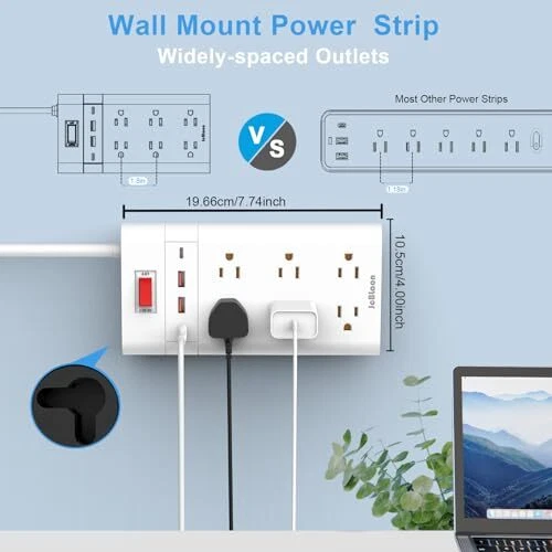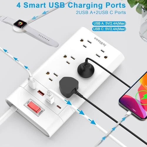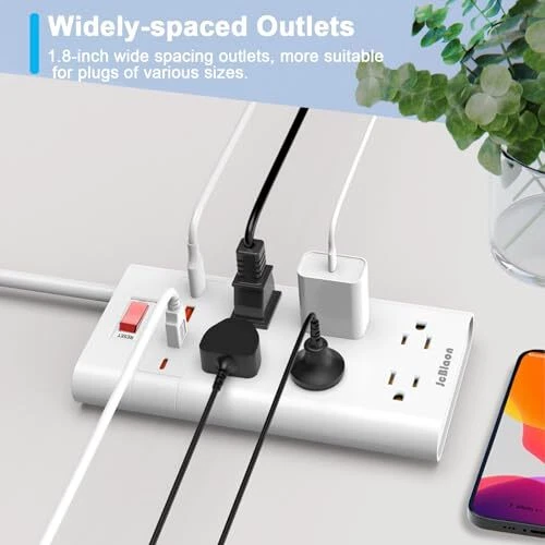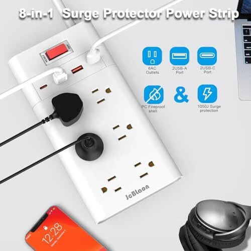 Menu 1. We require immediate payment. 2. We currently accept payment via eBay managed payments only. 3. Once payment is cleared, we will dispatch your shipment within 1-3 business days. Please refer to the "Shipping" tab for more information regarding shipping speed to your destination. Power Strip Surge Protector, JcBlaon 6 Widely-Spaced Outlets with 4 USB Ports (2 USB C), Ultra Thin Flat Plug Extension Cord, Wall Mountable, 4ft for Office Kitchen, 1050J, ETL Listed (White) Product description 【Power Strip with USB Ports】This power strip turns a regular wall outlet into 6 grounded AC outlets plus 4 USB charging ports (2 USB C), which eliminates the need for multiple chargers and saves money & desktop space for you. Maximum 2.4A output for each USB port. 2 Type-C ports are compatible with more new devices. such as phones, watch, tablet, earphone, etc. 【Widely Spaced Power Strip】This surge protector power strip has 6 widely spaced AC outlets. Larger space in-between (1.8 in vs. 1.18 in on regular power strips) can accommodate larger power adapters without blocking adjacent outlets. Easily plug in your PC, monitor, printer, etc. 【Flat Plug Power Strip】Our surge protector power strip with a 0.47" low-profile flat wall plug that is much thinner than traditional plugs, easily fits in tight spaces behind furniture, sofas, and beds, and is designed with a 45° right angle thin flat plug, it will not block the bottom receptacle of your duplex wall outlet, frees up the receptacles for other uses 【1050 Joules Surge Protection】The power strip flat plug is inbuilt with 1050J surge protection, protecting your devices from power surges caused by lightning strikes. With a 1380℉ flame-retardant cg, circuit breaker switch and multiple safety features against overload, short-circuit, over-current, over-voltage, and overheating, keep your home and connected devices safe. 【Mountable & ON/OFF Switch】This mountable power strip comes with 2 mounting holes on the reverse side which allow you securely mount the black power strip on the wall, under the desk or workbench. Lighted ON/OFF switch with the integrated circuit breaker for overload protection of all outlets, it will automatically cut power to protect connected devices if the power load exceeds 1250W. PLEASE MESSAGE US IF YOU HAVE ANY OTHER QUESTIONS, AND MANY THANKS FOR READING ALL OF THIS. Copyright ©#. All Rights Reserved.