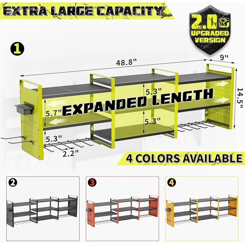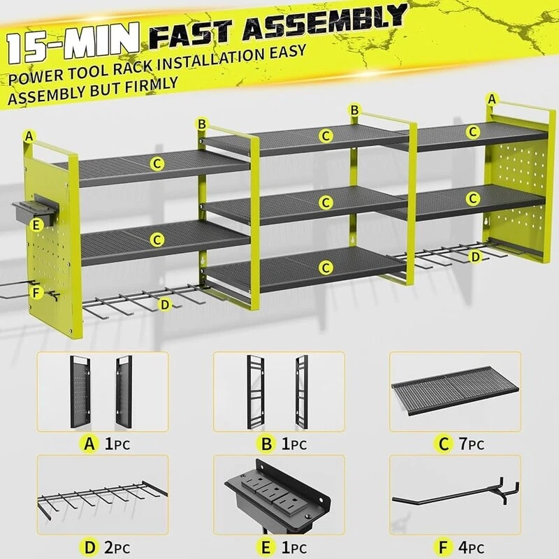 You may also like Garage Tool Organizer Wall Mount Heavy Duty Rack W/ 9 Hooks Adjustable Storage 42.73 USD 44.98 USD Free shipping 5% off 12 Employee Appreciation Gifts Tumblers Makeup Bags Pens Thank You Gifts Set New 83.11 USD 87.48 USD Free shipping 5% off Carbon Steel Frying Pan Beech Handle Glass Lid Induction Non-Stick Skillet New 94.98 USD 99.98 USD Free shipping 5% off Towel Warmer Bucket Spa Experience Customized Fragrance Auto Shut Off Heater New 100.92 USD 106.23 USD Free shipping 5% off Enameled Cast Iron Dutch Oven Pot W/ Lid Baking Stews Roasting Frying Cooking US 94.98 USD 99.98 USD Free shipping 5% off Nonstick Electric Griddle Cooking Surface Pancakes Tacos Temperature Control New 66.48 USD 69.98 USD Free shipping 5% off 3-Tier Shoe Rack Bench W/ Cushion Entryway Storage Organizer Durable Iron Frame 83.11 USD 87.48 USD Free shipping 5% off Stone Bath Mat Set Quick Dry Absorbent Non-Slip Kitchen Dish Drying Mat 2 Pack 42.73 USD 44.98 USD Free shipping 5% off 2 Pcs 11" Artificial Topiary Ball LED Light UV Fire Retardant Outdoor Decor New 94.98 USD 99.98 USD Free shipping 5% off Rolling Cleaning Tote Bag W/ Detachable Trolley & Multi Compartment Organizer US 85.42 USD 89.92 USD Free shipping 5% off Oversized Turkish Beach Towel Sandproof Quick Dry Portable Picnic Blanket Blue 42.73 USD 44.98 USD Free shipping 5% off Bamboo Dish Drying Rack 2-Tier Design Quick Drying Stone Mat Kitchen Setup New 42.73 USD 44.98 USD Free shipping 5% off About this item Expanded Width to Maximized Storage: The power tool organizer wall mount with charging station features a patented wide design in its 2 central shelves, perfect for storing more tools, especially longer items like chainsaws. Measuring 45. 6" wide, 16. 5" high, and 8. 7" deep, this sturdy and space-efficient power tool storage rack keeps your tools organized Versatile Garage Storage Rack: The top shelf holds heavy-duty tools like electric and miter saws, while the middle and lower shelves fit medium-sized items like chargers, batteries, and toolboxes. The 5. 4-inch side pegboard hooks keep hammers and screwdrivers organized and accessible. This wall-mounted garage organization saves floor space, transforming a cluttered area into an organized workspace. Note: Tools shown are for display only and are not included Stable Structure with High Load Capacity: Made from heavy-duty upgraded carbon steel, this wall-mounted tool organizer is strong, stable, and resistant to deformation, supporting up to 200 lbs (40 lbs per shelf). It features easy assembly with included Phillips screws and screwdriver for a hassle-free installation Power Tool Organizer with Charging Station: Position outlets on either side to keep your tools charged. The American-standard power strip (Output: 125V/12A/1500W) provides device protection, frees up top-shelf space, and clearly displays power status. Includes a 6. 56 ft power cord for easy setup Perfect Gifts for Men: This versatile tool organizer can be installed on pegboard, wood, concrete, or drywall, making it ideal for garages, tool rooms, workshops, and factories. Great Christmas and birthday gift for fathers, husbands, and DIY enthusiasts › Material: heavy-duty carbon steel Color: Green Special Feature: Extra Height Product Dimensions: 16. 93"D x 9. 84"W x 5. 51"H Shelf Type: Wall Mount You may also like Cordless Caulking Gun Battery Powered 21V Electric No Drip 4 Speed 300ml New 45.11 USD 47.48 USD Free shipping 5% off Carbon Fiber Nylon Filament 1.75mm PA6 CF 3D Printer Industrial Engineering 1kg 54.99 USD 57.88 USD Free shipping 5% off Portable Steam Sauna Home Spa Full Body Tent W/ 1500W Steamer Remote Chair New 78.95 USD 83.11 USD Free shipping 5% off Rechargeable Wall Mounted Lighted Makeup Mirror 10X Magnifying 3 Color Lights US 45.04 USD 47.41 USD Free shipping 5% off 15 In Cast Iron Skillet Nonstick Versatile Cookware Assist Handle Oven Safe New 56.32 USD 59.28 USD Free shipping 5% off Rechargeable Wall Mounted Makeup Mirror 8 Inch Dual Sided 1X 10X Dimmable Light 53.57 USD 56.39 USD Free shipping 5% off Simple Design Computer Writing Desk W/ Shelves Durable Compact Easy Assembly New 60.41 USD 63.59 USD Free shipping 5% off 2-Slice Toaster Extra Wide Slots Bagel Function Breakfast Kitchen Appliance New 27.92 USD 29.39 USD Free shipping 5% off 25Ft 10Gauge Heavy Duty Outdoor Extension Cord Waterproof Lighted End 15Amp SJTW 39.64 USD 41.73 USD Free shipping 5% off 1/4 Drive Impact Socket Set 56 Pieces SAE Metric 6 Point Cr-V Ratchet Extension 46.92 USD 49.39 USD Free shipping 5% off Indoor Panini Press Grill Nonstick Sandwich Maker Easy Clean Healthy Cooking New 27.49 USD 28.94 USD Free shipping 5% off 1500W 6.2Qt Air Fryer 8-in-1 Multi-Function Presets Healthy Low-Oil Cooking New 83.11 USD 87.48 USD Free shipping 5% off