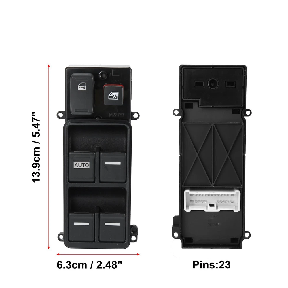 Document Description:Direct replace your broken window switch, please confirm your car model and part number before purchasing.Made of plastic material, not easy to crack with long service life.Please allow 1-2cm differences due to manual measurement.This is a non-OEM product, accessory only!Specifications:Color: BlackMaterial: PlasticOE Number: 35750-SDA-H12Pin Number: 23Size: 13.9x6.3x5.9cm / 5.47"x2.48"x2.32"(L*W*H)Fitment:Fit for Honda Accord 2.4L 2003-2007Installation Steps:Firstly confirm your vehicle must be cutting off the power.Use a skid to pry the old switch out carefully.Pull out the plug from the old switch.Connect the new switch to the wiring harness.Finally, install it into the bezel bracket.Note:Please confirm the OE number, model, and year match your vehicle. Please confirm the pin number and position are the same as the original switch.Please install with power off of the battery, if it stops working after a period of work, you need to reoperate the steps again.This product needs to be installed with the power cut off. Installation in a charged status may damage the circuit and cause it not to work. Package Includes: 1 x Car Power Window Switch1 x Removal ToolWindow button does not work processing method:If the newly installed switch button does not work most likely because the vehicle still recognizes the old switch, the following operations are required.1. Press the left front door button (ie the button that controls the driver's seat window) down to the bottom and stay for 5~8 seconds.2. When the button is lowered for 5~8 seconds, please push the button up to the end and stay for 5~8 seconds, then turn off the vehicle and restart the vehicle to complete the match.Note: Please pay attention to the mating plug before installing the switch, and clean the excess dust. Power Window Master Control Switch 35750-SDA-H12 for Honda Accord 2003-07 Description: Direct replace your broken window switch, please confirm your car model and part number before purchasing. Made of plastic material, not easy to crack with long service life. Please allow 1-2cm differences due to manual measurement. This is a non-OEM product, accessory only! Specifications: Color: Black Material: Plastic OE Number: 35750-SDA-H12 Pin Number: 23 Size: 13.9x6.3x5.9cm / 5.47"x2.48"x2.32"(L*W*H) Fitment: Fit for Honda Accord 2.4L 2003-2007 Installation Steps: Firstly confirm your vehicle must be cutting off the power. Use a skid to pry the old switch out carefully. Pull out the plug from the old switch. Connect the new switch to the wiring harness. Finally, install it into the bezel bracket. Note: Please confirm the OE number, model, and year match your vehicle. Please confirm the pin number and position are the same as the original switch. Please install with power off of the battery, if it stops working after a period of work, you need to reoperate the steps again. This product needs to be installed with the power cut off. Installation in a charged status may damage the circuit and cause it not to work. Package Includes: 1 x Car Power Window Switch 1 x Removal Tool Window button does not work processing method: If the newly installed switch button does not work most likely because the vehicle still recognizes the old switch, the following operations are required. 1. Press the left front door button (ie the button that controls the driver's seat window) down to the bottom and stay for 5~8 seconds. 2. When the button is lowered for 5~8 seconds, please push the button up to the end and stay for 5~8 seconds, then turn off the vehicle and restart the vehicle to complete the match. Note: Please pay attention to the mating plug before installing the switch, and clean the excess dust. ITEM SPECIFICS Brand X AUTOHAUX To Control Window Placement on Vehicle Front Features Durable Manufacturer Part Number 35750-SDA-H12 Type Switch Assembly Color Black Universal Fitment No Product Name Car Power Window Switch Net Weight 191g Shell Color Black Material Plastic Dimension 13.9x6.3x5.9cm / 5.47"x2.48"x2.32"(L*W*H) Package Content 1 x Car Power Window Switch 1 x Removal Tool upc 724708724814 Manufacturer Warranty 3 Months NOTICE If you have any questions, please feel free to contact our customer service. Our response will be faster than eBay! Our Handling Time: within 24 hours on weekdays eBay Handling Time: 72 hours ABOUT US SHIPPING POLICY PAYMENT RETURN CONTACT US We are committed to providing professional, safe and effective personal care products. We strive to provide customers loved products at the competitive price. We work with suppliers to discover practical, easy-to-use personal care products. Our store not only offers quality products at the competitive price, but also has professional customer service, offers you comfortable shopping experience. Please don't forget to follow us on eBay. We will continue to update and provide more and more practical personal care products. switchpart thank you for your business! We work hard to safely and securely ship your order in the least amount of time. Storewide free shipping in United States. All our items will be shipped to buyer's address, please confirm your address on eBay before you purchase. Taxes and other charges are included in the item price or shipping charges. Buyers are responsible for these charges. We accept payment methods show in payment details. Payment must be received within 7 days of auction closing. According to eBay guidelines, all unpaid purchases case will be opened automatically. If you need to specify the color or other information for the items you purchased, please Click here to contact us directly with item # and your eBay ID. We offer a 30 day return policy. This is under the following conditions: The item must be unused and in a resalable condition otherwise are not eligible for a refund. All items returned by post are returned at your expense, we cannot be held responsible for this. Please use a traceable service. Generally we answer emails w