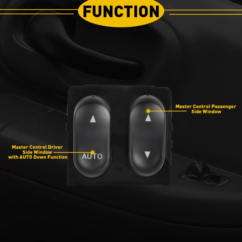 Country/Region of Manufacture: Unknown Years: 1999 2000 2001 2002 Color: Black Material: Plastic Warranty: 2 Year Modified Item: No Placement: Driver's Door Master Mounting Hardware Included: No Other Part Descriptions: Master Electric Power Window Switch Control Manufacturer Part Number: SW7091 Keywords 2: Cluster Front Rear Left OEM Part Replacement Brand: AUXITO Surface Finish: OE Standard Features: Durable To Control: Window Keywords 1: Electric Power Door Panel Lock Window Control Model: Ford F150 Return Period: 60 Days Fitment Type: Direct Replacement OE/OEM Part Number: XL3Z14529AA, F65Z14529AAB Interchange Part Number: XL3Z 14529-AA Placement on Vehicle: Door Manufacturer Warranty: 2 Year Type: Switch Assembly