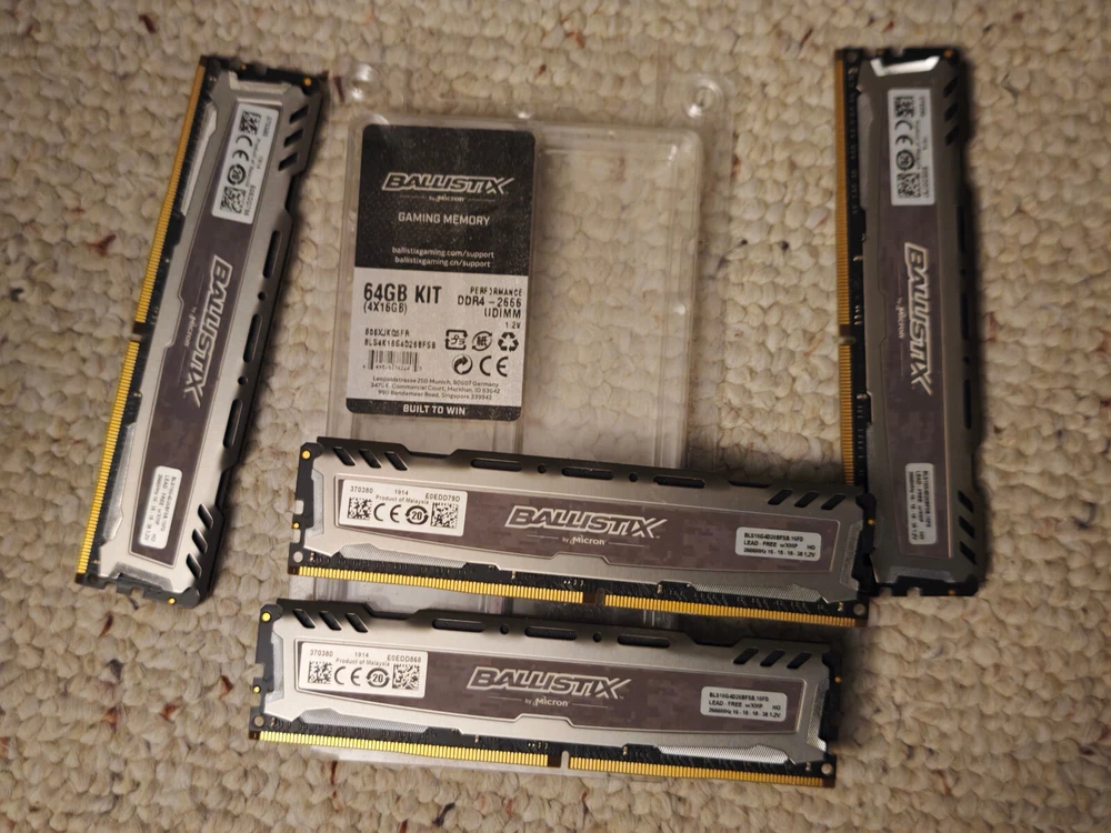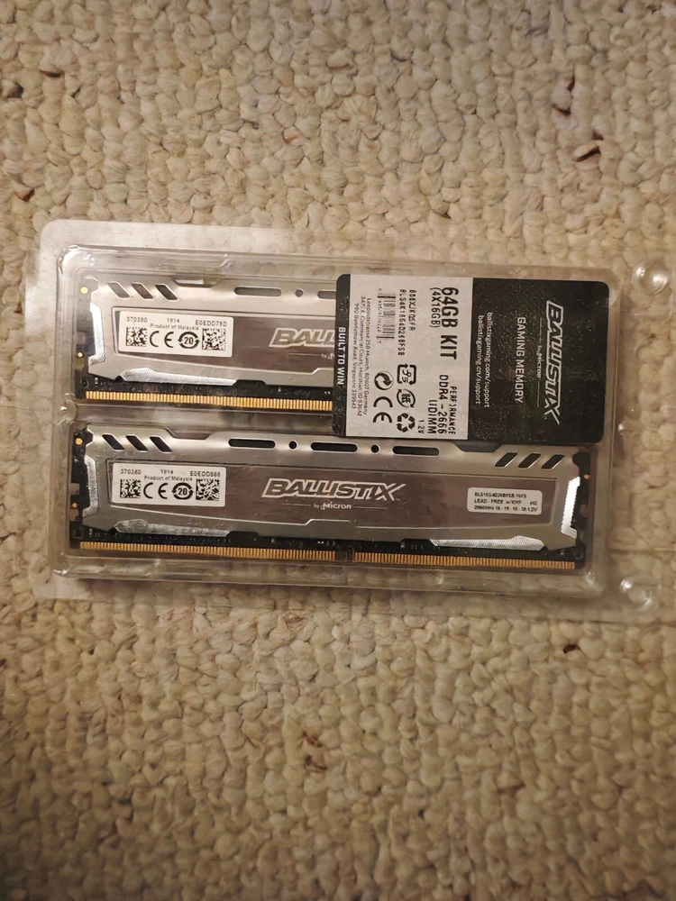Working. This was my former computer that I used daily. Selling the CPU, stock cooler (inside the Ryzen CPU box), motherboard and RAM. CPU: AMD Ryzen 7 3700X CPU Cooler: Stock AMD Ryzen 3700x Cooler Motherboard: MSI B450M Pro-VDH MAX RAM: Micron Crucial Ballistix 64GB DDR4 Memory 2666MHz All parts come with their original packaging. Graphics card NOT INCLUDED.