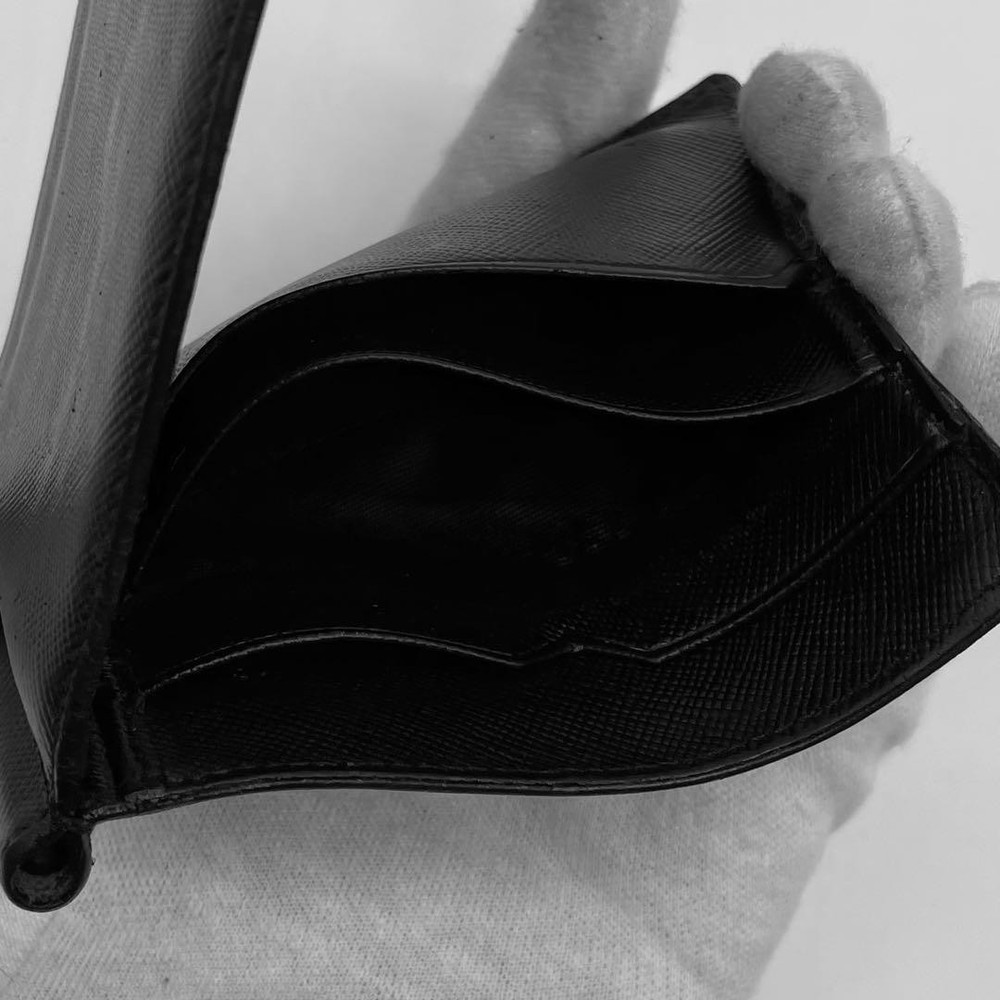 Prada Leather Bifold Wallet with Money Clip Black Embossed Logo Used Key Features - Brand: PRADA - Item: Money Clip & Bi-fold Leather Wallet - Model: Not specified - Material: Genuine leather, Saffiano pattern - Color: Black - Dimensions: Height approximately 3.15 inches (8cm), Width approximately 3.94 inches (10cm), Thickness approximately 0.2 inches (0.5cm) - Features: Elegant design with Prada logo embossed on the surface, silver-tone metal plate, compact and lightweight - Condition: Used, with minor signs of wear but overall very good condition; no significant damage or stains. Slight reflection on photos, but item is clean and well-maintained. - Notes: No accessories are included unless noted in the title or product description. If you have any questions, please ask before purchasing. This item was purchased from a major recycling shop and is sold as-is. Please review the serial number 164 for authenticity. Specifications Brand Prada Country Japan Color Black Material Leather Theme Money Accents Logo Pattern Logo Product Description Item Title Prada Leather Bifold Wallet Money Clip Embossed Logo Black Payment Supports managed payments Please pay within 5 days after auction is finished. About Us We are located in Japan. It's our pleasure to make you happy by proposing our recommend item. If you have any questions or request about items, please feel free to ask us. International Buyers - Please Note: -Import duties, taxes, and charges are not included in the item price or shipping charges. These charges are the buyer's responsibility. -Please check with your country's customs office to determine what these additional costs will be prior to bidding/buying. -These charges are normally collected by the delivering freight (shipping) company or when you pick the item up - do not confuse them for additional shipping charges. -We do not mark merchandise values below value or mark items as - gifts - The US and International government regulations prohibit such behavior. Thank you for your understanding.
