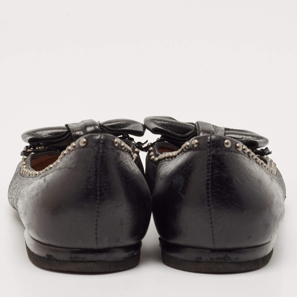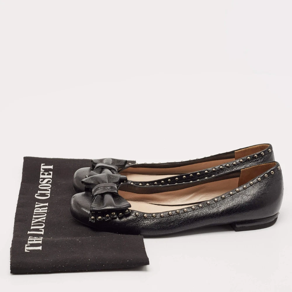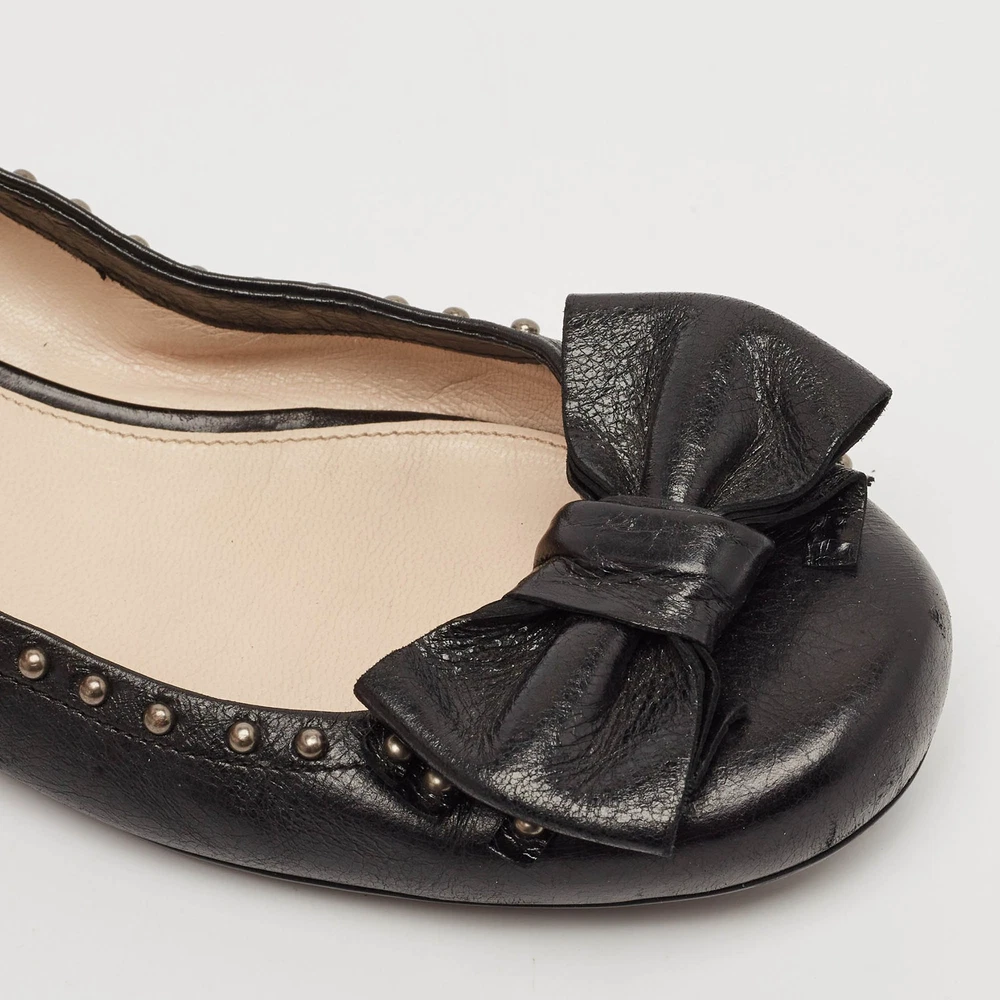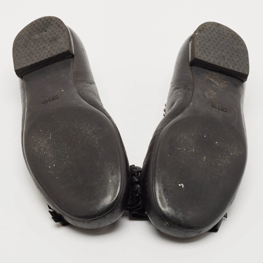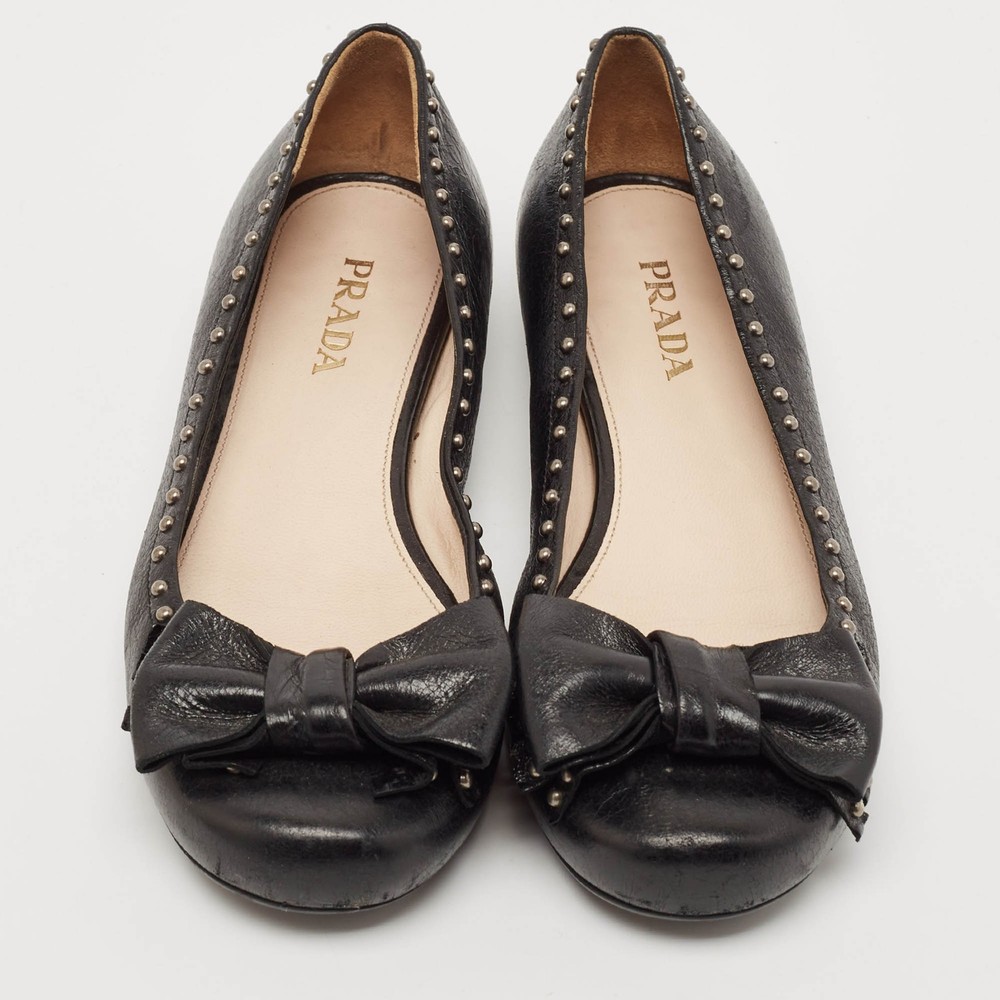 Our eBay Store About Us Contact Us Add to Favorite Sellers Prada Black Leather Logo Bow Ballet Flats Size 38 These ballet flats by Prada are perfect to be paired with any outfit of your choice. They have been crafted from patent leather and come in a classic shade of black. They are styled with round toes, gunmetal-tone detailing on the uppers, small bows and leather & rubber soles. Product Details Brand Prada Color Black Includes The Luxury Closet Packaging Outsole Length 26 cm Outsole Width 8 cm Size 38 Certified by The Luxury Closet This item has gone through a detailed authentication process overseen by our experts. We offer a lifetime guarantee of authenticity on all our items. How We Check The in-house team of experts at The Luxury Closet is highly trained to verify the authenticity and the condition of the luxury products. They ensure that only 100% authentic items are put on sale.The evaluation process is unique with its own mix of assessment criteria and differs according to the category. Each item is evaluated based on the following combination of hallmarks, hardware, stitching, symmetry, material, craftsmanship, stamping, codes, hologram stickers, and packaging. Our authenticators also check if the items have been modified or amended (e.g., aftermarket diamonds, replaced batteries, repaired bags, etc.) International Buyers Import duties, taxes and charges are not included in the item price. These charges are the buyers responsibility. Please check with your country’s customs office to determine what these additional cost will be prior to buying.