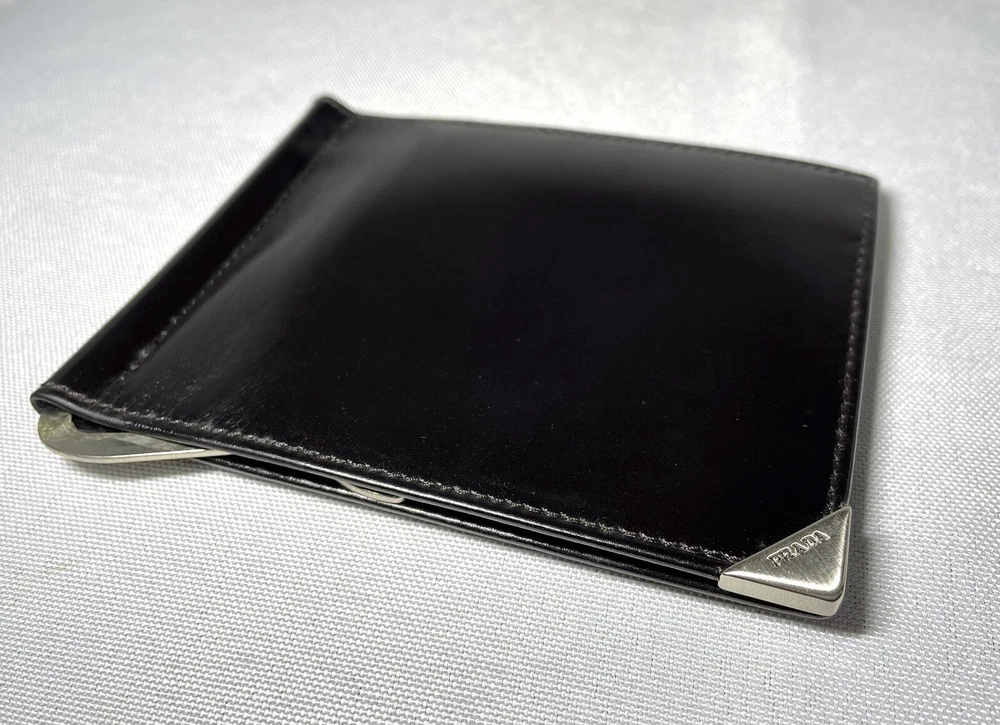 This sleek Prada money clip is pure luxury—black leather with a polished silver logo makes it both stylish and functional. Perfect for keeping bills organized while adding a touch of class to any outfit. The limited-time discount is a great bonus! Highly recommend for anyone who appreciates high-end accessories.