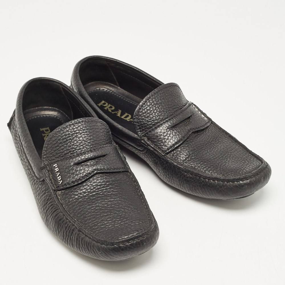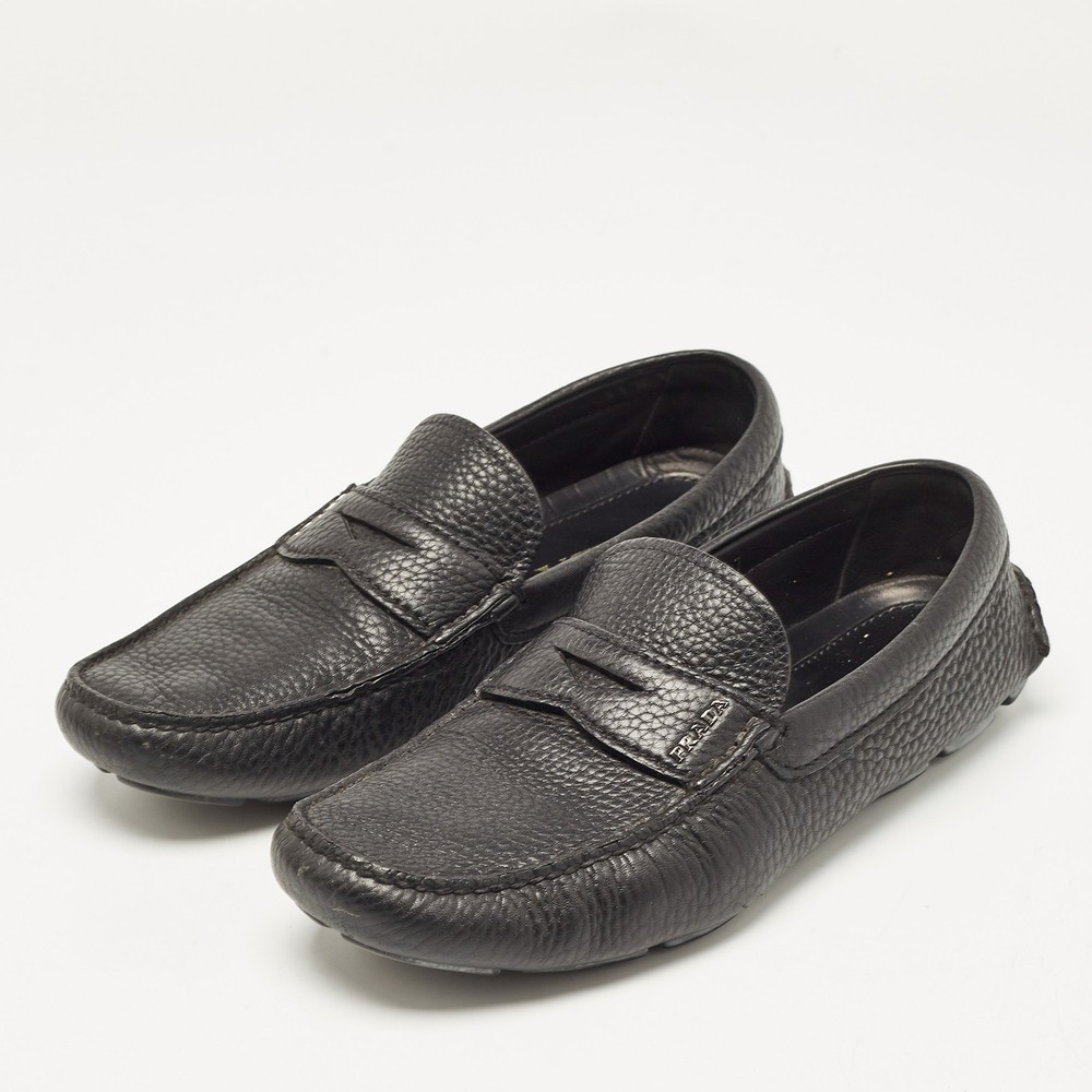 These slip on loafers from Prada are perfect for frequent use. They are beautifully crafted using black leather with the brand detail on the vamps.Certified by The Luxury Closet - This item has gone through a detailed authentication process overseen by our experts. We offer a lifetime guarantee of authenticity on all our items. Import duties, taxes and charges are not included in the item price. These charges are the buyers responsibility. Please check with your country’s customs office to determine what these additional cost will be prior to buying. Our eBay Store About Us Contact Us Add to Favorite Sellers Prada Black Leather Slip On Loafers Size 41 $212.3 These slip on loafers from Prada are perfect for frequent use. They are beautifully crafted using black leather with the brand detail on the vamps. Product Details Brand Color Black Dimensions Material Leather Size 41 Outsole Width 9.5 cm Outsole Length 29 cm Heel Height Includes Original Dustbag, Original Box Certified by The Luxury Closet This item has gone through a detailed authentication process overseen by our experts. We offer a lifetime guarantee of authenticity on all our items. How We Check The in-house team of experts at The Luxury Closet is highly trained to verify the authenticity and the condition of the luxury products. They ensure that only 100% authentic items are put on sale.The evaluation process is unique with its own mix of assessment criteria and differs according to the category. Each item is evaluated based on the following combination of hallmarks, hardware, stitching, symmetry, material, craftsmanship, stamping, codes, hologram stickers, and packaging. Our authenticators also check if the items have been modified or amended (e.g., aftermarket diamonds, replaced batteries, repaired bags, etc.) International Buyers Import duties, taxes and charges are not included in the item price. These charges are the buyers responsibility. Please check with your country’s customs office to determine what these additional cost will be prior to buying.