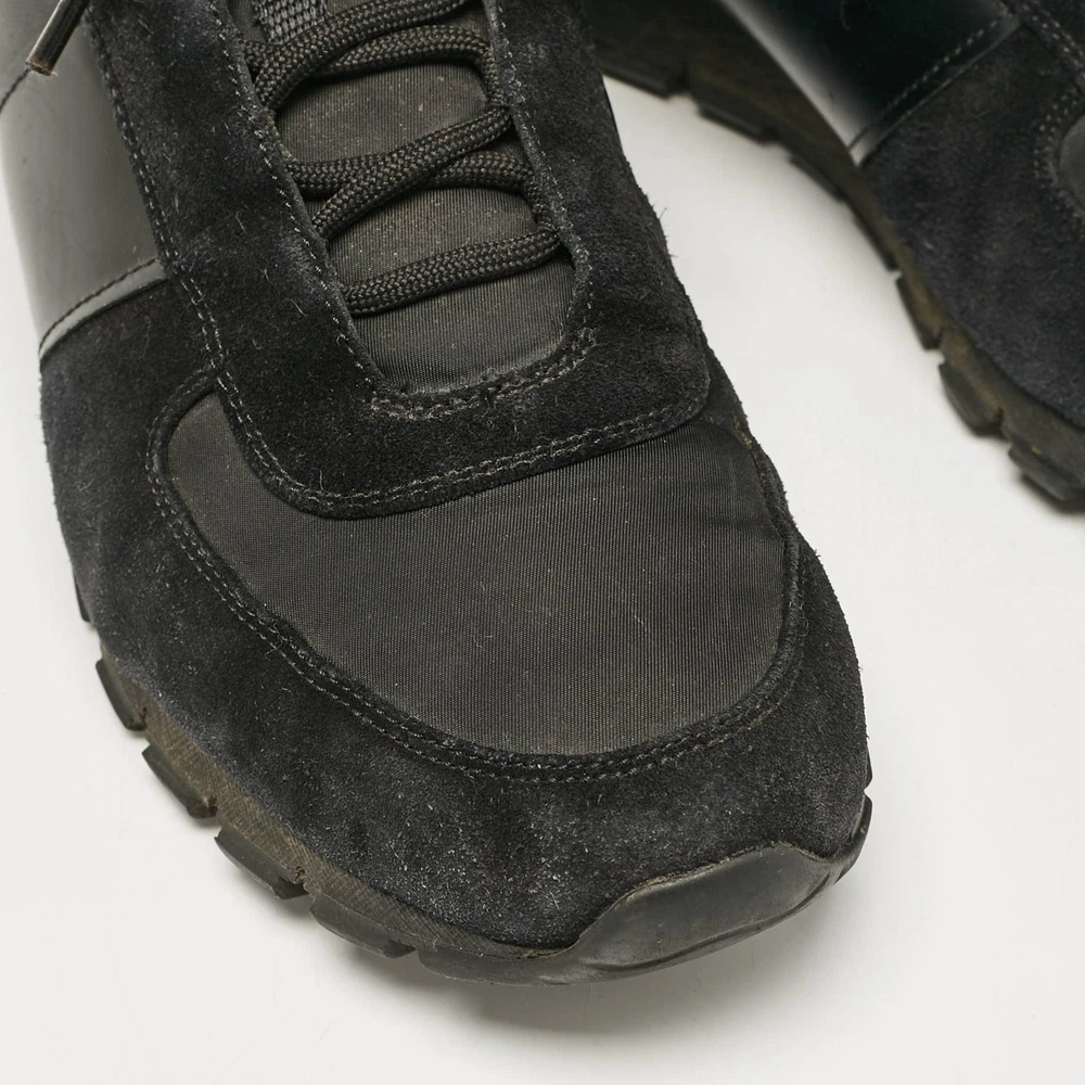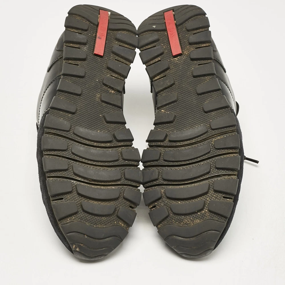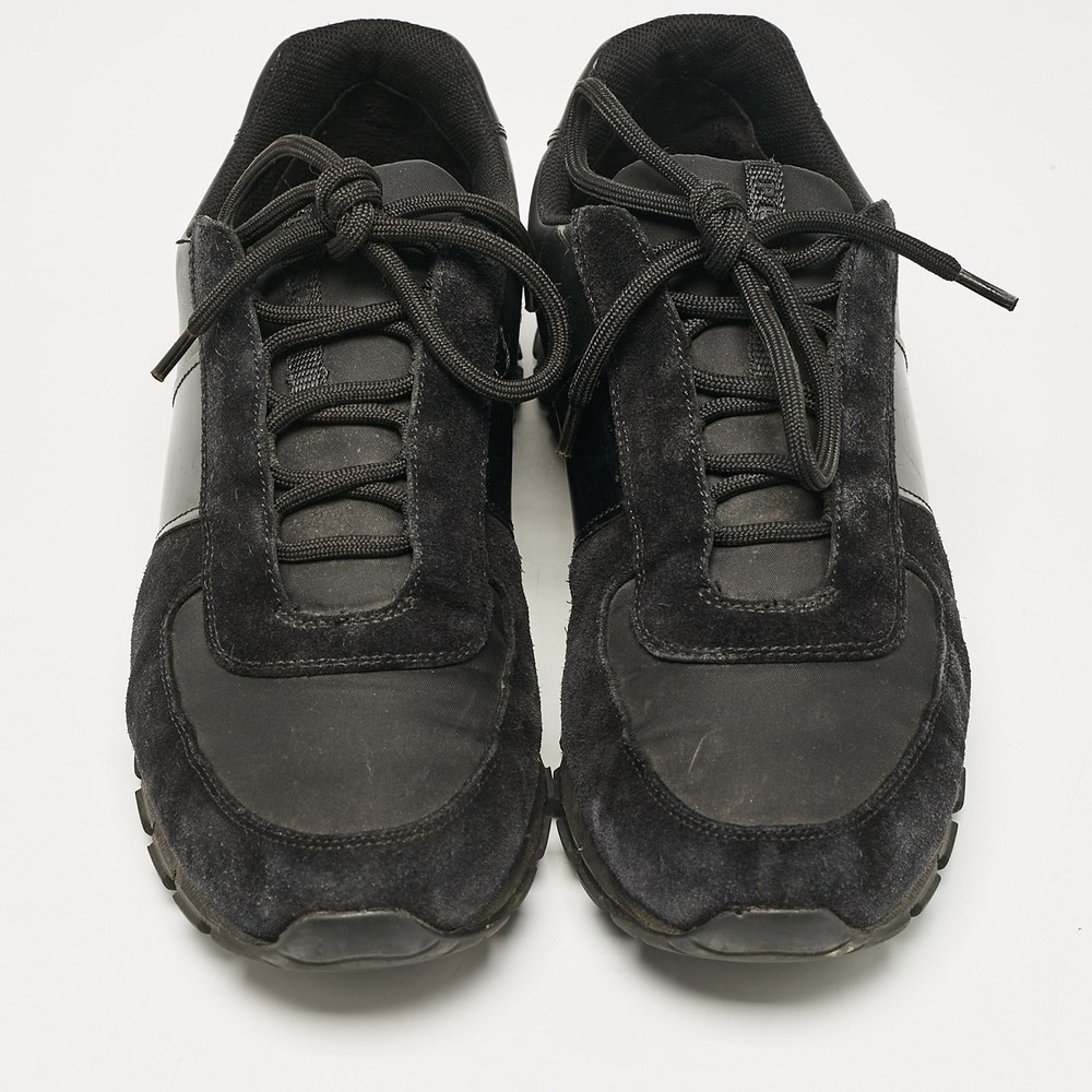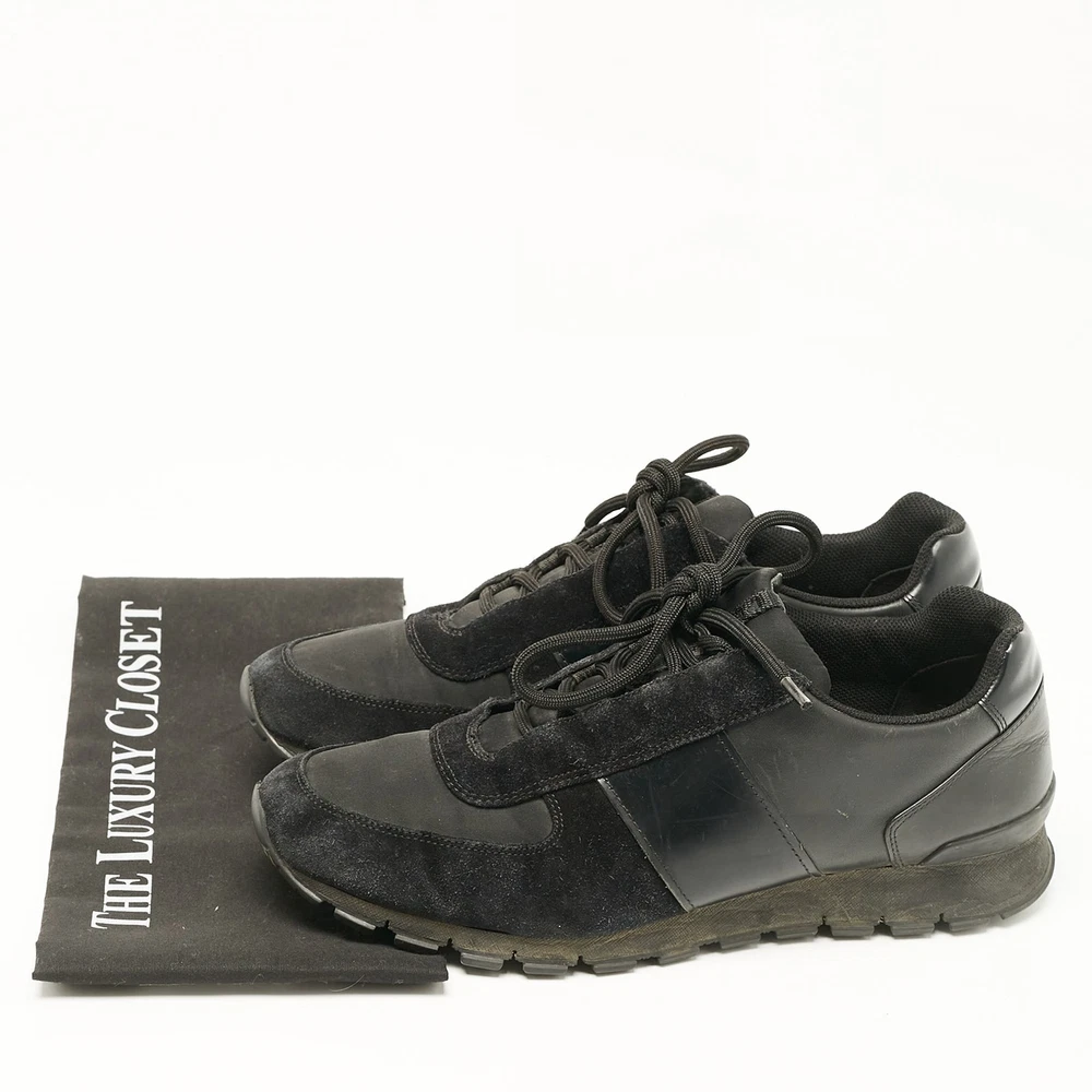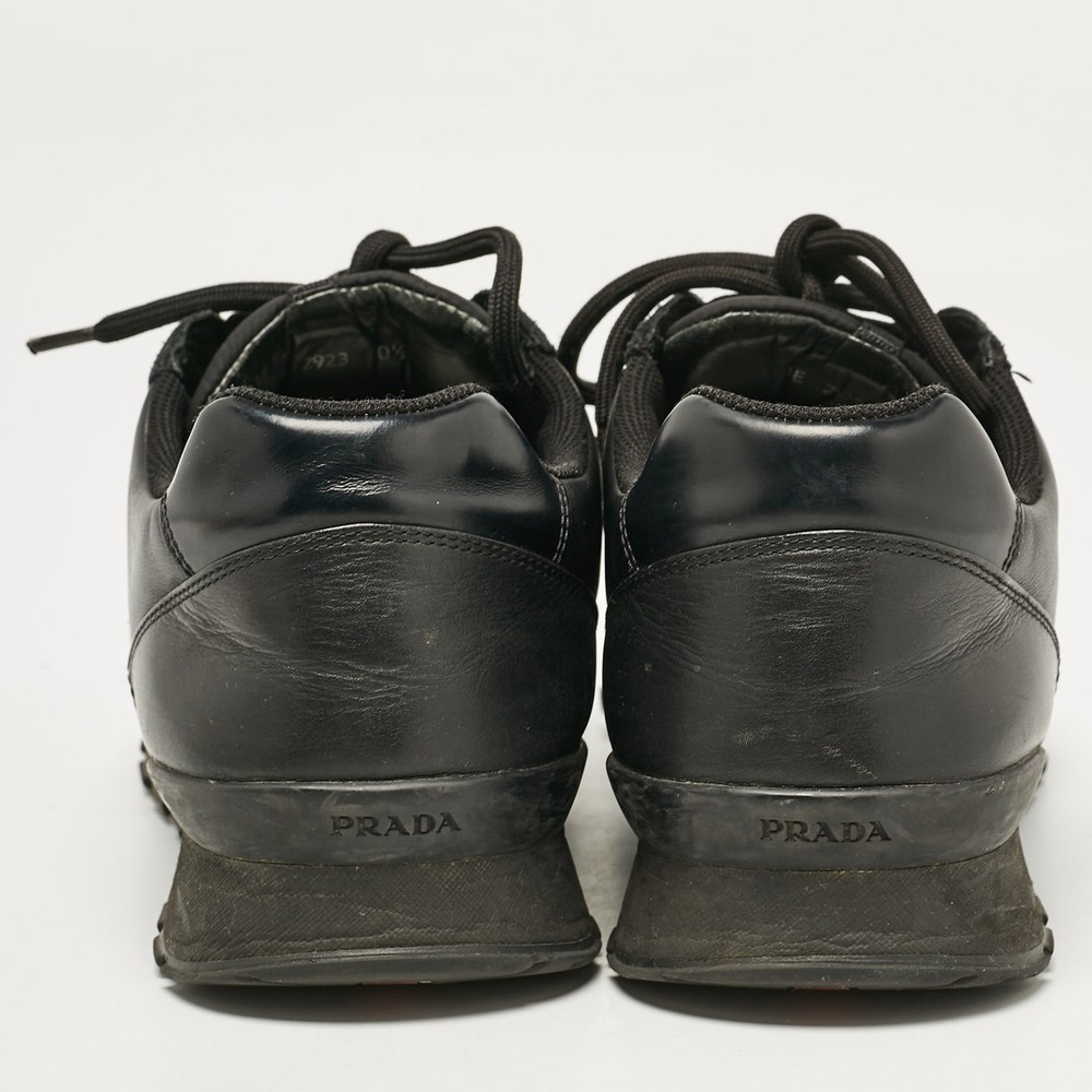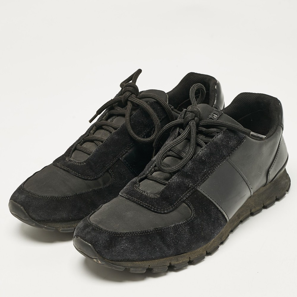 Prada combines luxury with functionality in these black leather and suede lace up sneakers. A classy choice, ideal for everyday wear.Certified by The Luxury Closet - This item has gone through a detailed authentication process overseen by our experts. We offer a lifetime guarantee of authenticity on all our items. Import duties, taxes and charges are not included in the item price. These charges are the buyers responsibility. Please check with your country’s customs office to determine what these additional cost will be prior to buying. Our eBay Store About Us Contact Us Add to Favorite Sellers Prada Black Leather and Suede Lace Up Sneakers Size 44.5 $196.9 Prada combines luxury with functionality in these black leather and suede lace up sneakers. A classy choice, ideal for everyday wear. Product Details Brand Color Black Dimensions Material Leather, Suede Size 44.5 Outsole Width 11 cm Outsole Length 31.5 cm Heel Height Includes The Luxury Closet Packaging Certified by The Luxury Closet This item has gone through a detailed authentication process overseen by our experts. We offer a lifetime guarantee of authenticity on all our items. How We Check The in-house team of experts at The Luxury Closet is highly trained to verify the authenticity and the condition of the luxury products. They ensure that only 100% authentic items are put on sale.The evaluation process is unique with its own mix of assessment criteria and differs according to the category. Each item is evaluated based on the following combination of hallmarks, hardware, stitching, symmetry, material, craftsmanship, stamping, codes, hologram stickers, and packaging. Our authenticators also check if the items have been modified or amended (e.g., aftermarket diamonds, replaced batteries, repaired bags, etc.) International Buyers Import duties, taxes and charges are not included in the item price. These charges are the buyers responsibility. Please check with your country’s customs office to determine what these additional cost will be prior to buying.
