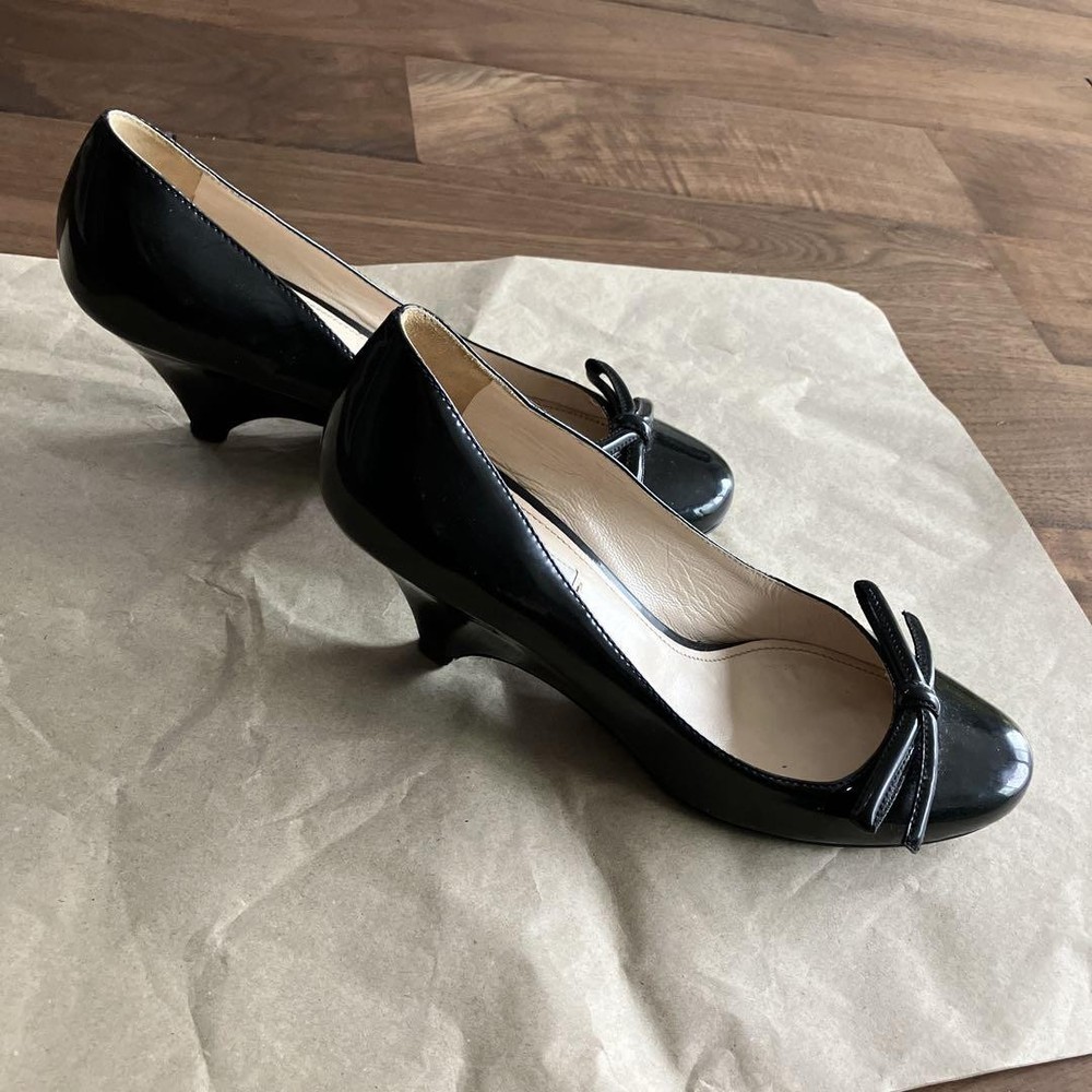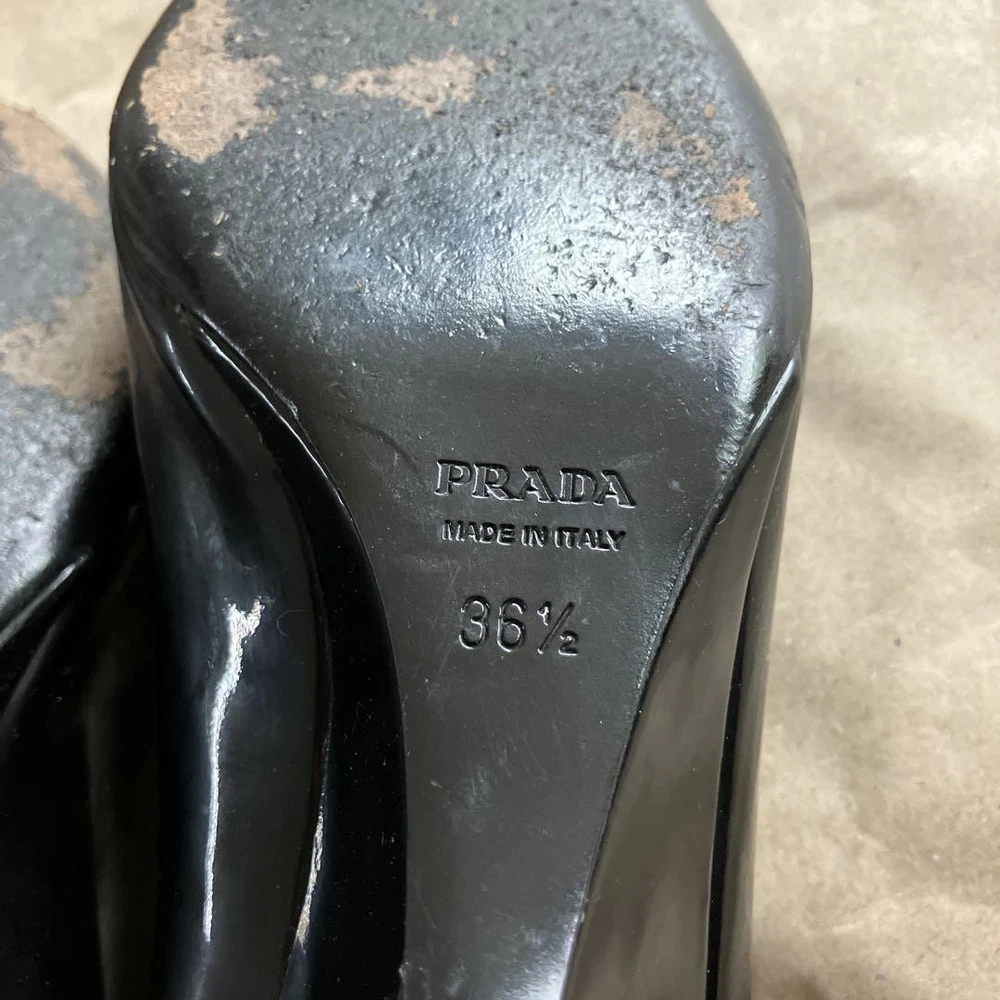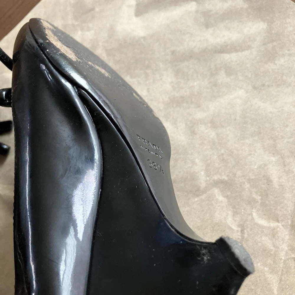 Prada Women's Black Ribbon Wedge Pumps 23.5cm US 5.5 No Box /Used Key Features Elevate your style with these pre-owned PRADA black leather pumps featuring elegant ribbon accents. Crafted from high-quality C:Exterior Material leather, these stylish shoes are designed in a classic C:Style with a sleek shape. The C:Exterior Color is black, complemented by a comfortable C:Handle/Strap Material leather. Size 36 1/2 (23.5 cm), with a C:Size heel height of approximately 6 cm, perfect for both casual and formal occasions. The C:Hardware Color is subtle, matching the sophisticated design. These shoes show some signs of wear on the sole and heel tip, as pictured, but remain in good condition. The shoes come without original packaging, placed in a different box. Handmade craftsmanship and high-quality fabric type ensure durability. Ideal for C:Department fashion enthusiasts seeking a vintage, stylish accessory. C:Features include a ribbon detail and a comfortable C:Handle Style. C:Occasion suitable for daily wear or special events. C Specifications Brand Prada Country Japan US Shoe Size 5.5 Department Woman UK Shoe Size 5 EU Shoe Size 37 JP Shoe Size 23.5 Product Description Item Title Men 5.5US Prada Black Pumps With Ribbon Heel Used No Box Payment Supports managed payments Please pay within 5 days after auction is finished. About Us We are located in Japan. It's our pleasure to make you happy by proposing our recommend item. If you have any questions or request about items, please feel free to ask us. International Buyers - Please Note: -Import duties, taxes, and charges are not included in the item price or shipping charges. These charges are the buyer's responsibility. -Please check with your country's customs office to determine what these additional costs will be prior to bidding/buying. -These charges are normally collected by the delivering freight (shipping) company or when you pick the item up - do not confuse them for additional shipping charges. -We do not mark merchandise values below value or mark items as - gifts - The US and International government regulations prohibit such behavior. Thank you for your understanding.