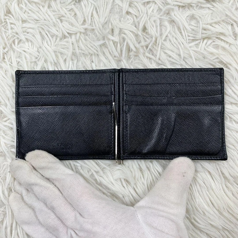 Prada Metal Logo Saffiano Leather Money Clip Black Used Key Features - Brand: PRADA - Product: Metal Logo Saffiano Money Clip Card Case - Model/Serial Number: 2MO738 27 - Features: - 6 card pockets and 1 money clip - Material: Saffiano leather, genuine leather - Color: Black - Size: approximately 3.3 inches (8.5 cm) high x 4.1 inches (10.5 cm) wide x 0.2 inches (0.5 cm) thick - Condition: Very clean, used item in excellent condition, with no issues for long-term use. Please see photos for details. - Accessories: Includes storage box and 10 photos; no additional accessories unless noted in the title or description. - Notes: Authenticity verified by certified appraisers; full refund if counterfeit. - Please ask questions before purchasing. - No reservations or special holds. - Convert cm to inches for size Specifications Brand Prada Country Japan Color Black Material Leather Theme Metal Accents Logo Pattern Logo Product Description Item Title Complete Accessories Prada Metal Logo Money Clip Black Payment Supports managed payments Please pay within 5 days after auction is finished. About Us We are located in Japan. It's our pleasure to make you happy by proposing our recommend item. If you have any questions or request about items, please feel free to ask us. International Buyers - Please Note: -Import duties, taxes, and charges are not included in the item price or shipping charges. These charges are the buyer's responsibility. -Please check with your country's customs office to determine what these additional costs will be prior to bidding/buying. -These charges are normally collected by the delivering freight (shipping) company or when you pick the item up - do not confuse them for additional shipping charges. -We do not mark merchandise values below value or mark items as - gifts - The US and International government regulations prohibit such behavior. Thank you for your understanding.