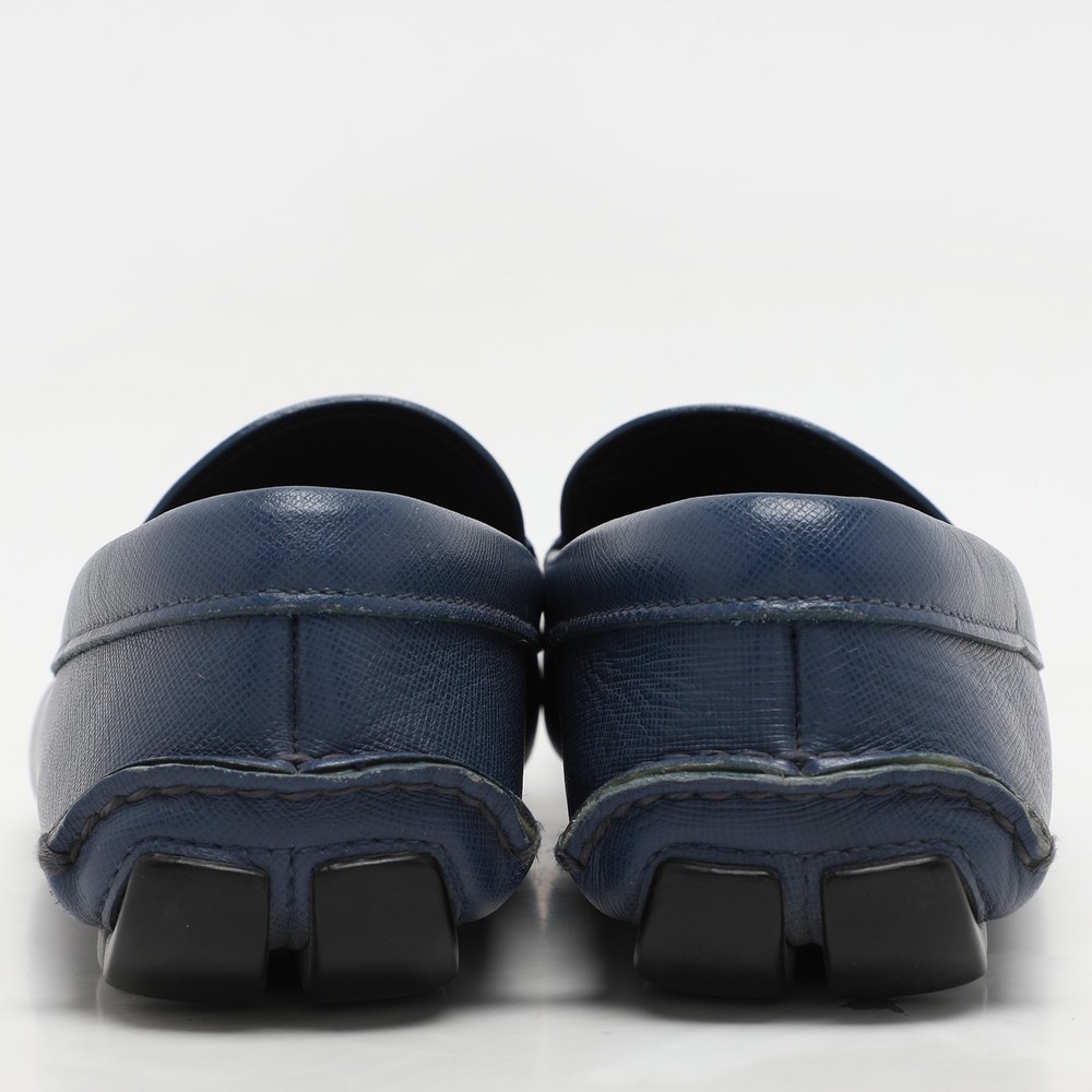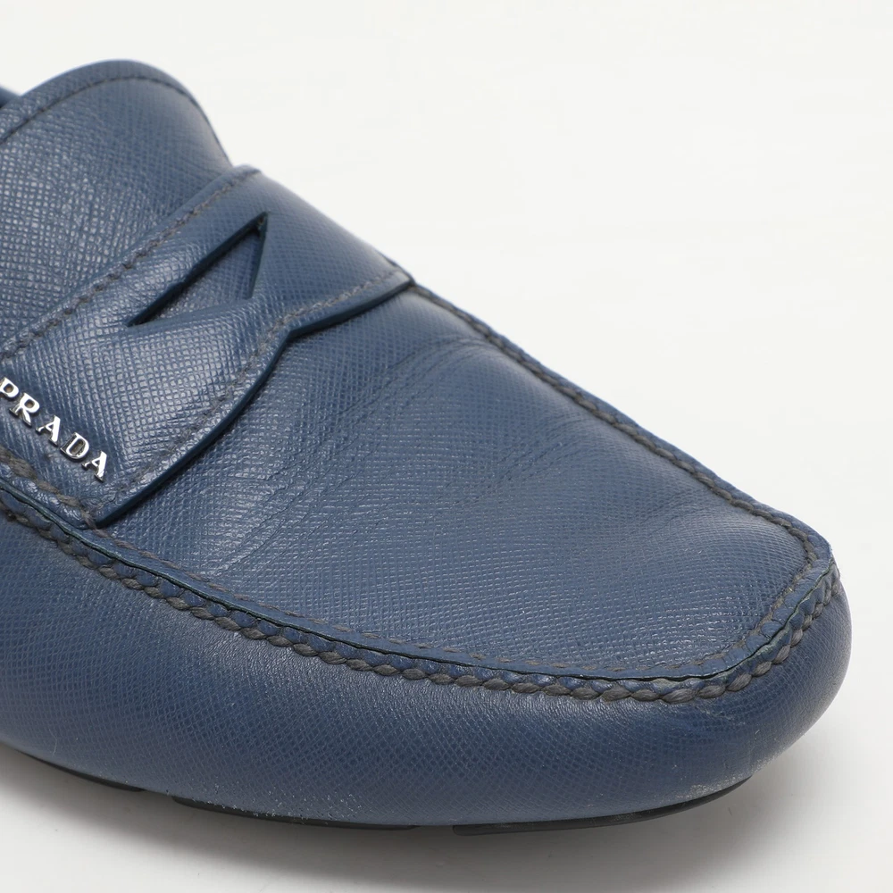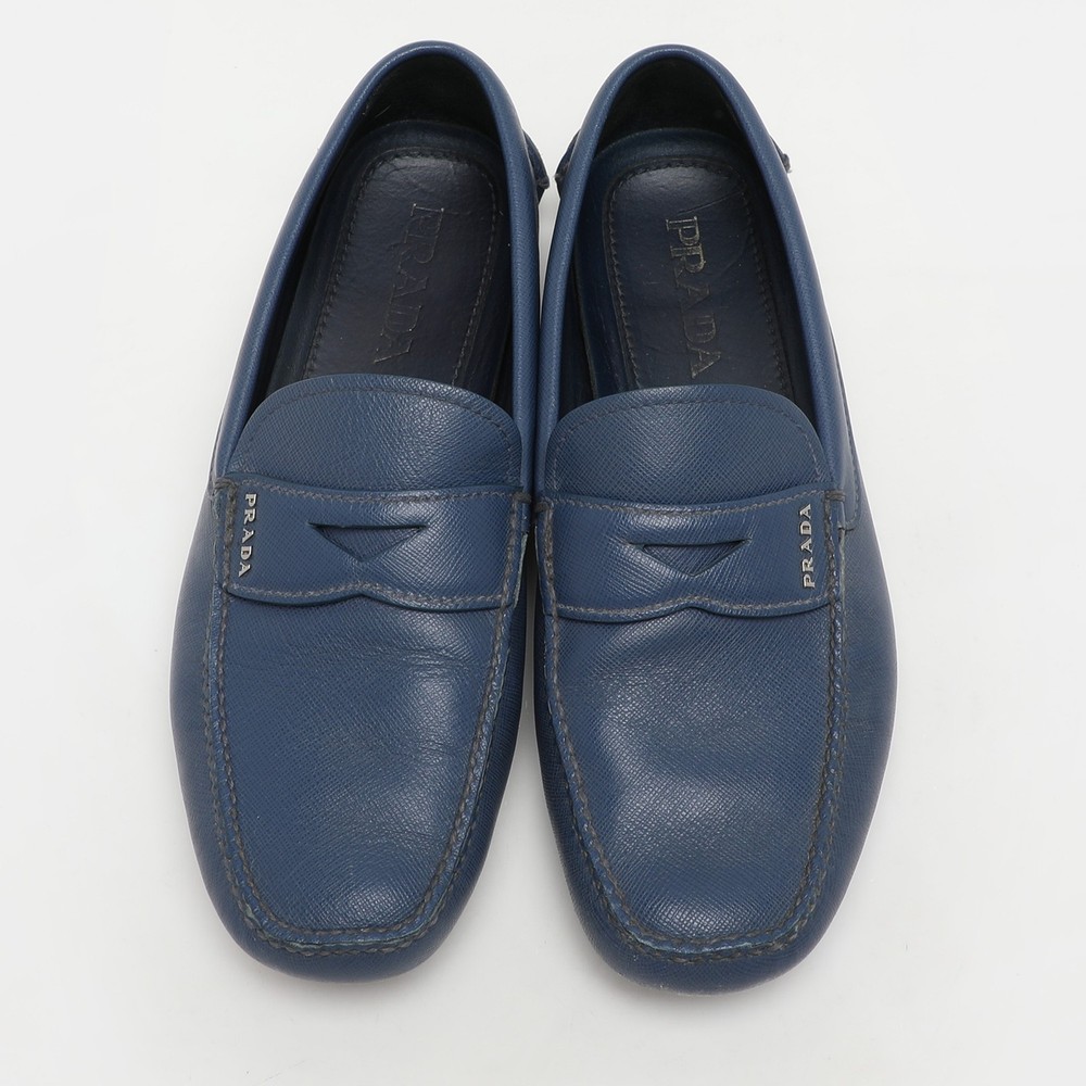 These Prada penny loafers in signature blue Saffiano leather combine durability with timeless style. The slip on design and classy shape make them a great pick.Certified by The Luxury Closet - This item has gone through a detailed authentication process overseen by our experts. We offer a lifetime guarantee of authenticity on all our items. Import duties, taxes and charges are not included in the item price. These charges are the buyers responsibility. Please check with your country’s customs office to determine what these additional cost will be prior to buying. Our eBay Store About Us Contact Us Add to Favorite Sellers Prada Blue Saffiano Leather Penny Loafers Size 41.5 $150.7 These Prada penny loafers in signature blue Saffiano leather combine durability with timeless style. The slip on design and classy shape make them a great pick. Product Details Brand Color Blue Dimensions Material Leather Size 41.5 Outsole Width 10 cm Outsole Length 29 cm Heel Height Includes The Luxury Closet Packaging Certified by The Luxury Closet This item has gone through a detailed authentication process overseen by our experts. We offer a lifetime guarantee of authenticity on all our items. How We Check The in-house team of experts at The Luxury Closet is highly trained to verify the authenticity and the condition of the luxury products. They ensure that only 100% authentic items are put on sale.The evaluation process is unique with its own mix of assessment criteria and differs according to the category. Each item is evaluated based on the following combination of hallmarks, hardware, stitching, symmetry, material, craftsmanship, stamping, codes, hologram stickers, and packaging. Our authenticators also check if the items have been modified or amended (e.g., aftermarket diamonds, replaced batteries, repaired bags, etc.) International Buyers Import duties, taxes and charges are not included in the item price. These charges are the buyers responsibility. Please check with your country’s customs office to determine what these additional cost will be prior to buying.