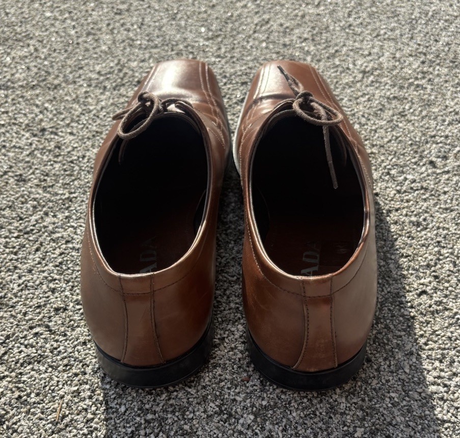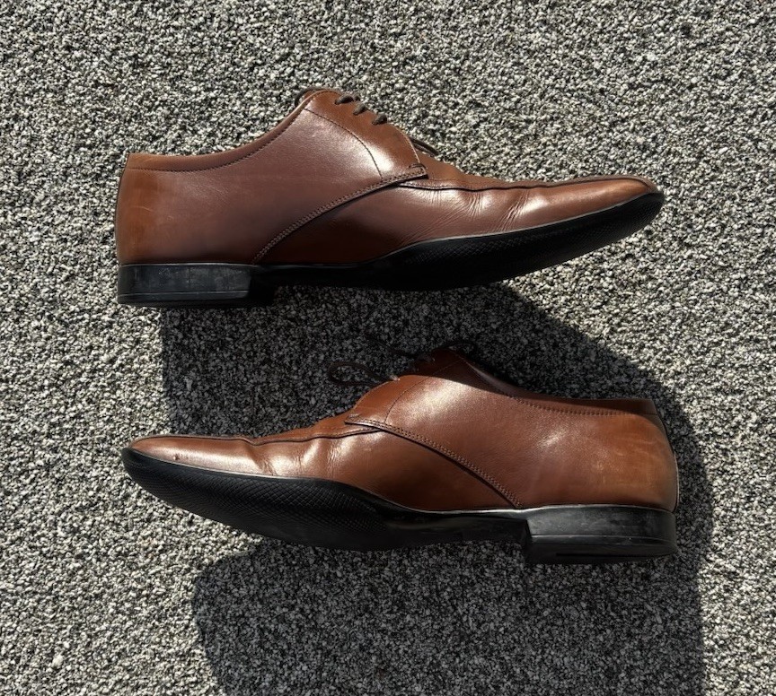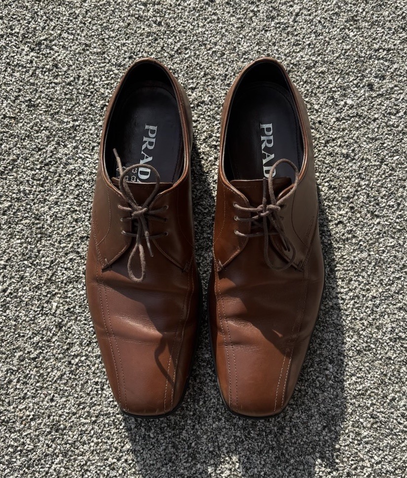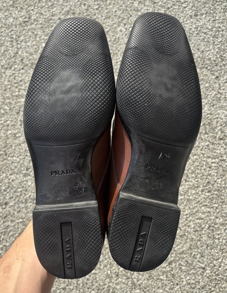 Authentic Prada men’s brown leather dress shoes. Made in Italy with high-quality craftsmanship and luxurious materials. Size: 7 EE (US Men’s) No Box Gently used with minor creasing on the uppers and light wear on soles (see photos). No major flaws. Authenticity guaranteed ! Message me if you have any questions