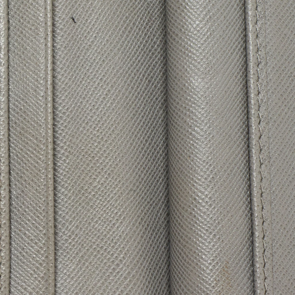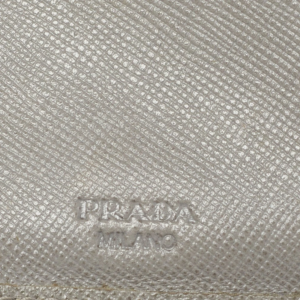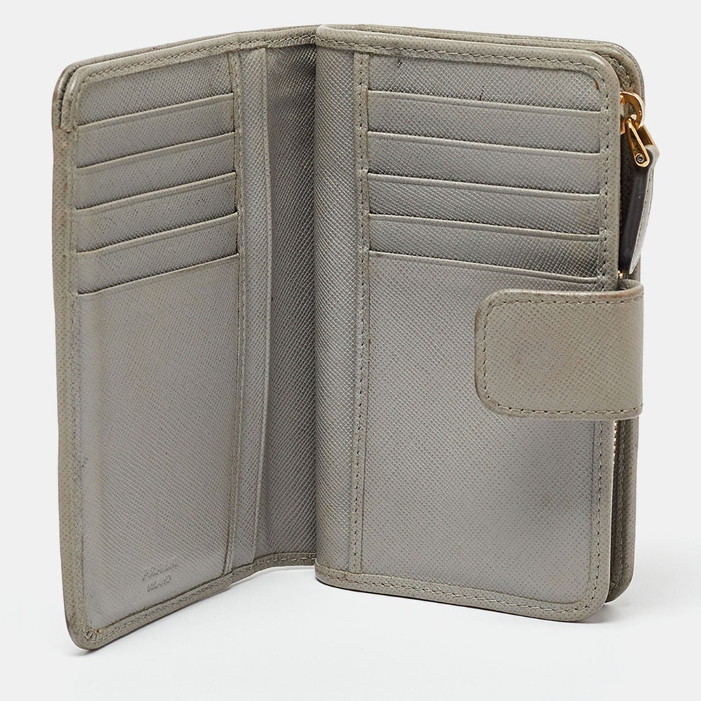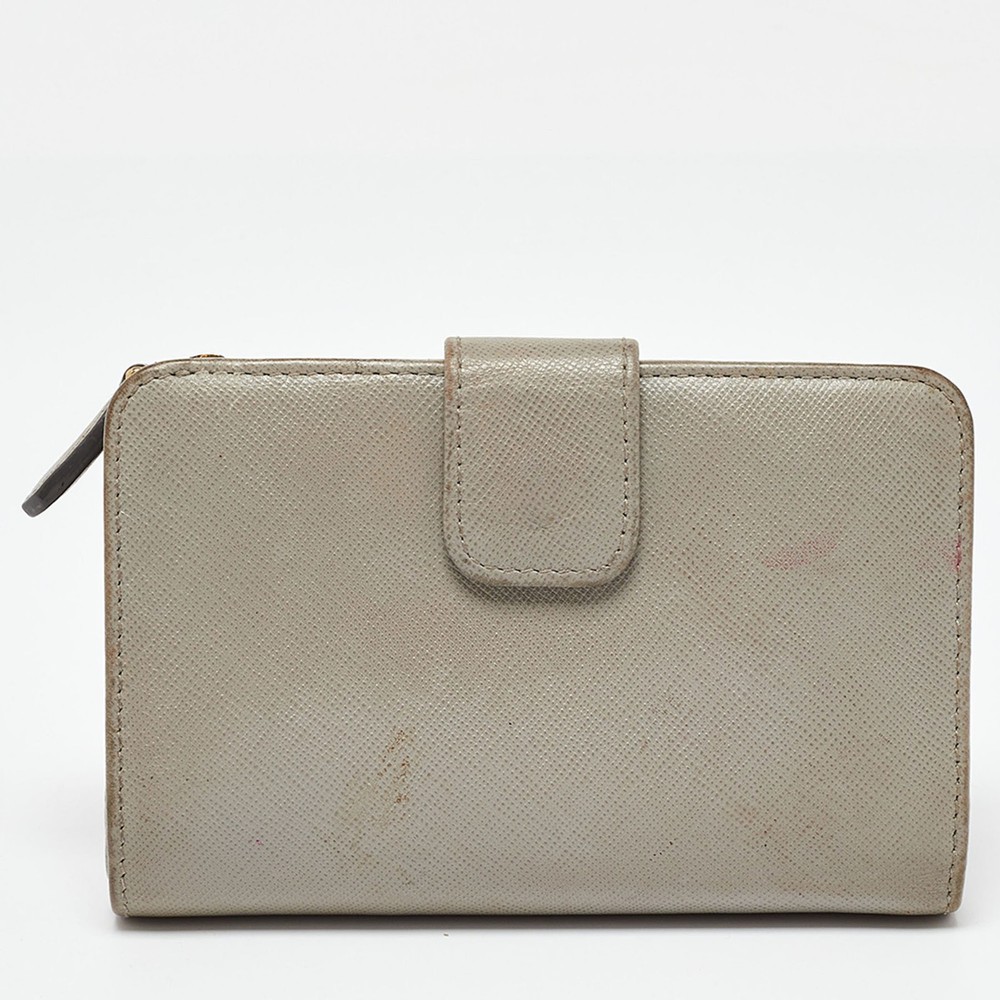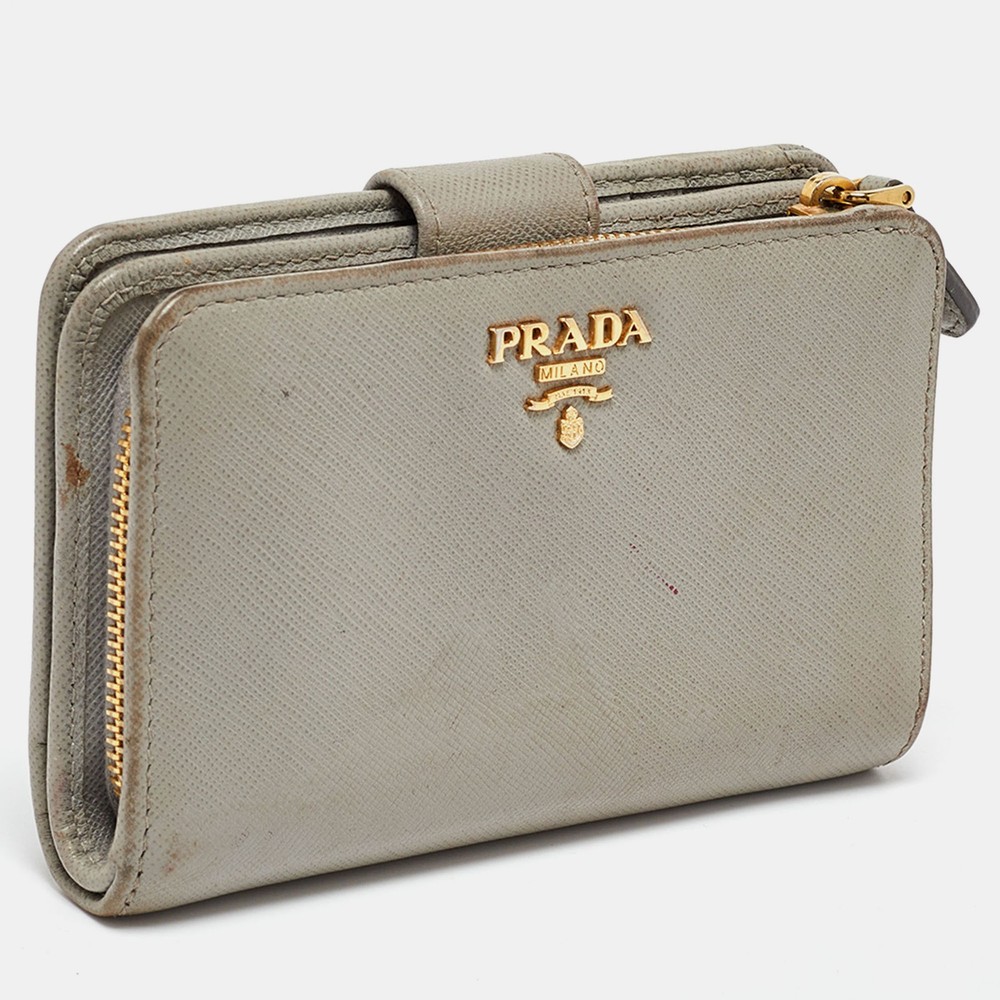 This Prada grey wallet is conveniently designed for everyday use. It comes with a well structured interior for you to neatly arrange your cards and cash. The front logo detail adds a grand finish.Certified by The Luxury Closet - This item has gone through a detailed authentication process overseen by our experts. We offer a lifetime guarantee of authenticity on all our items. Import duties, taxes and charges are not included in the item price. These charges are the buyers responsibility. Please check with your country’s customs office to determine what these additional cost will be prior to buying. Our eBay Store About Us Contact Us Add to Favorite Sellers Prada Grey Saffiano Leather Flap French Wallet $165 This Prada grey wallet is conveniently designed for everyday use. It comes with a well structured interior for you to neatly arrange your cards and cash. The front logo detail adds a grand finish. Product Details Brand Color Grey Dimensions Height: 9 cm, Width: 2.5 cm, Length: 14 cm Material Saffiano Leather Size Outsole Width Outsole Length Heel Height Includes The Luxury Closet Packaging Certified by The Luxury Closet This item has gone through a detailed authentication process overseen by our experts. We offer a lifetime guarantee of authenticity on all our items. How We Check The in-house team of experts at The Luxury Closet is highly trained to verify the authenticity and the condition of the luxury products. They ensure that only 100% authentic items are put on sale.The evaluation process is unique with its own mix of assessment criteria and differs according to the category. Each item is evaluated based on the following combination of hallmarks, hardware, stitching, symmetry, material, craftsmanship, stamping, codes, hologram stickers, and packaging. Our authenticators also check if the items have been modified or amended (e.g., aftermarket diamonds, replaced batteries, repaired bags, etc.) International Buyers Import duties, taxes and charges are not included in the item price. These charges are the buyers responsibility. Please check with your country’s customs office to determine what these additional cost will be prior to buying.